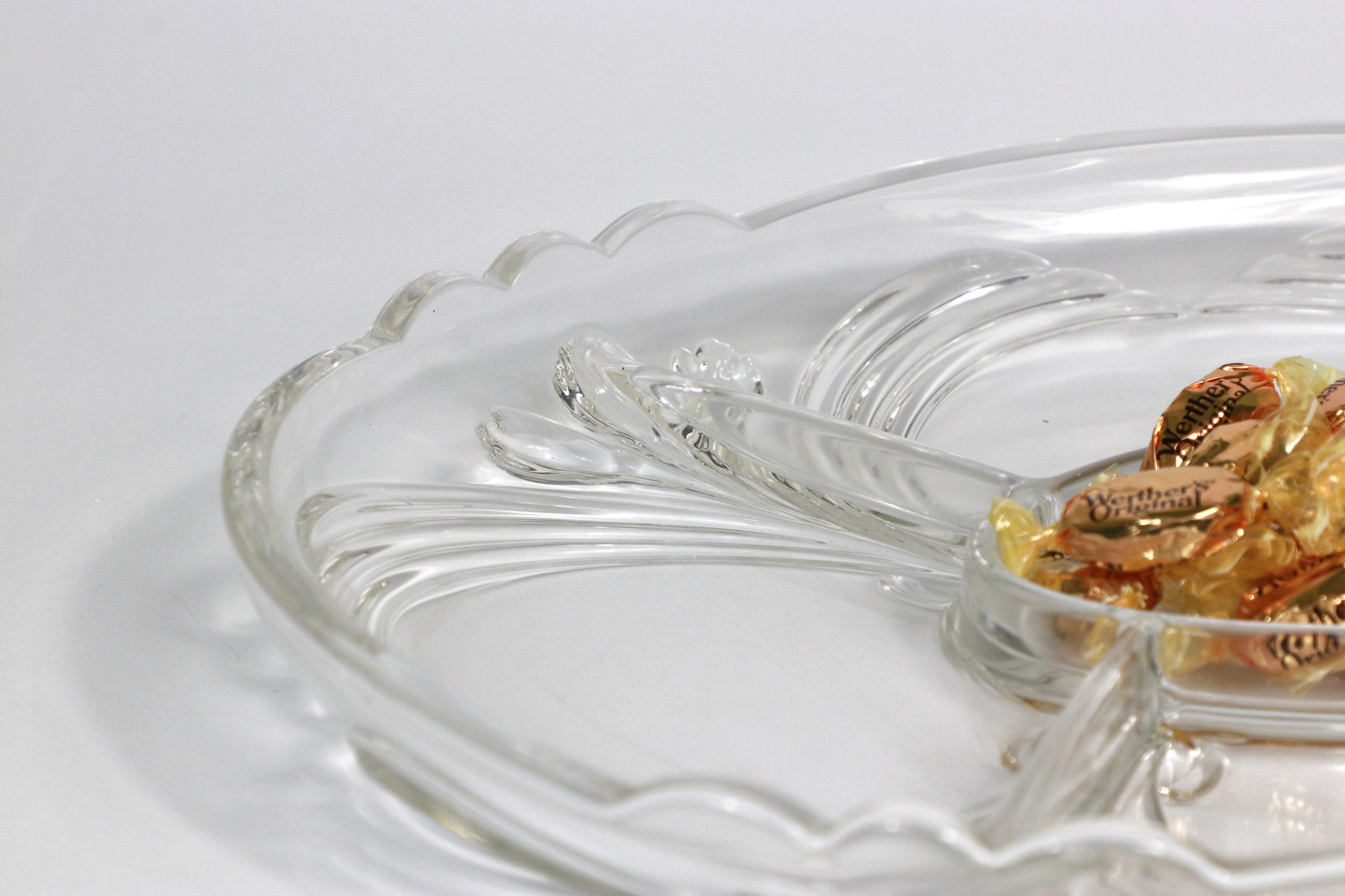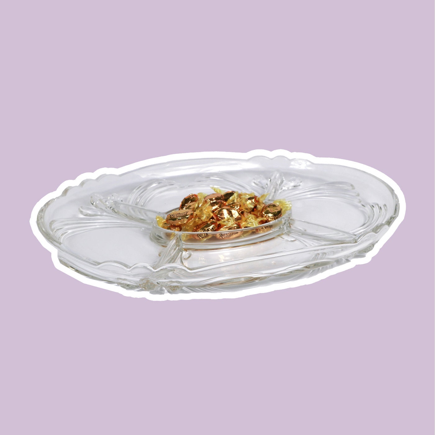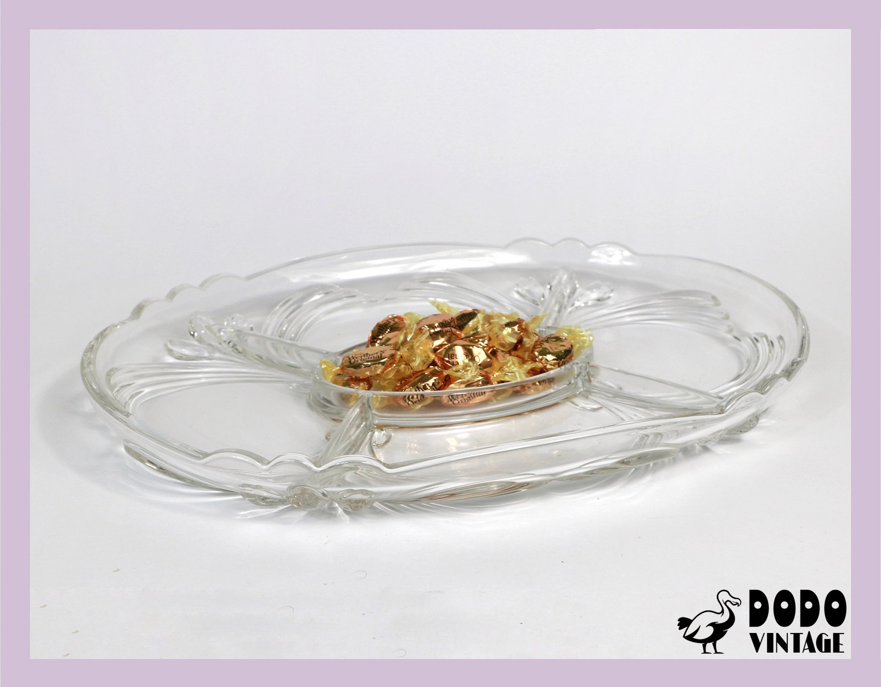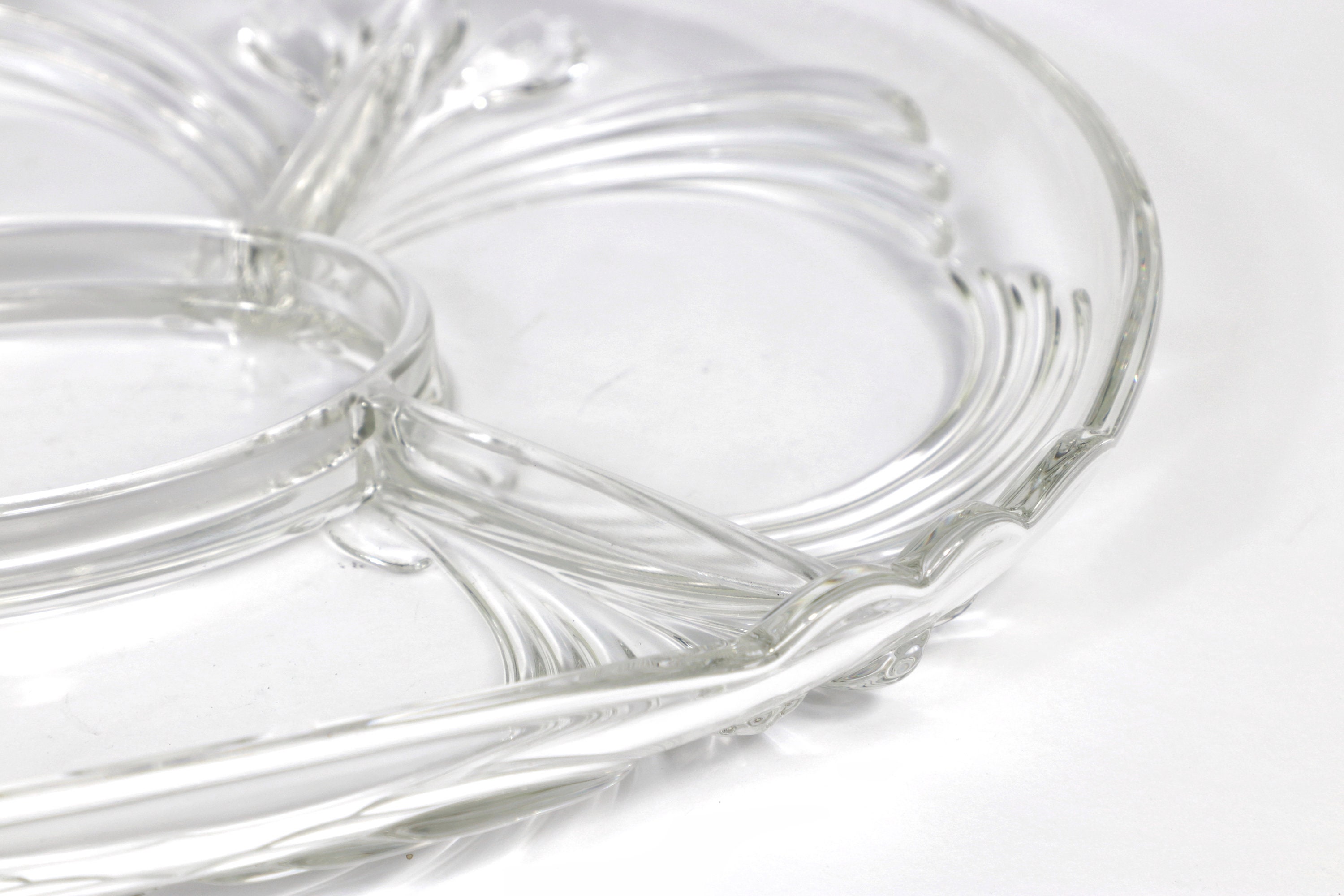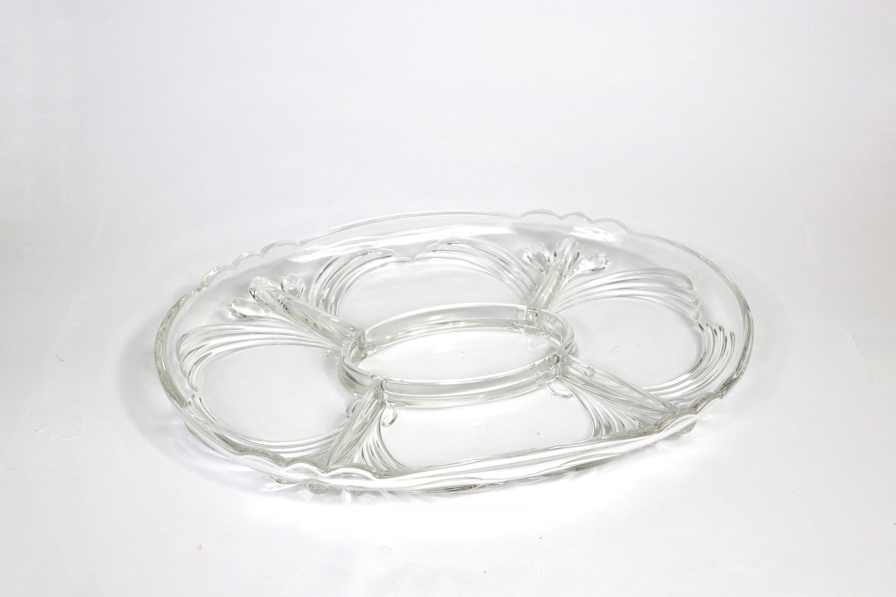 Vintage large serving bowl glass 5 compartments lead crystal Art Nouveau Art Nouveau 70s 1970 70s plate bowl
