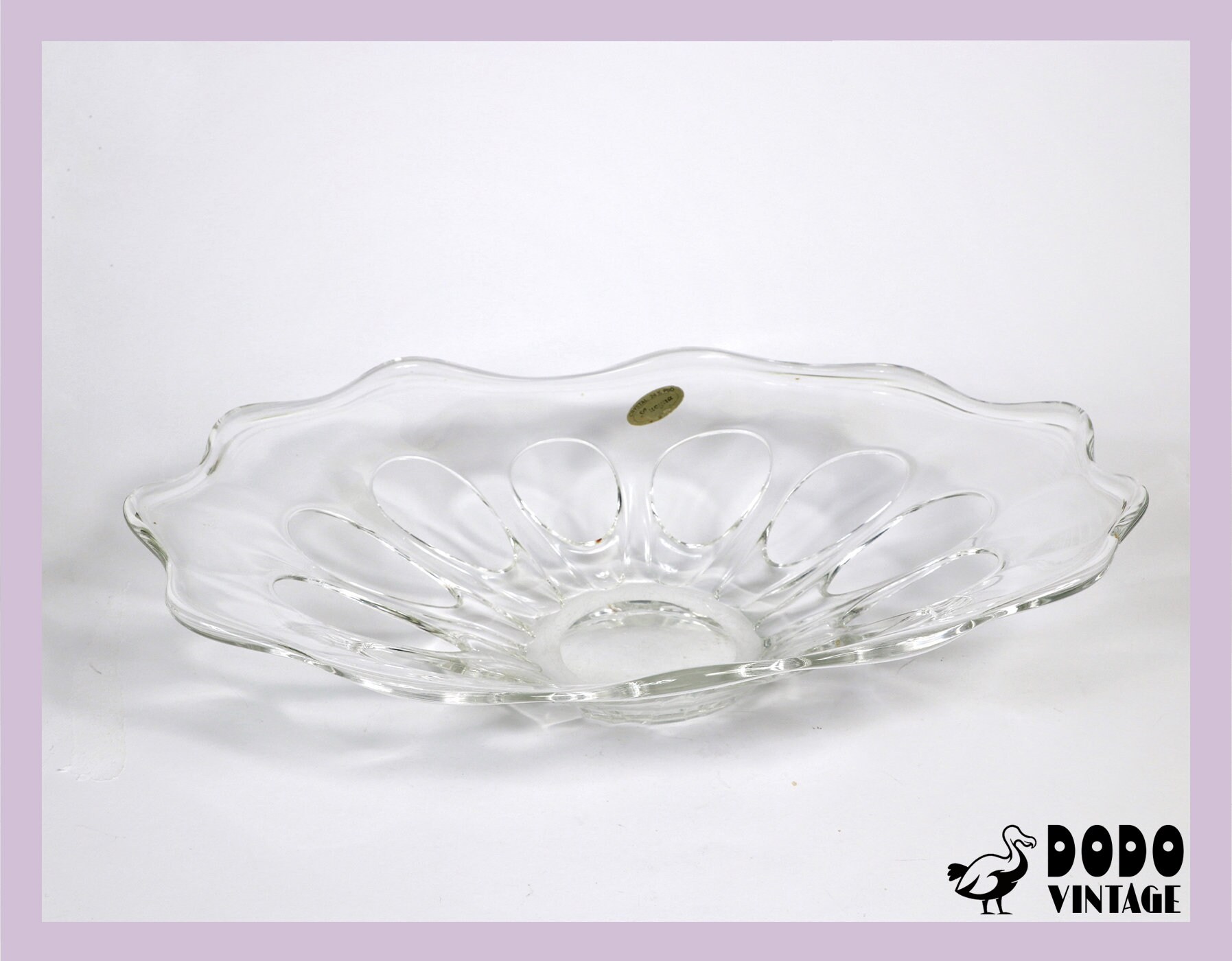 Vintage Large Offering Bowl Lucyna Lead Crystal Handmade Mouth Blown Holes Murano Style Plate Bowl Bowl Fruit Bowl