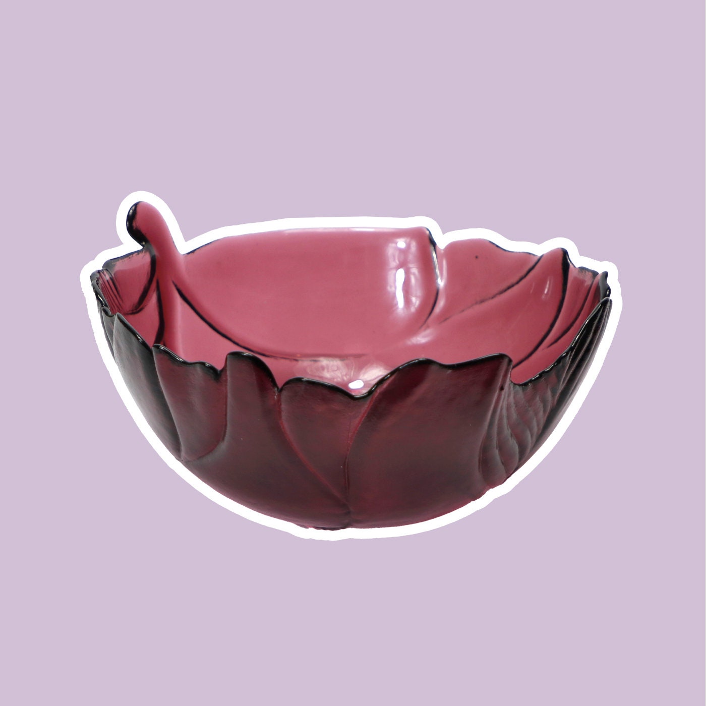 Vintage French 80s purple glass bowl in the shape of a red cabbage leaf!