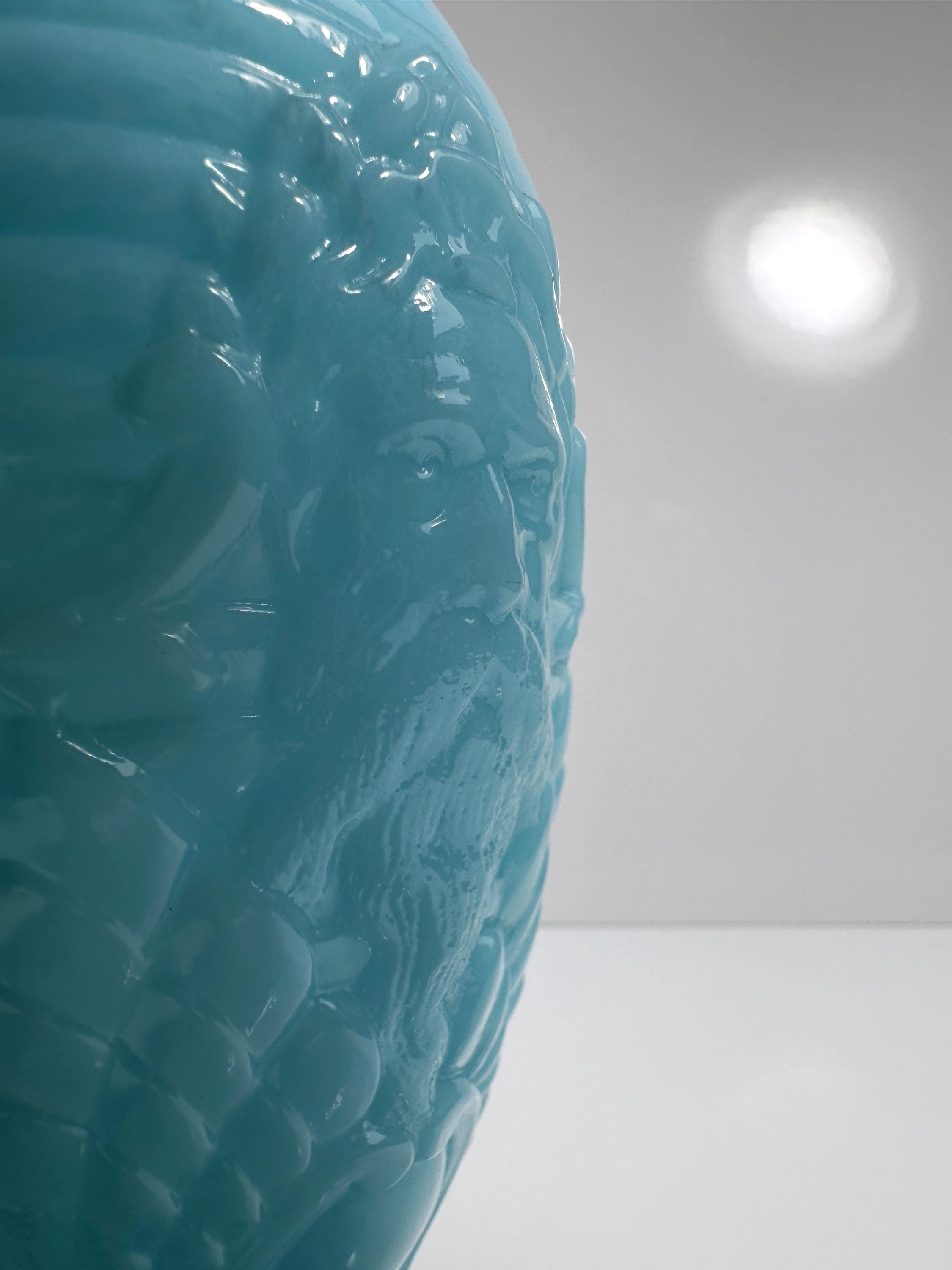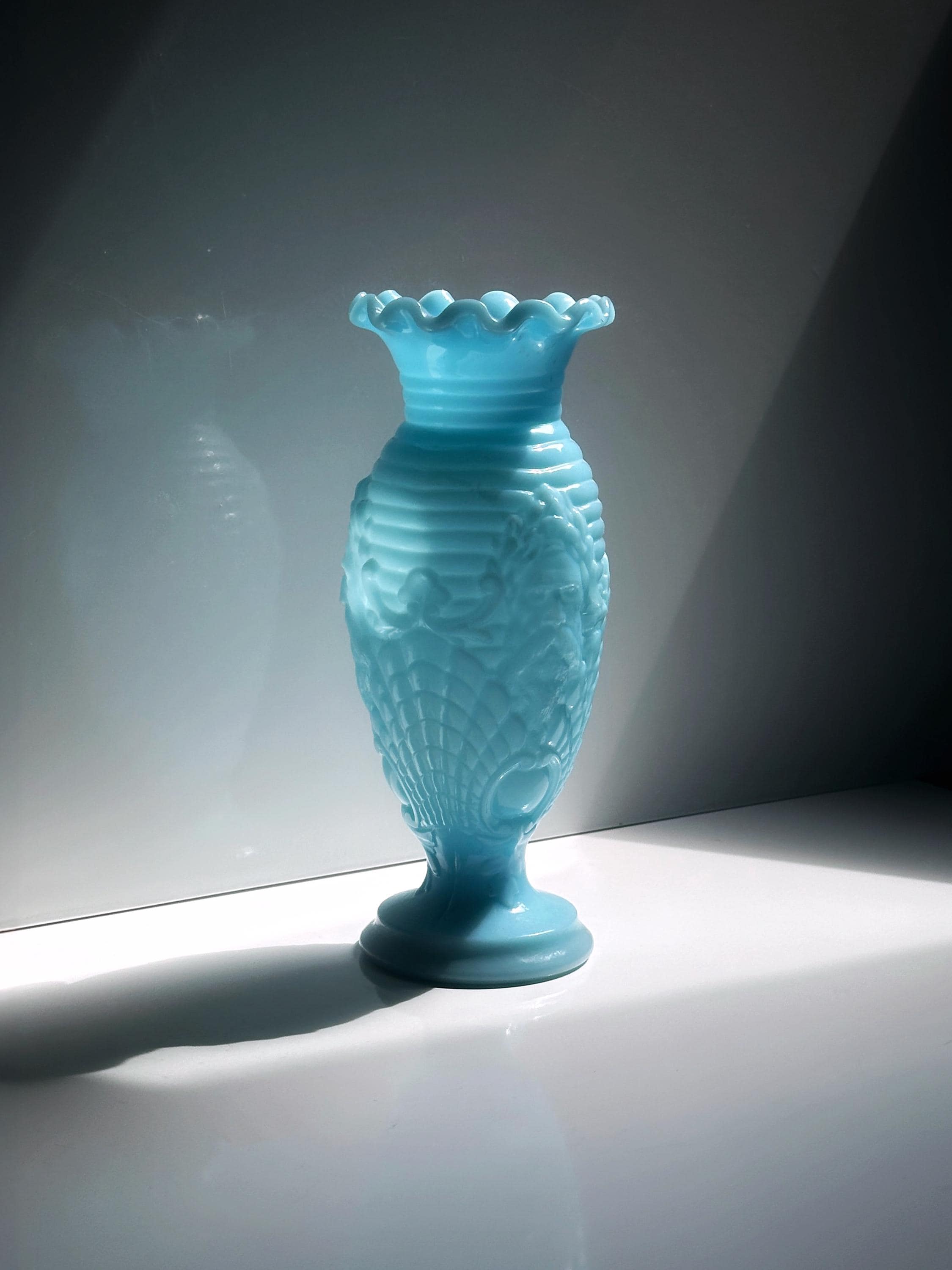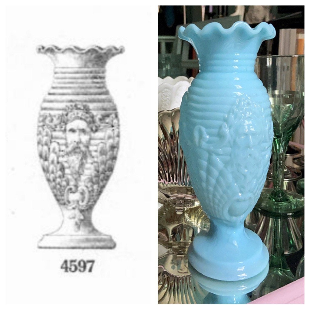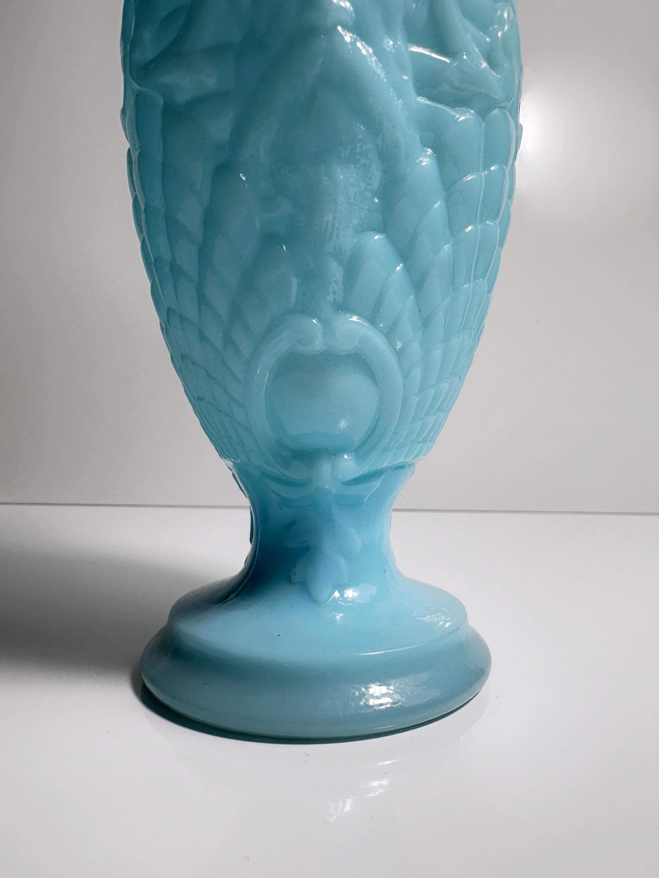 Rare Vallérysthal Opaline Vase Art Nouveau Glass 4597 Opaline Glass Milk Glass Blue Celeste 1900 1910 Portieux Neptune Poseidon Shell Nautical