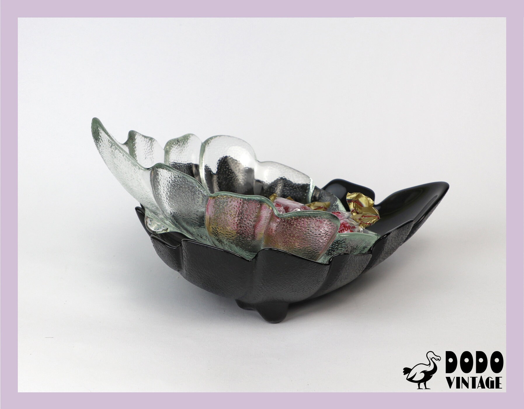 2 vintage Luminarc Arcoroc glass bowl bowl from the 80s Art Deco black leaf plates 1980 80s
