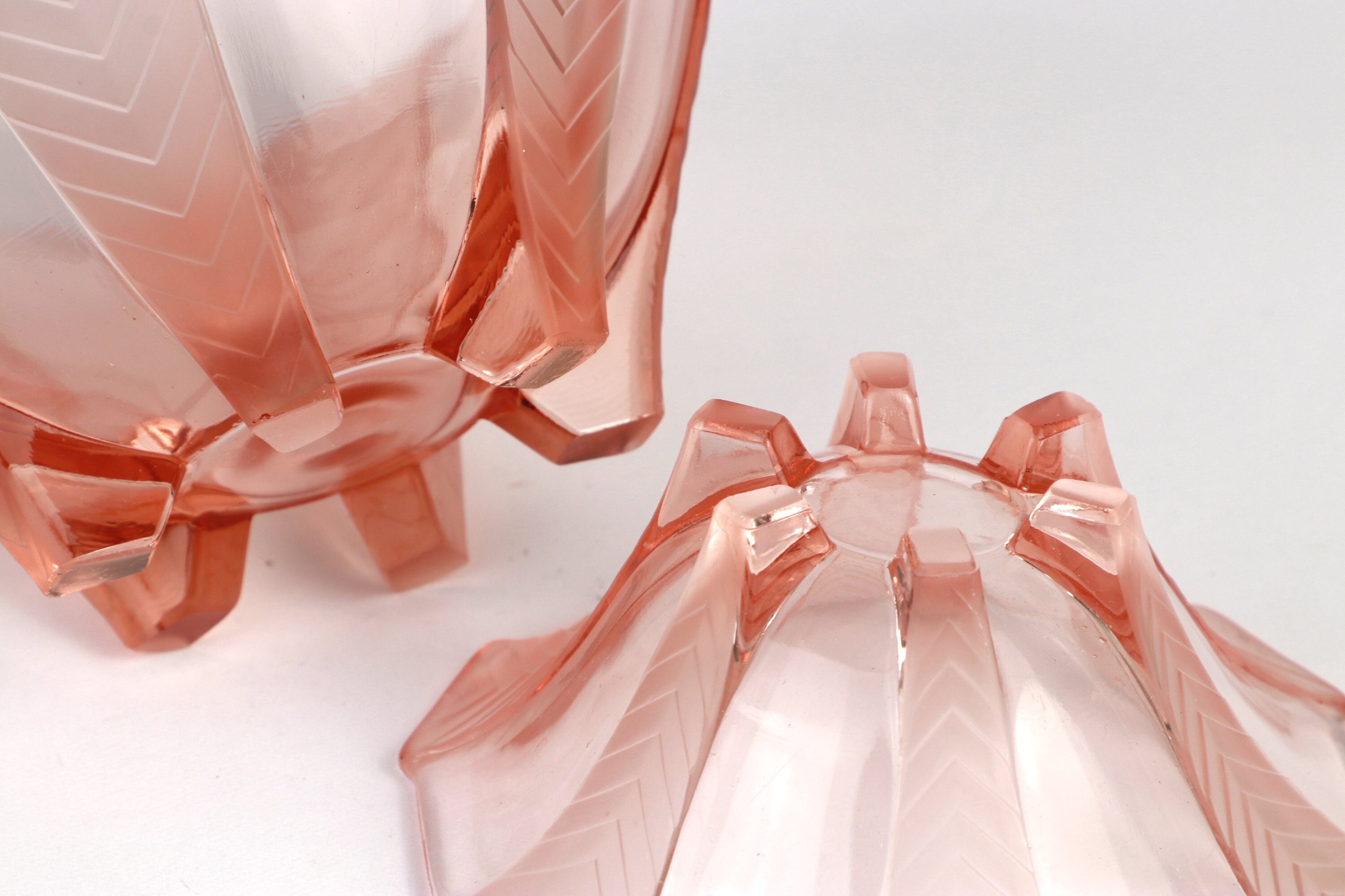 Set of 2 Vintage Rosalin Glass Bowl Walther Söhne Athene Bowl 30s Art Deco Pressed Glass Pink Plate Offering Bowl 1930 1920 20s 1920s