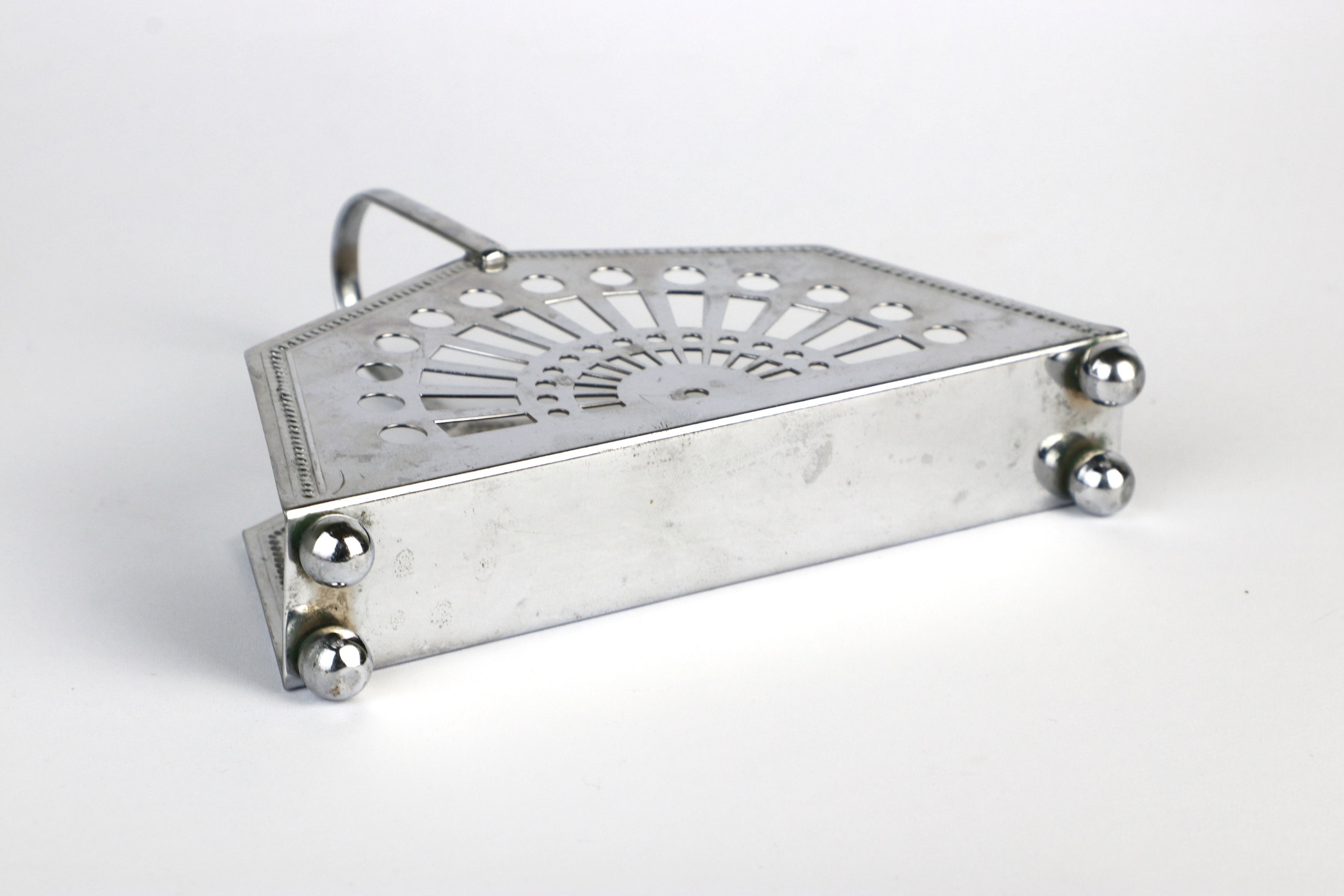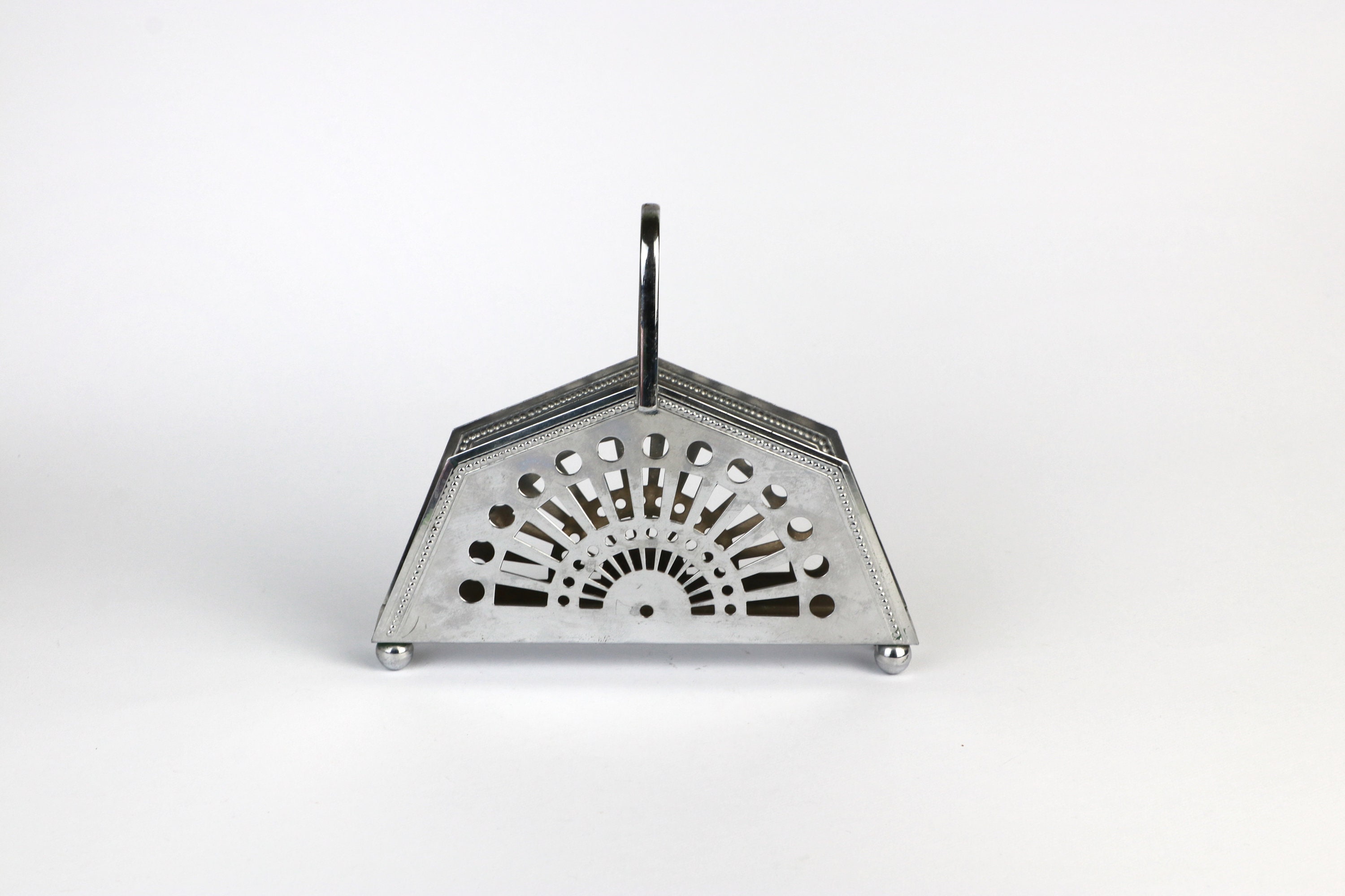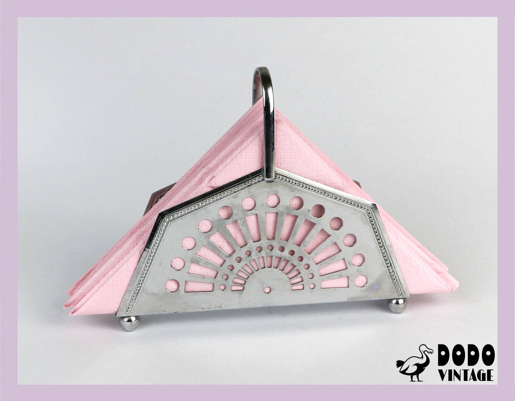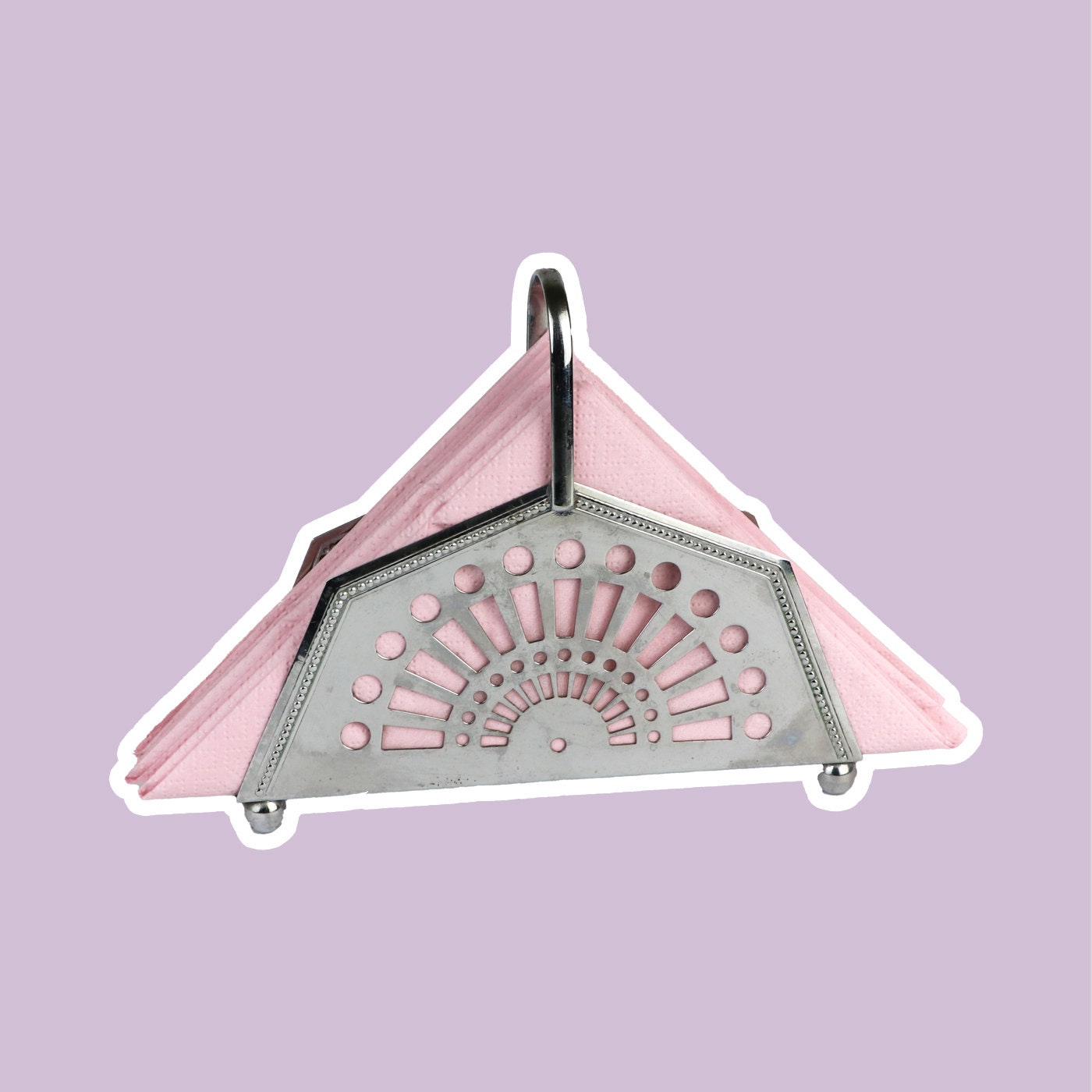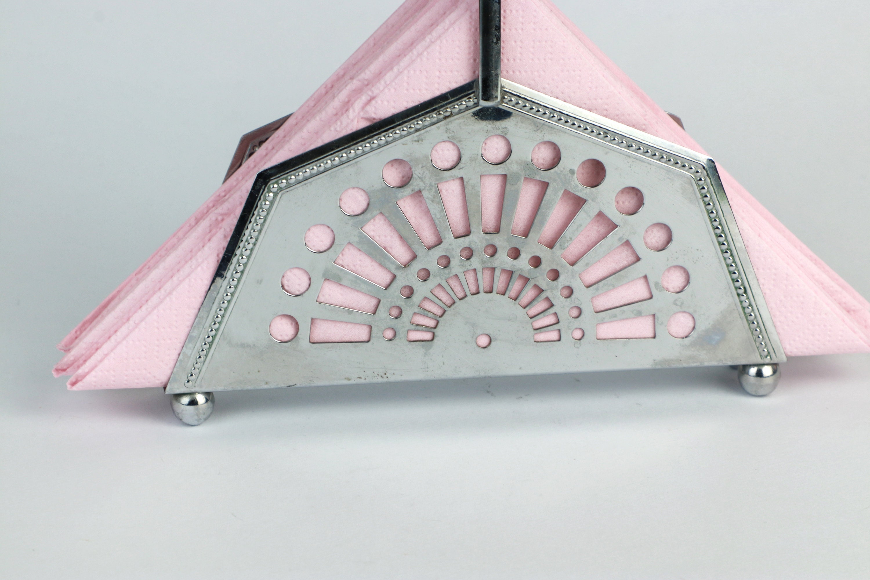 Very nice napkin holder with metal handle. Geometric design language in the Art Deco Revival style. Also suitable for little feet.