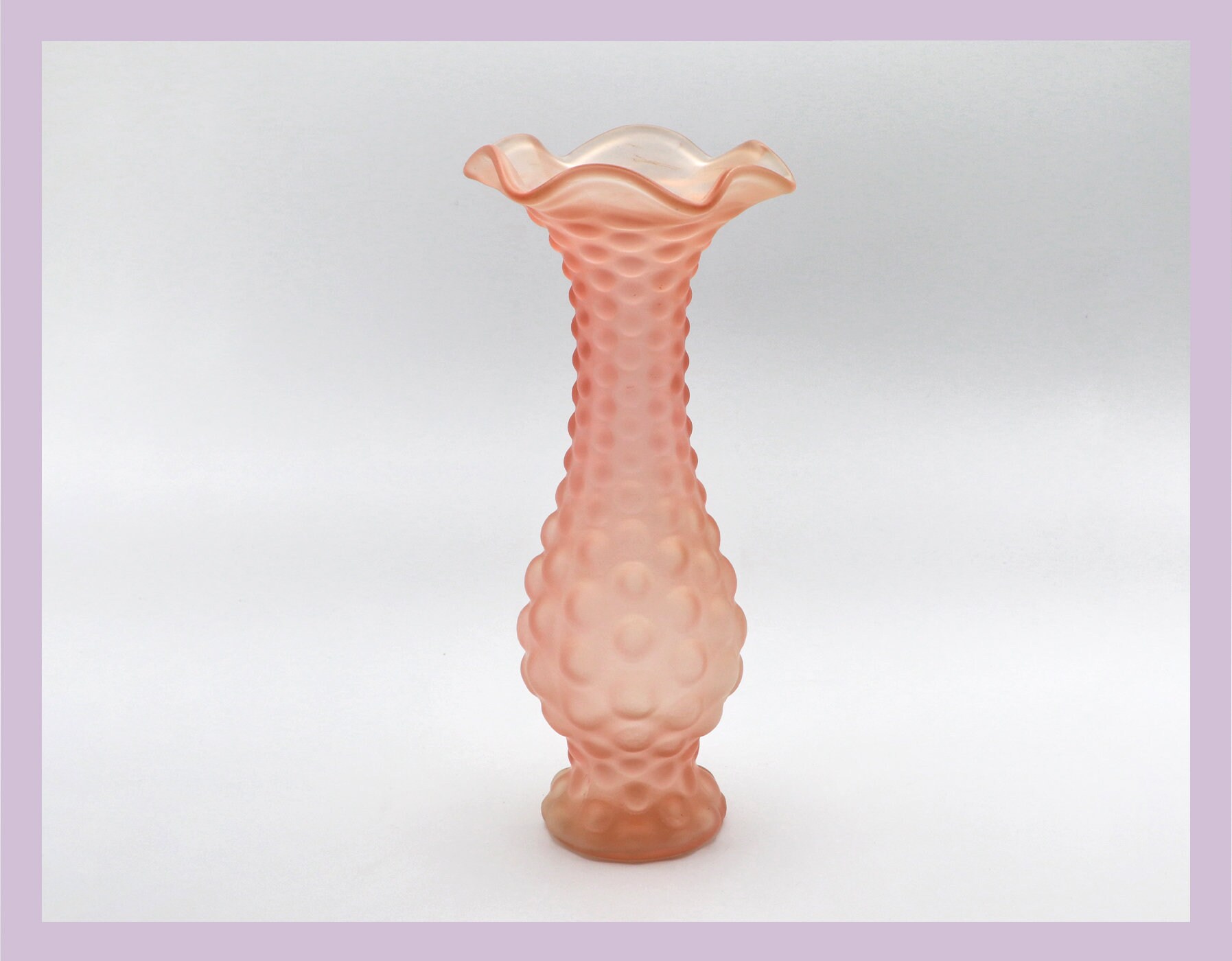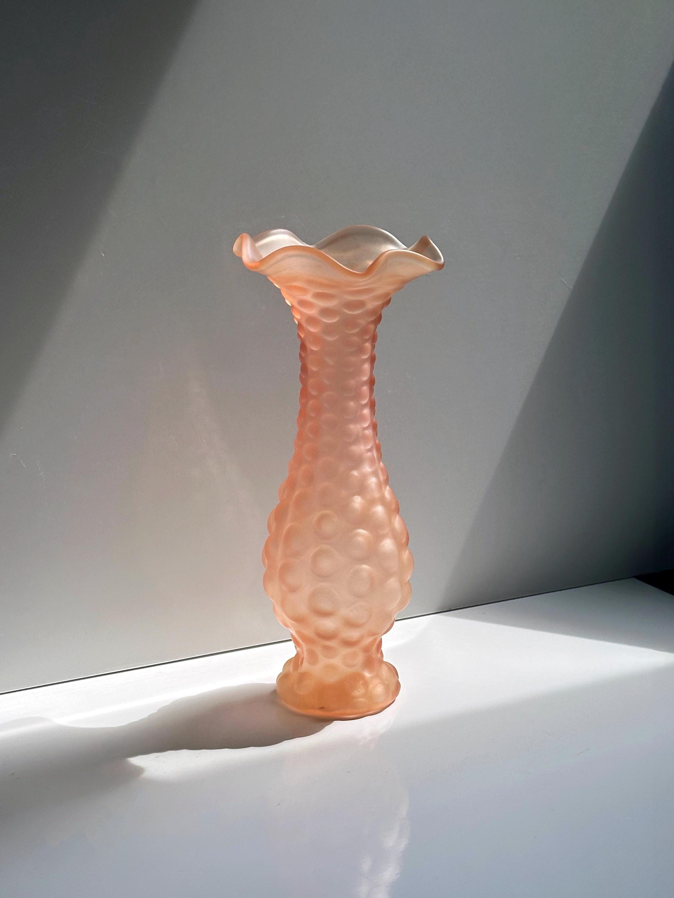 Vintage Rosalin flower vase knobs wave edge chalice cup glass 50s 60s 70s Art Deco 30s 1930 pink vase salmon satin frosted matt