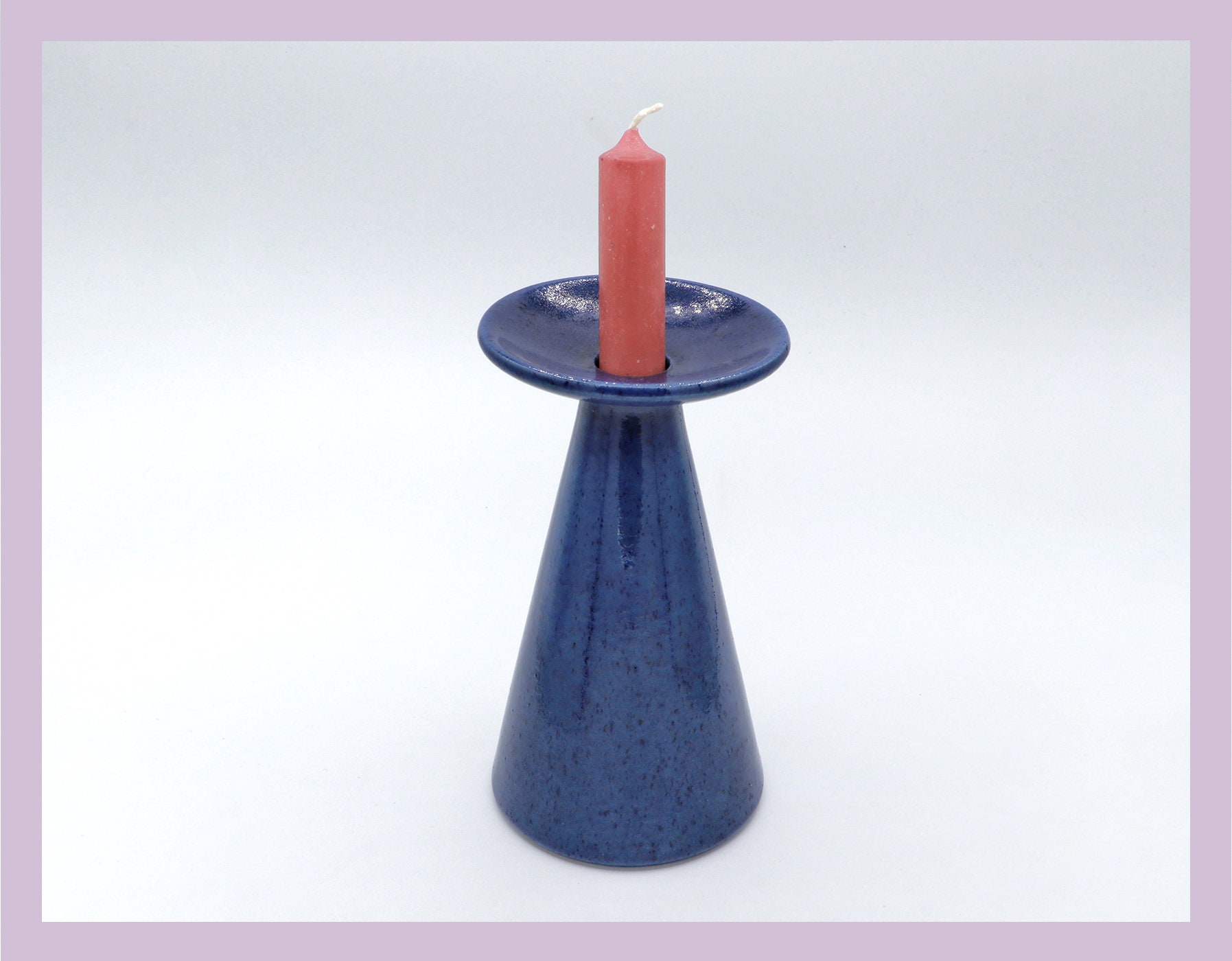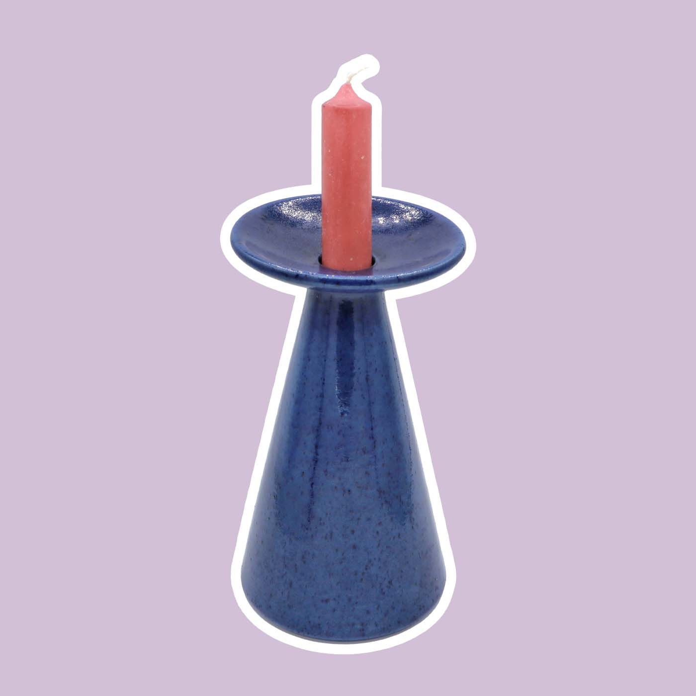 Very nice ceramic candle holder with ultramarine colored glaze and sprinkles.