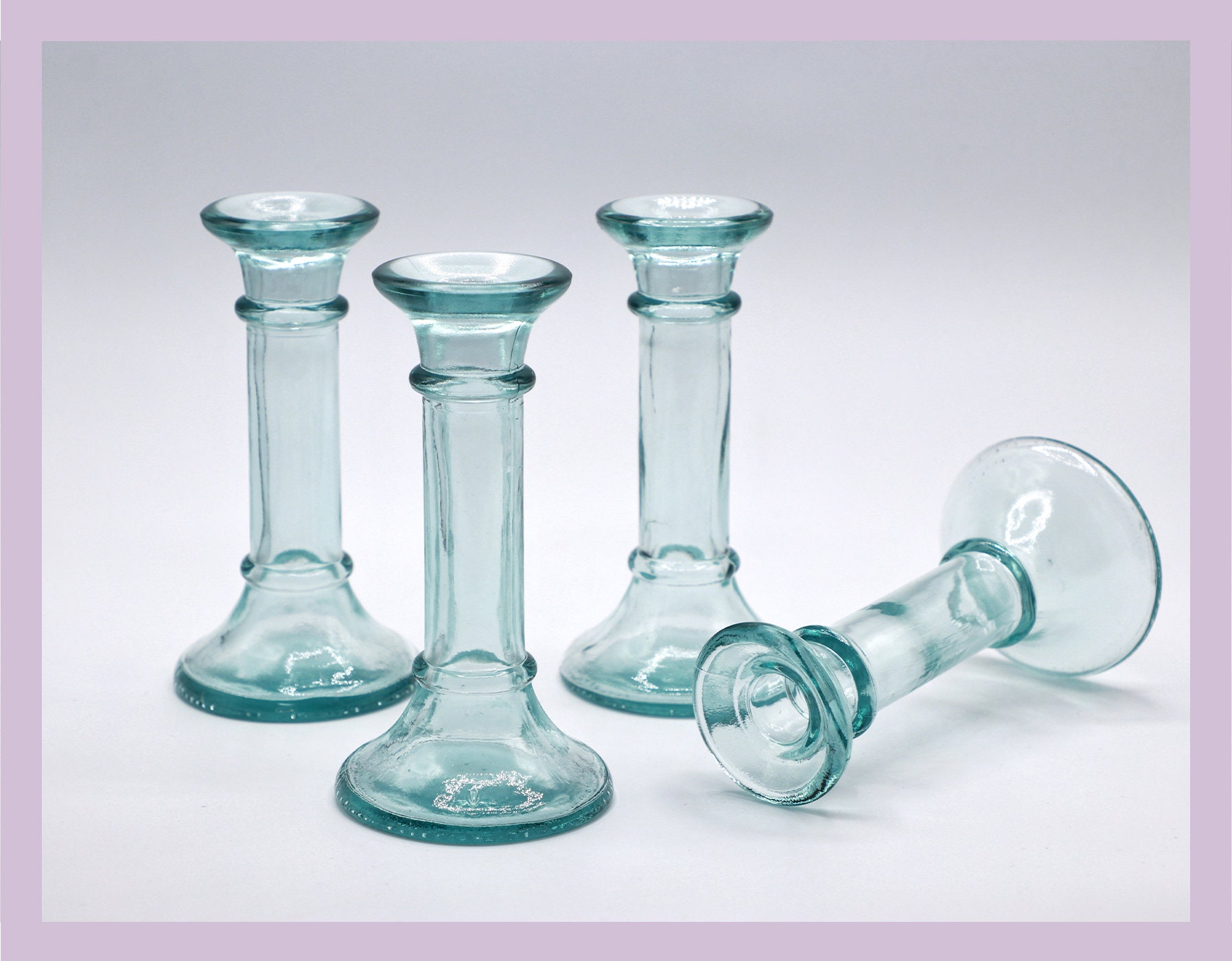 A total of 4 beautiful vintage glass candle holders from the 1980s.