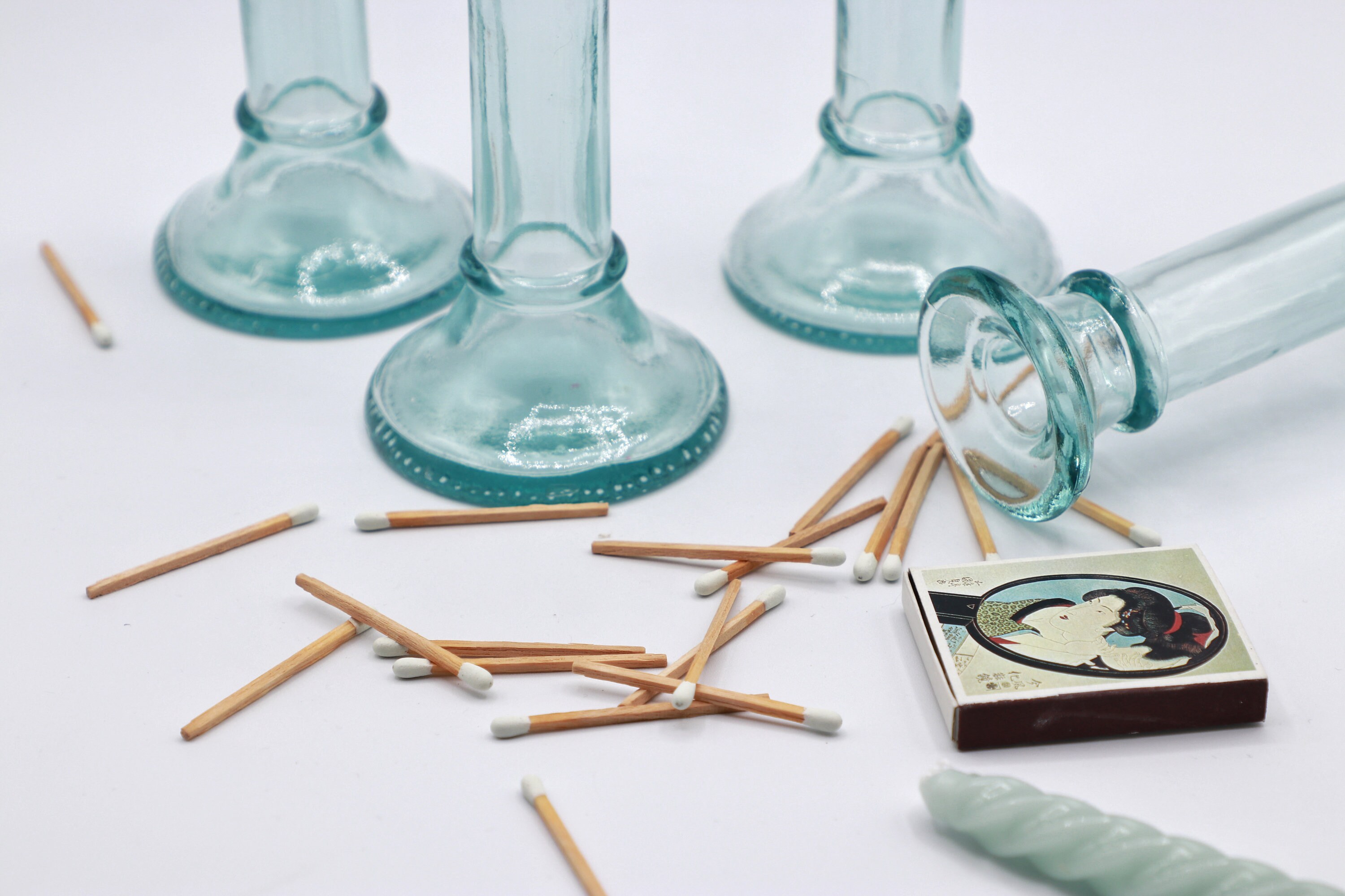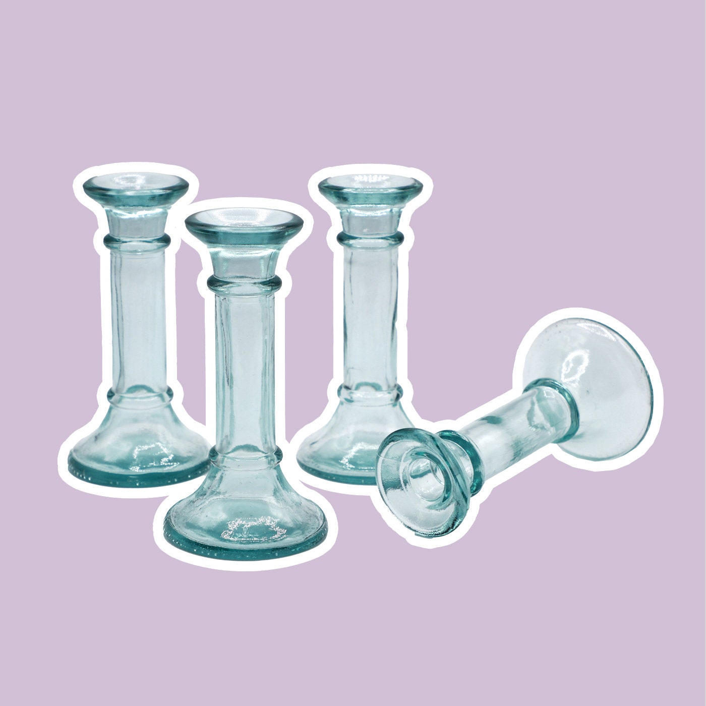 2x / 4x Vintage Glass Candlesticks Mint Green Water Green 80s Candlestick Candle Holder Set Pair