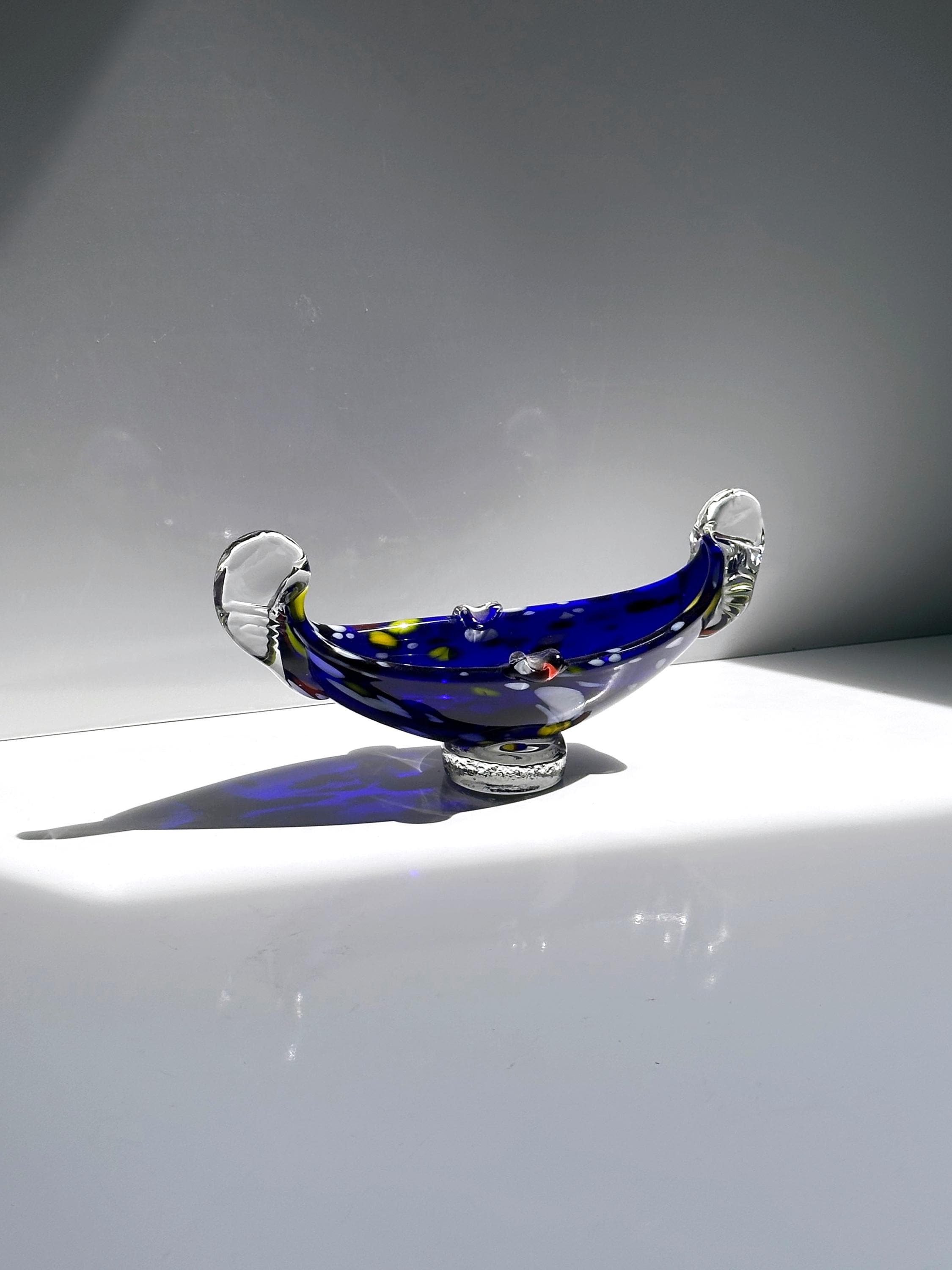 Vintage Murano ashtray gondola bowl 1970 Gondola Seguso Cobalt Ultramarine Blue Glass Technique Heavy Italy 70s 1970