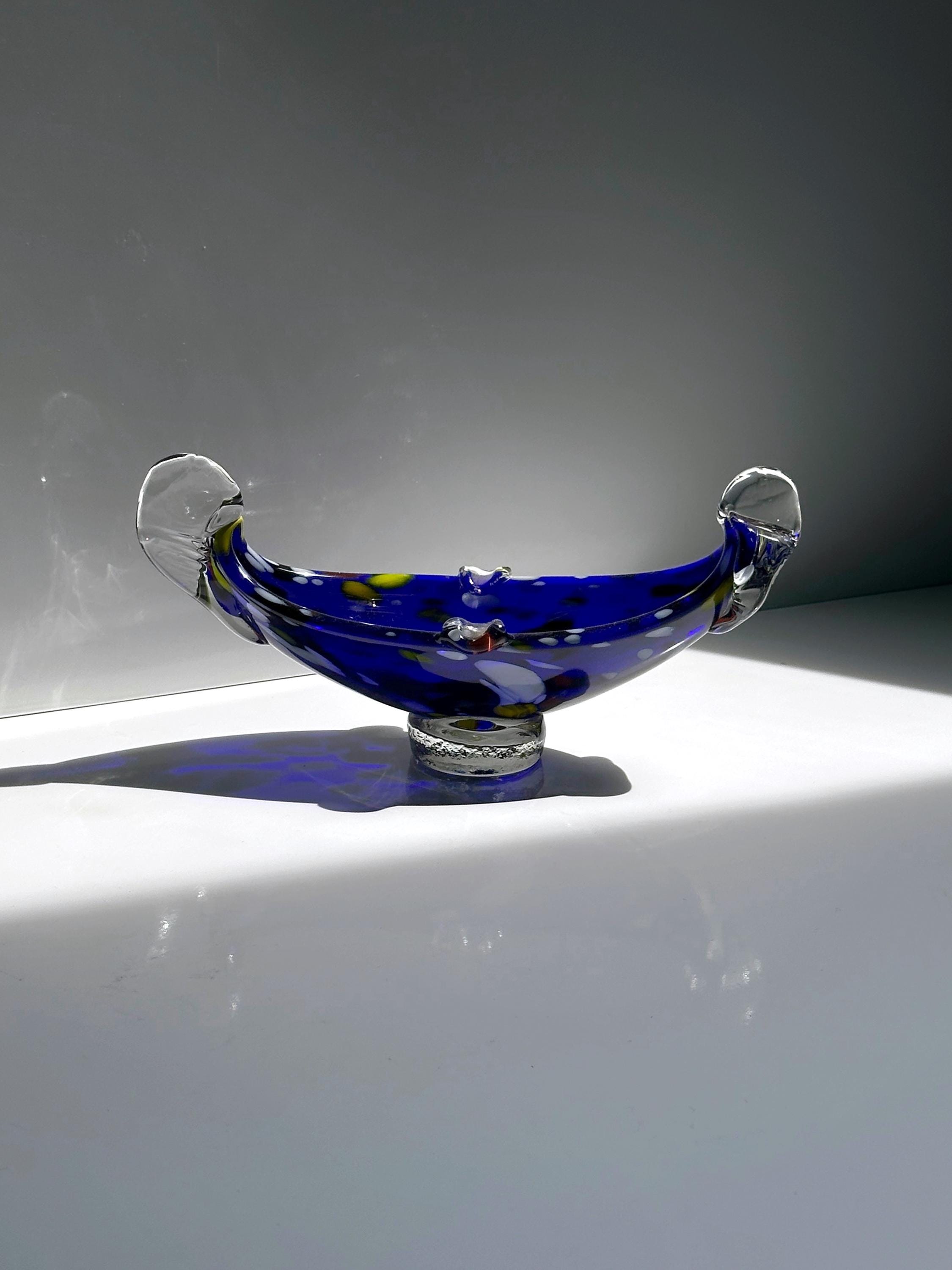 Beautiful Murano bowl/ashtray in a beautiful, intense cobalt blue. In the shape of a classic Venetian gondola. Beautiful craftsmanship.