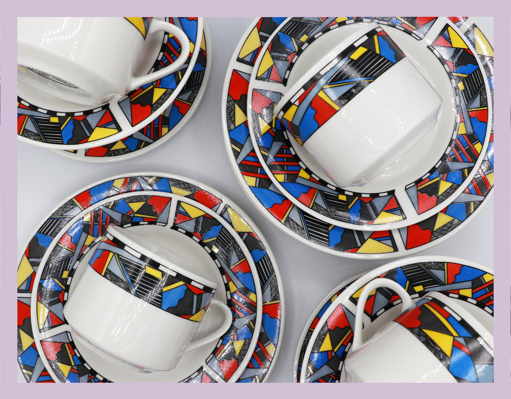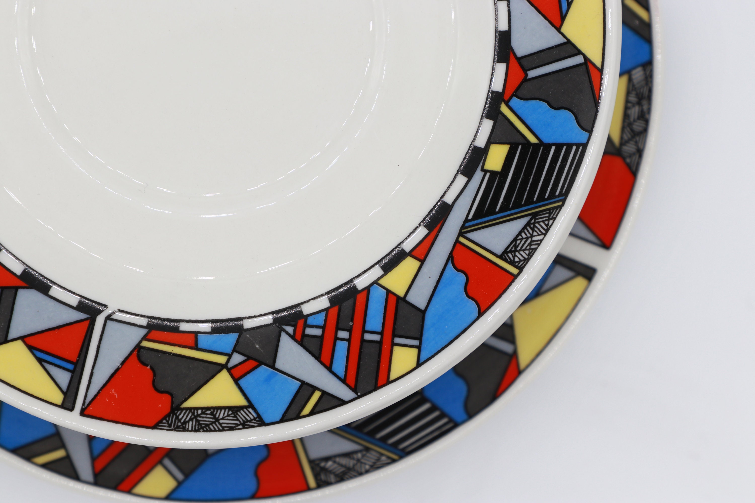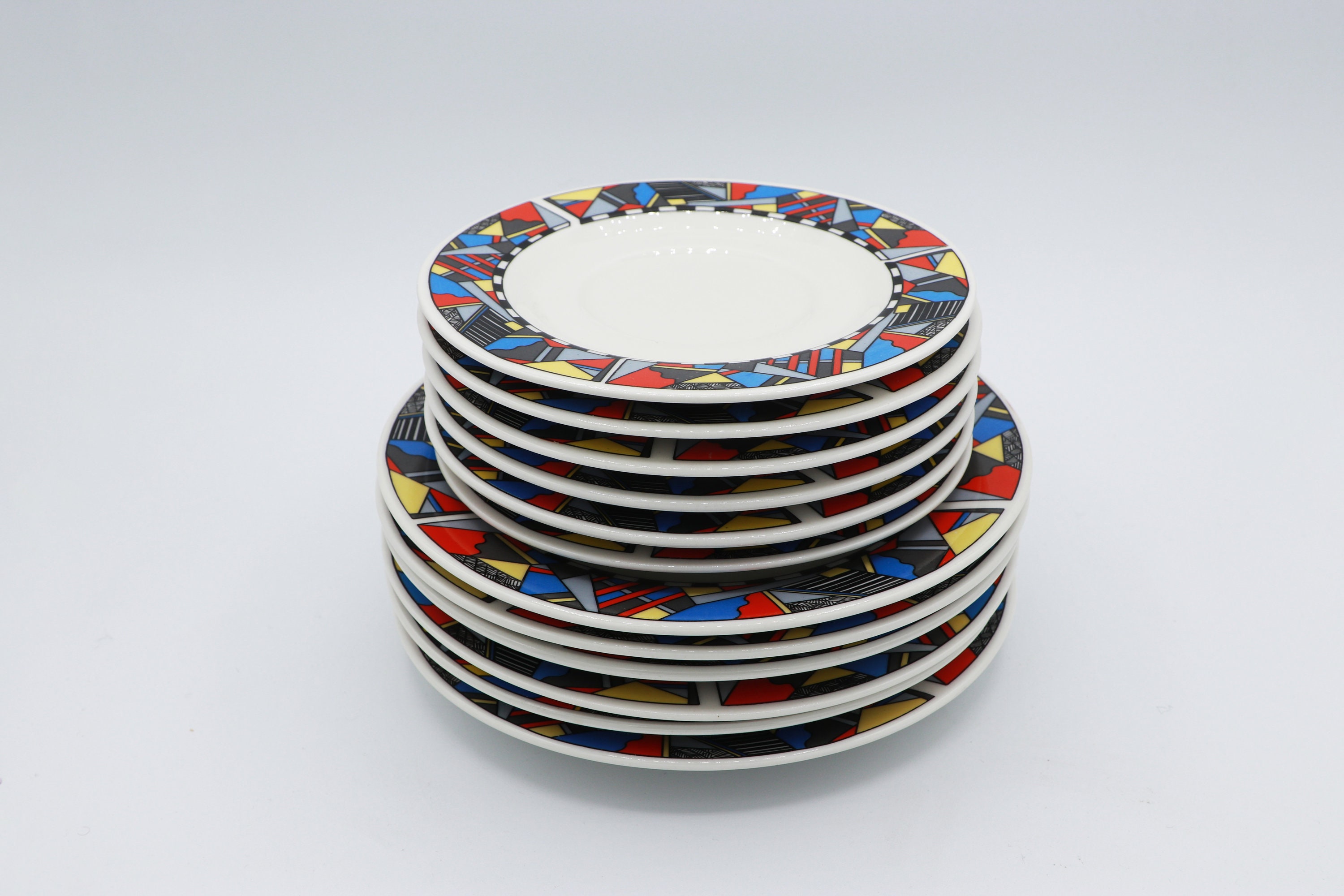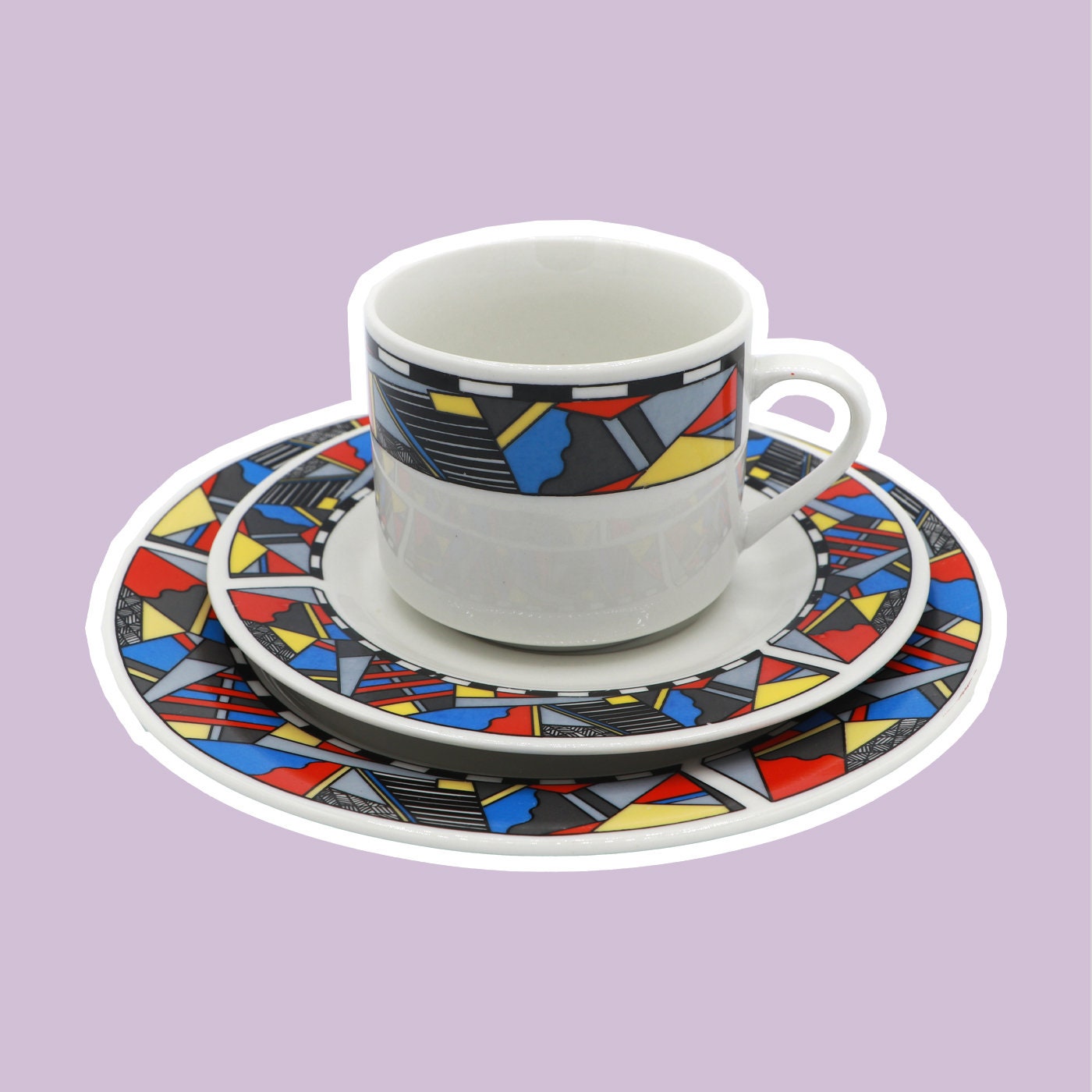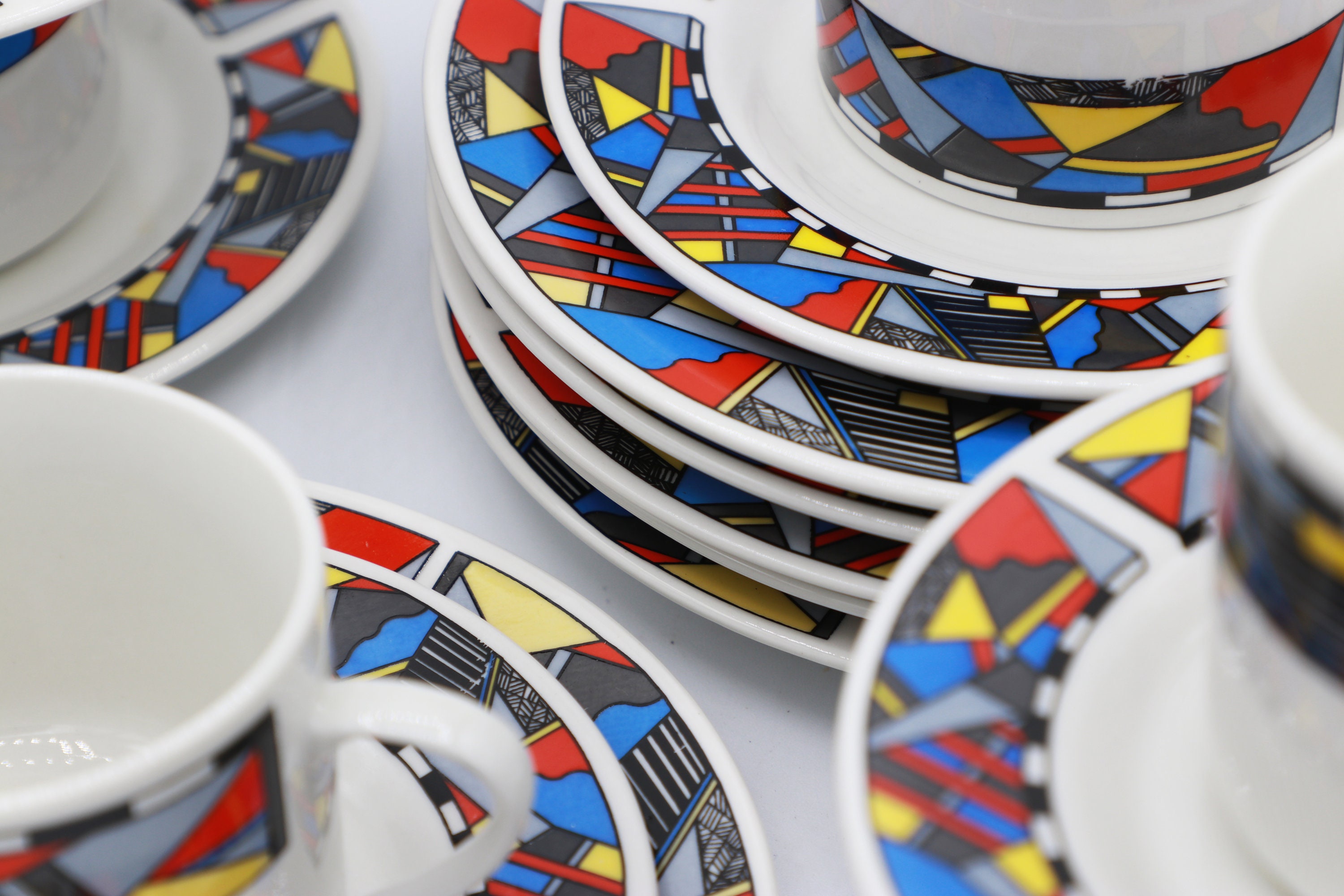 Vintage 6 Person Set Coffee Service Bauhaus Postmodern Red Blue Yellow Sottsass Memphis Milano Germany 1980 1990 Ceramic Wellco Design