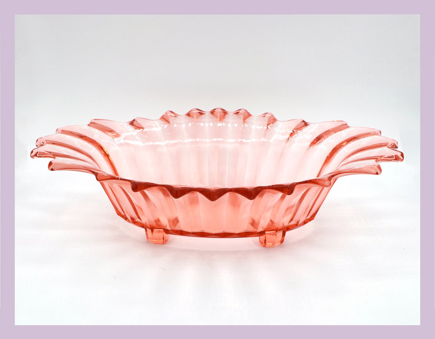 Large Vintage Rosalin Glass Footed Bowl Art Deco Jardiniere Bowl Brockwitz Prisms Pressed Glass Pink Plate Offering Bowl 1930 1920 20s 1920s