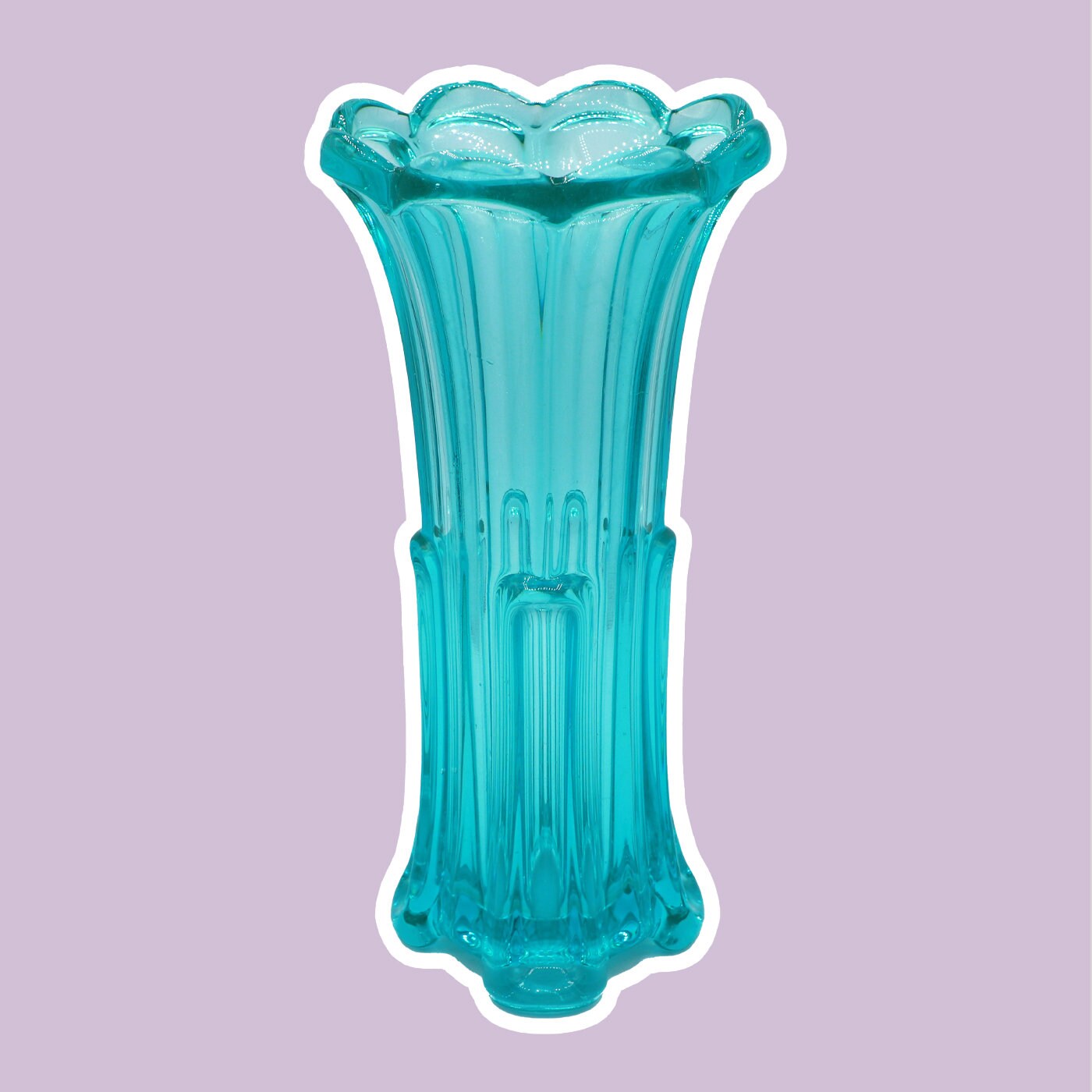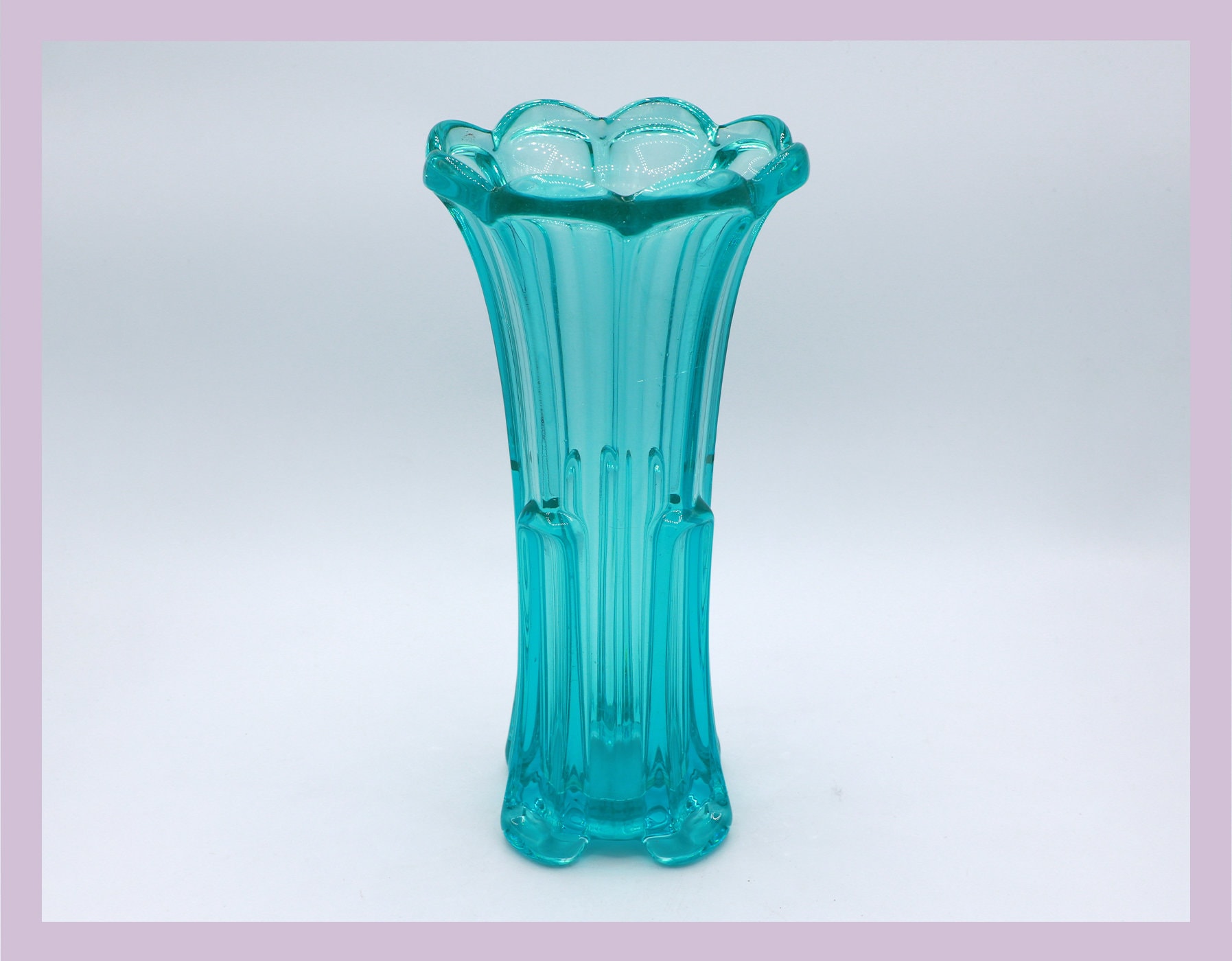 Art Deco design, rich turquoise glass color. Uranium glass!
