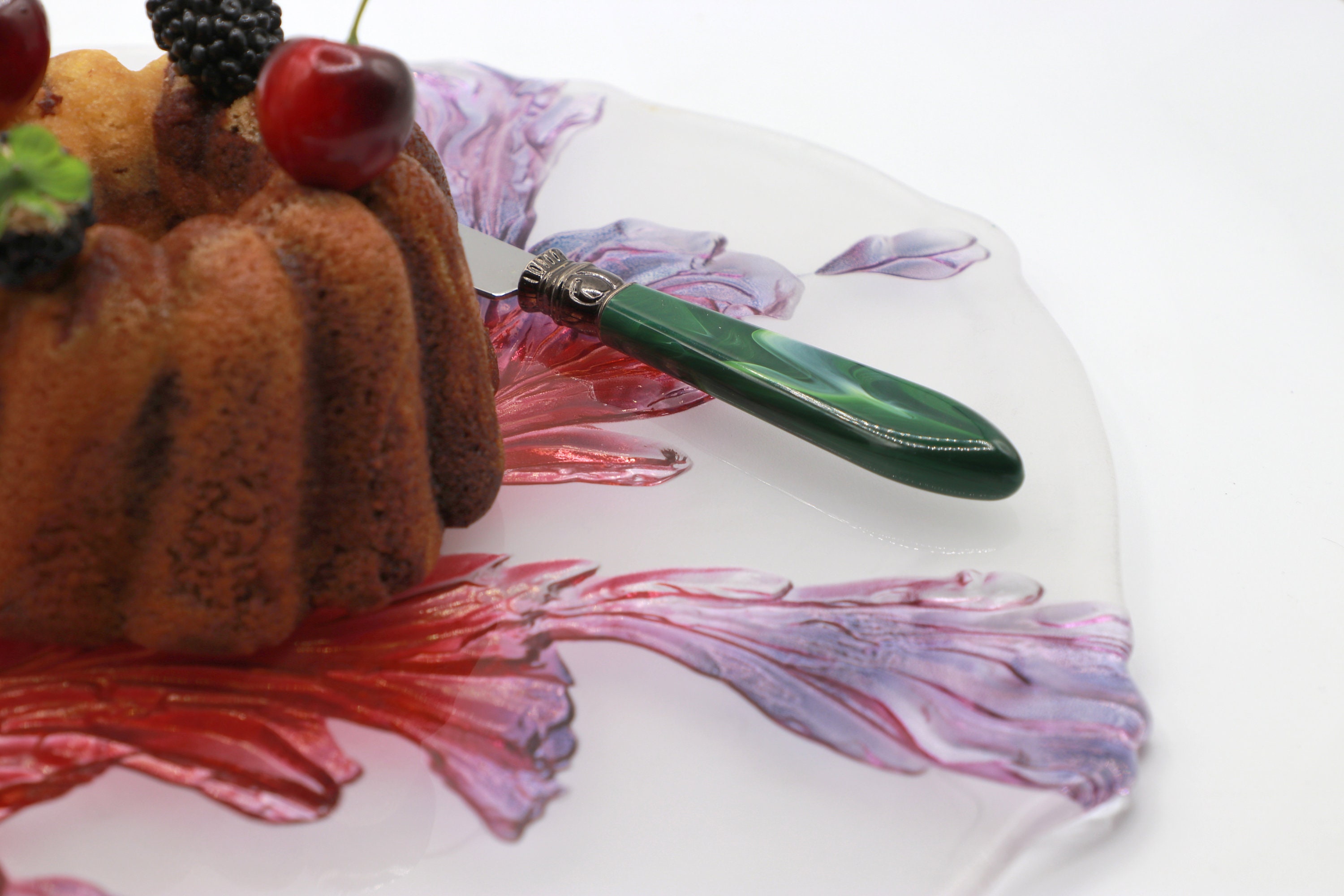 Vintage large offering bowl Walther glass acanthus leaf leaf 80s 1980 purple violet pink red lilac plate cake cake