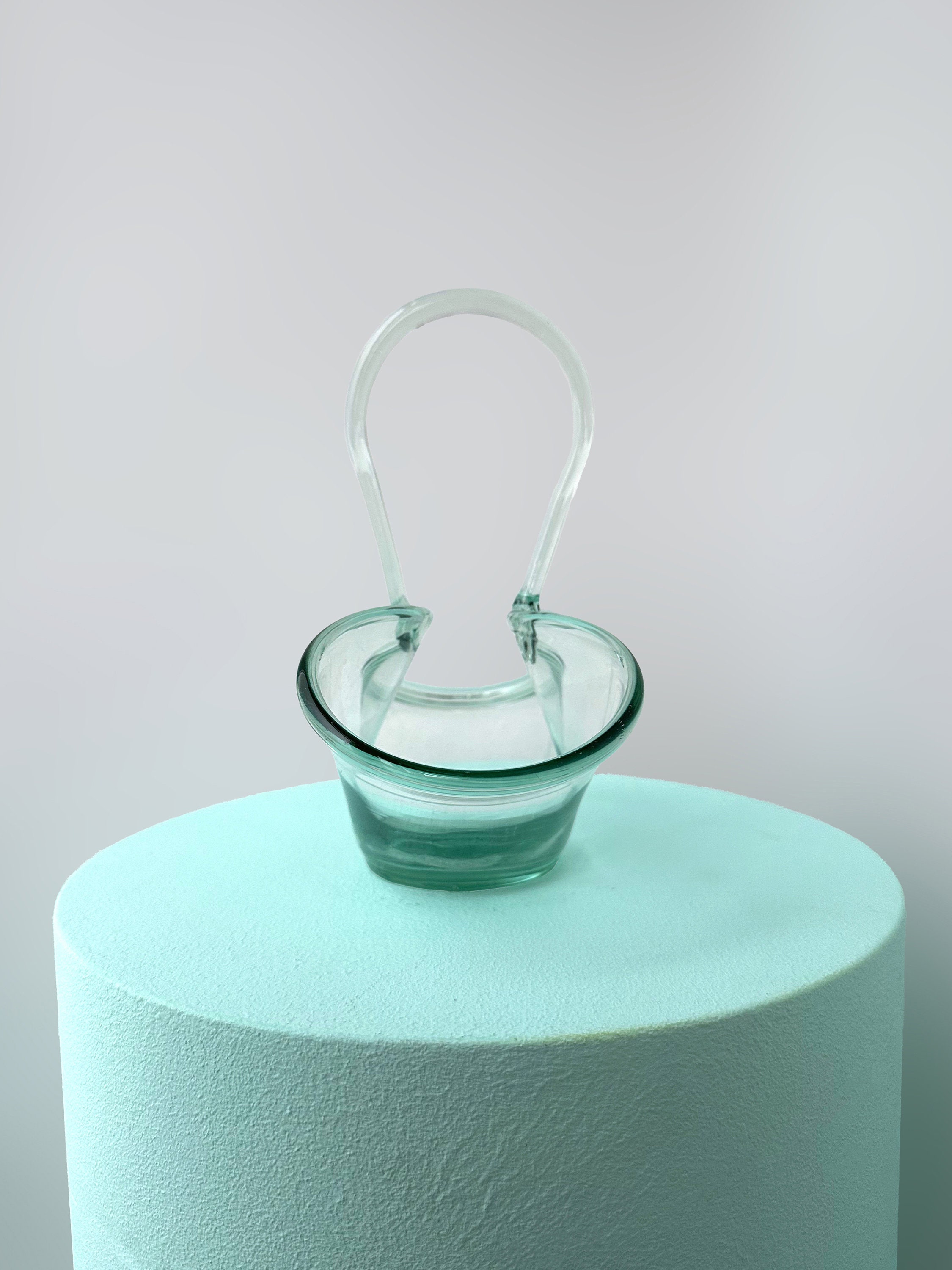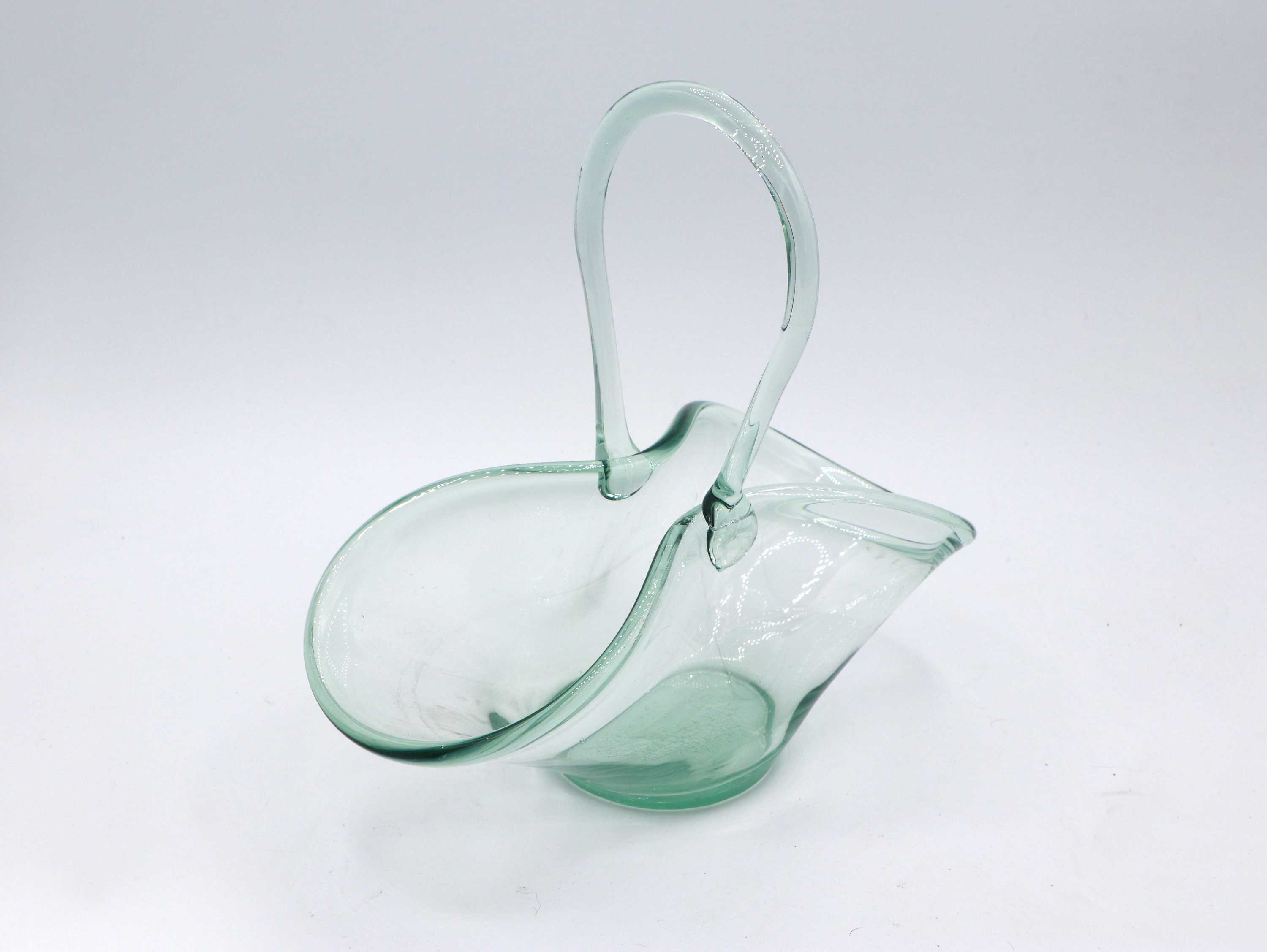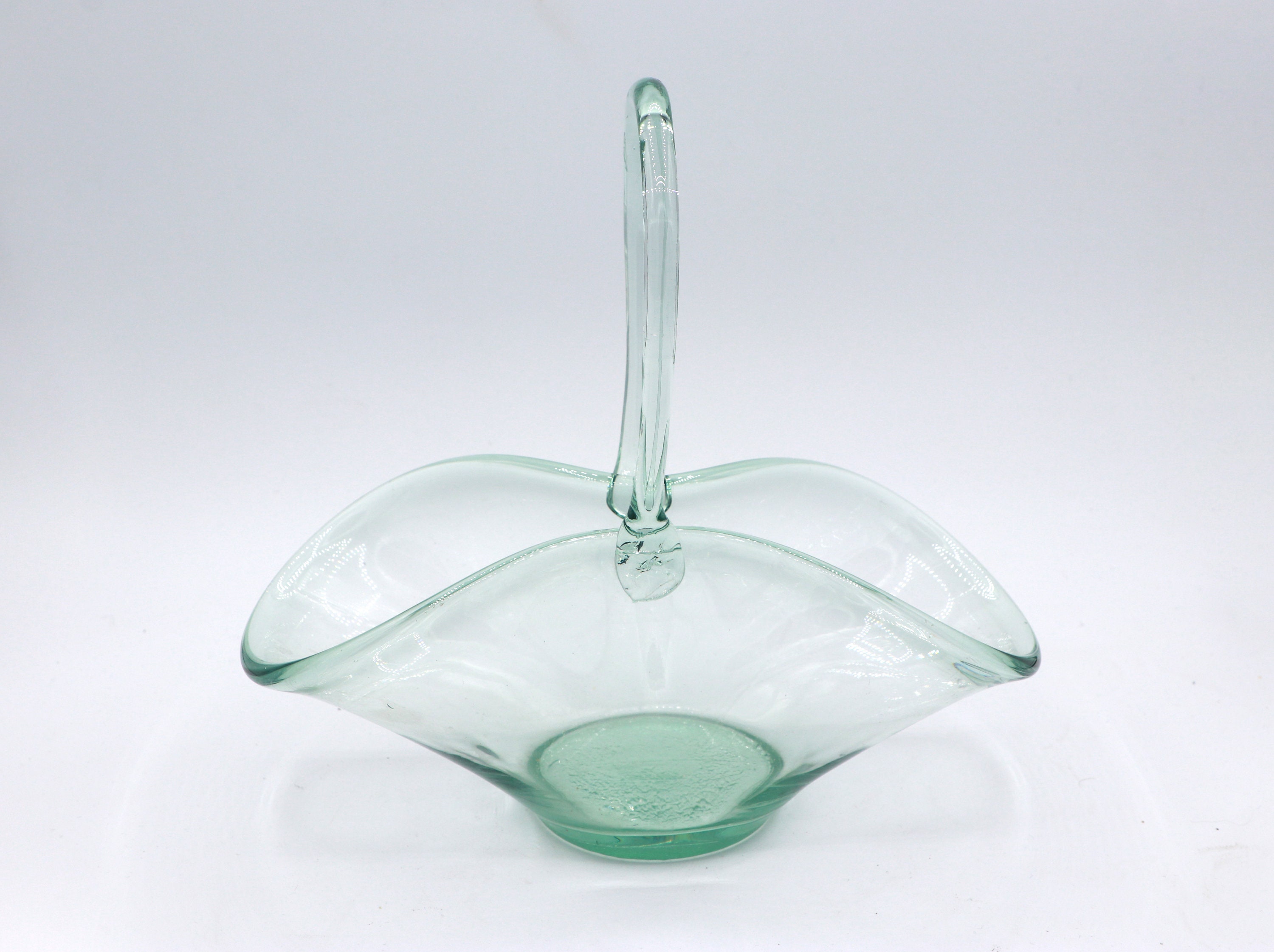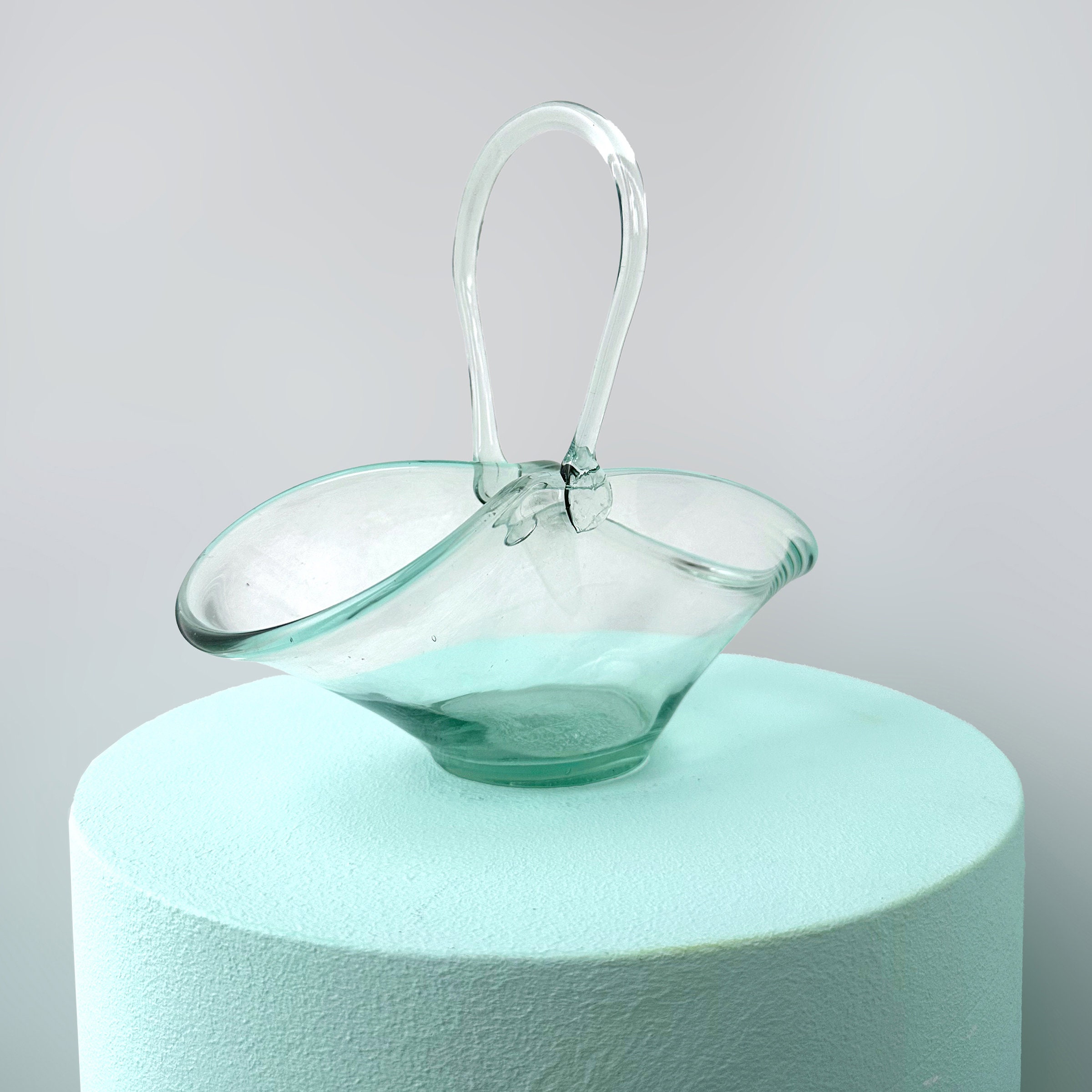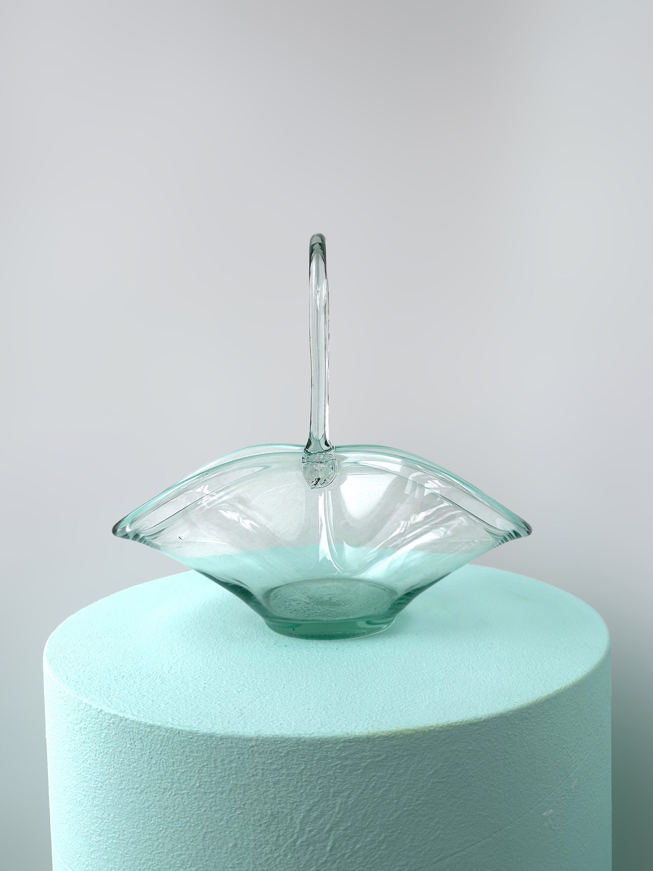 Beautiful small candy dish / glass basket made of mint green glass from the 1970s.