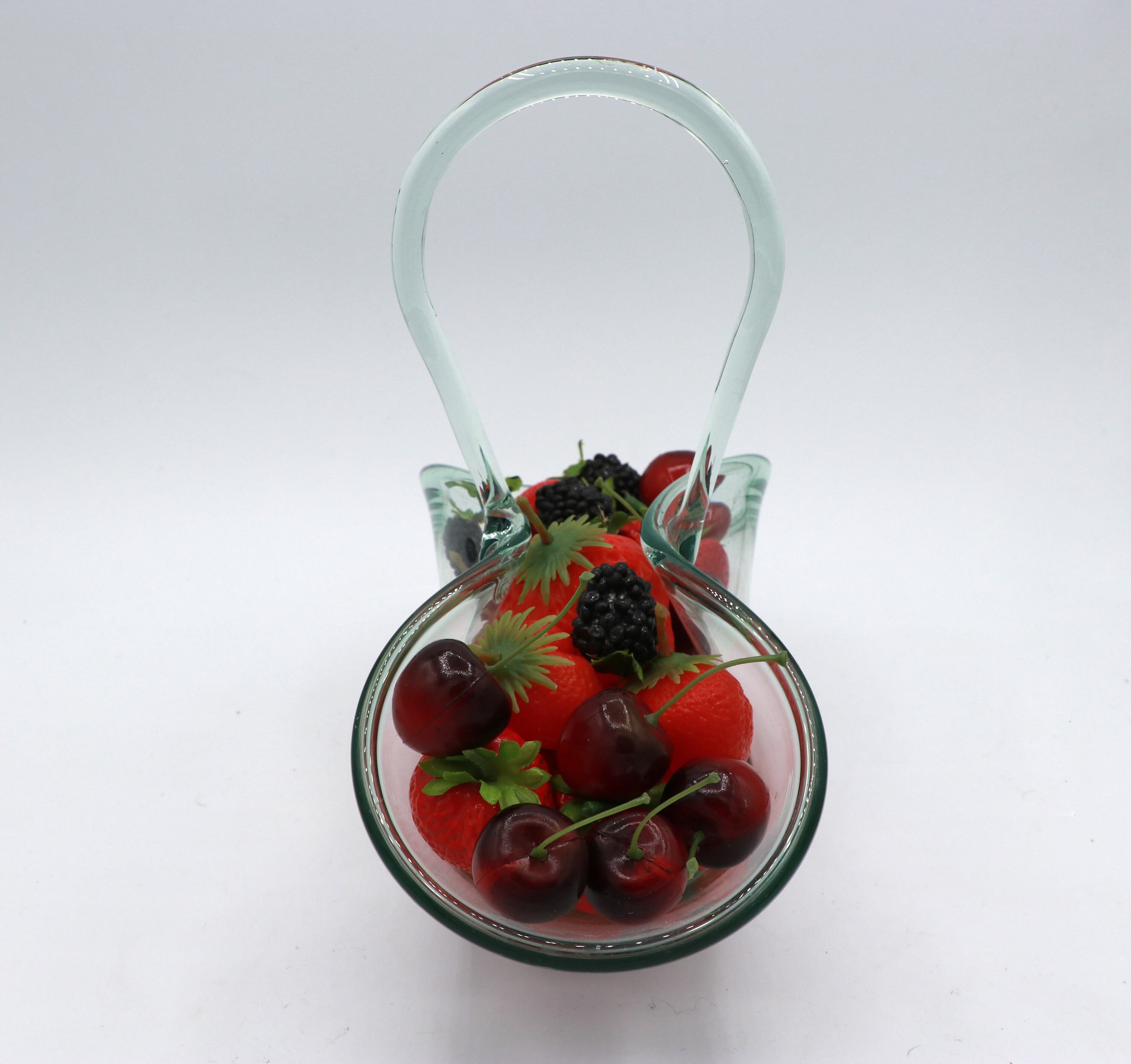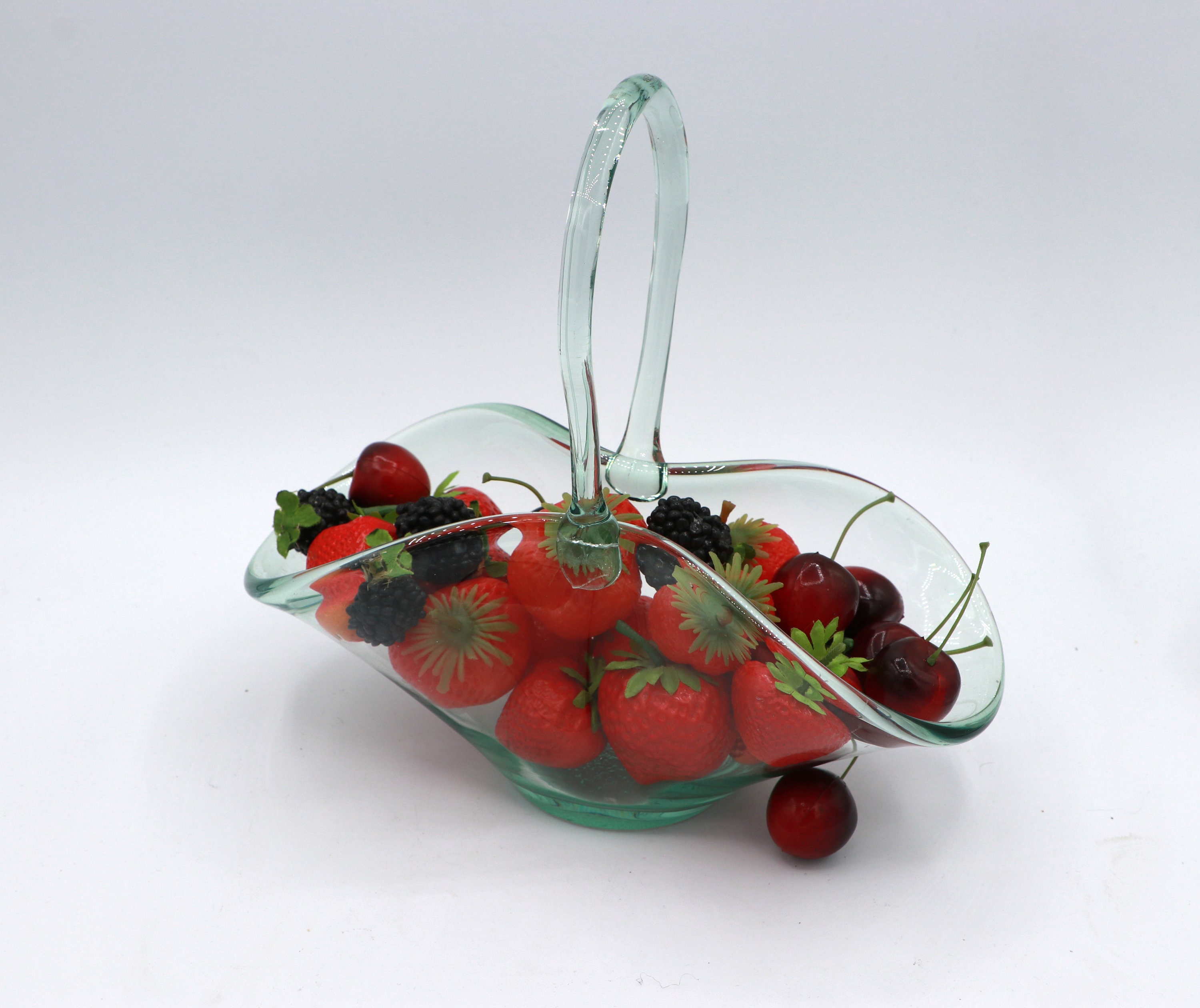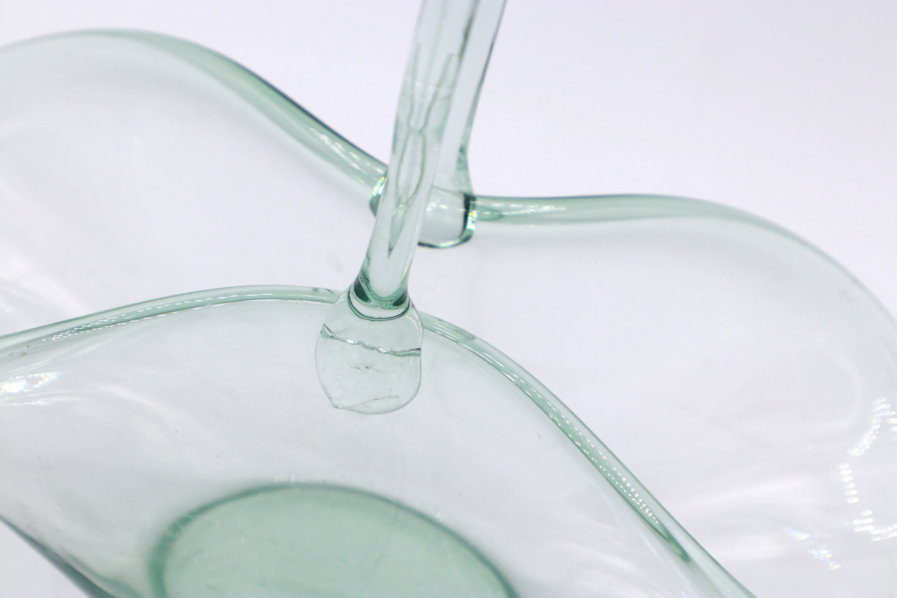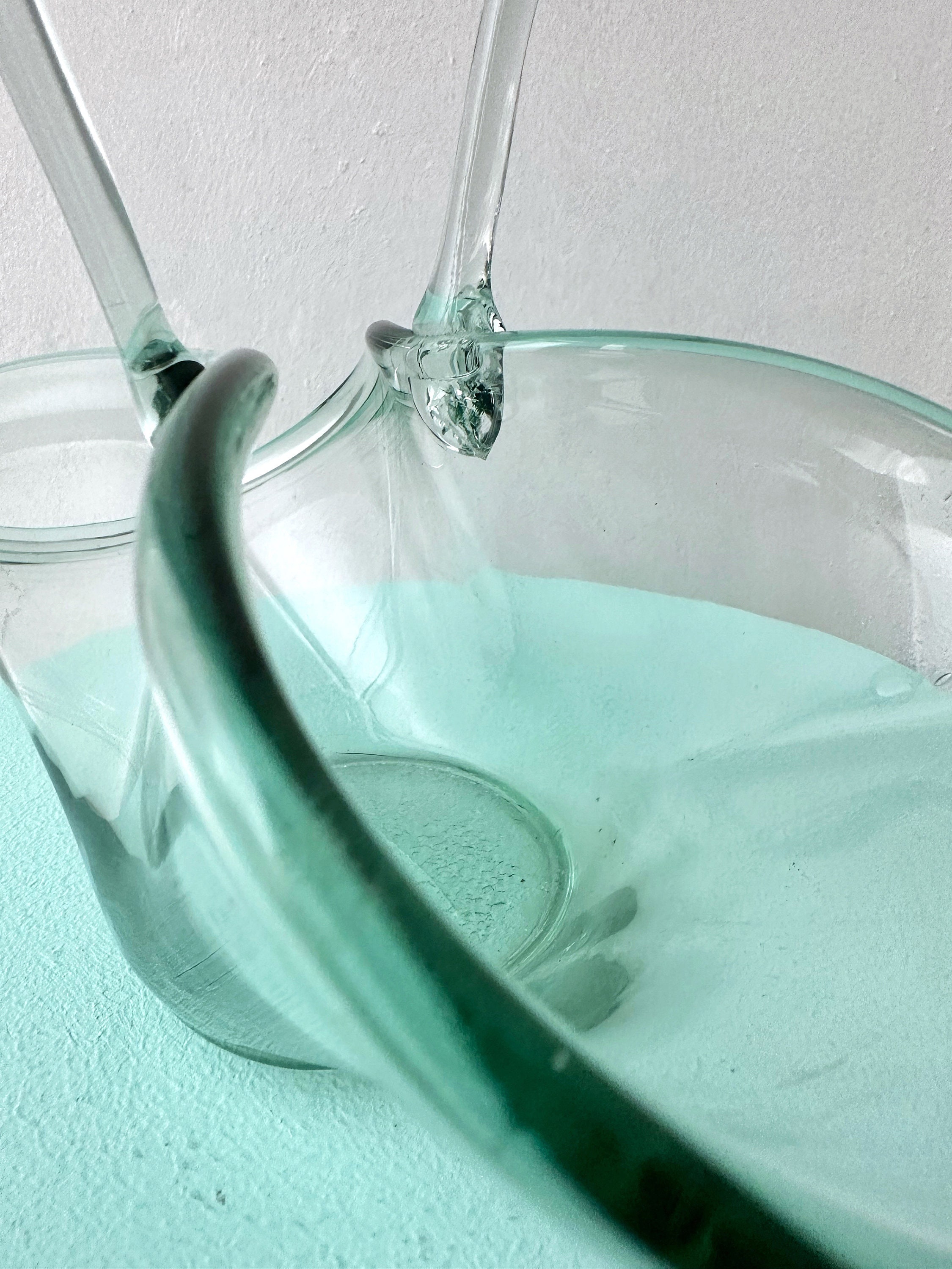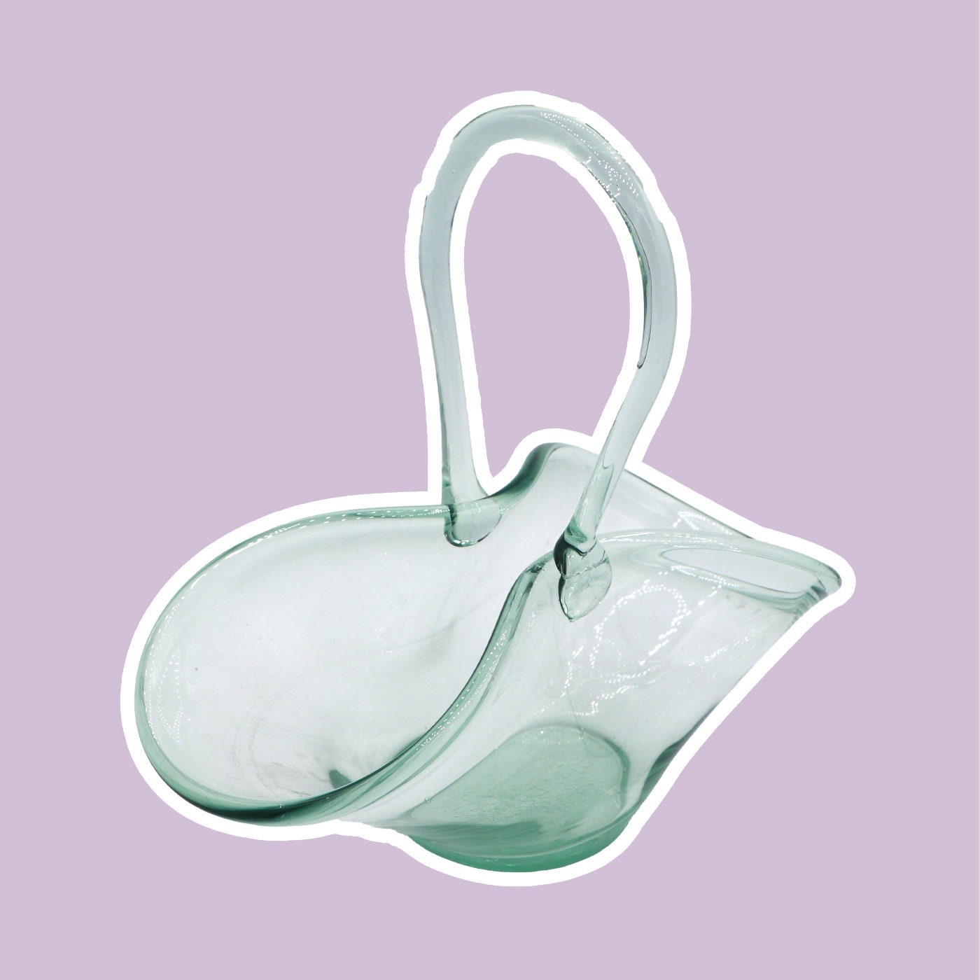 Beautiful small candy dish / glass basket made of mint green glass from the 1970s.