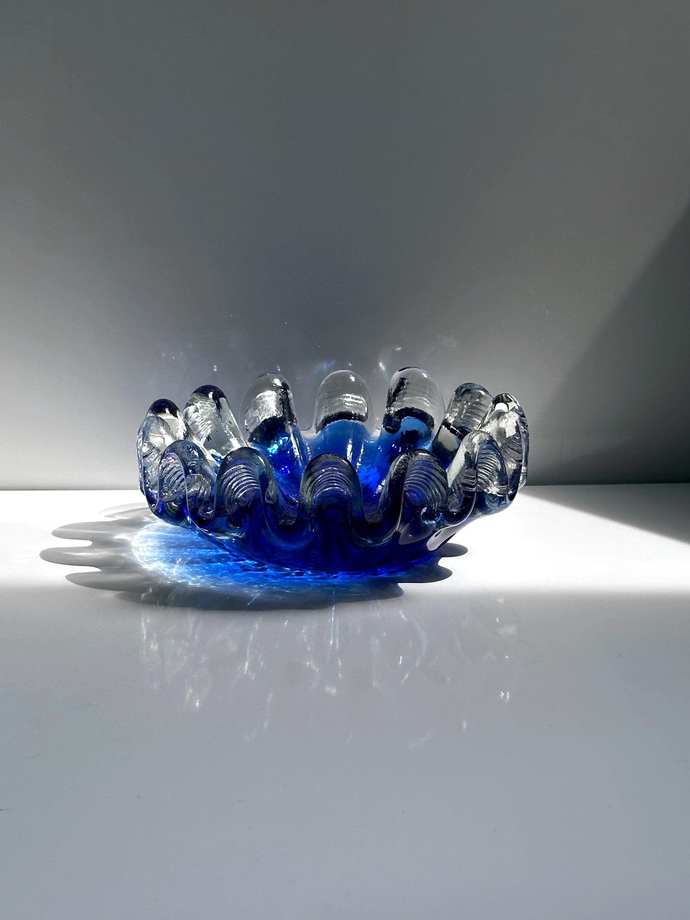 Beautiful Murano bowl/ashtray in a beautiful, intense cobalt blue. A beautiful shell-shaped model.