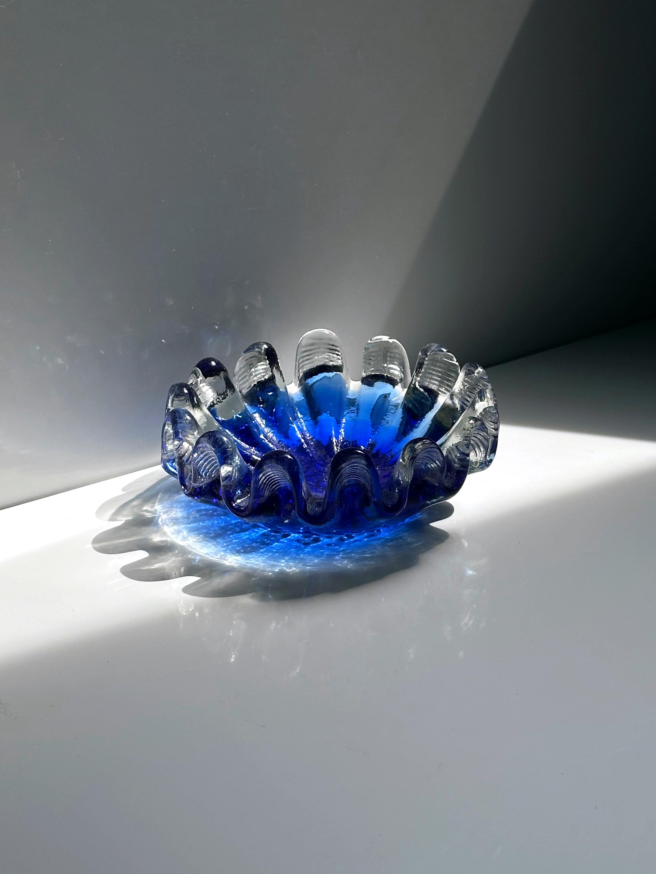 Vintage Murano bowl 1970 ashtray shell maritime Nautika Seguso cobalt ultramarine blue glass technique Italy 70s 70s 1970