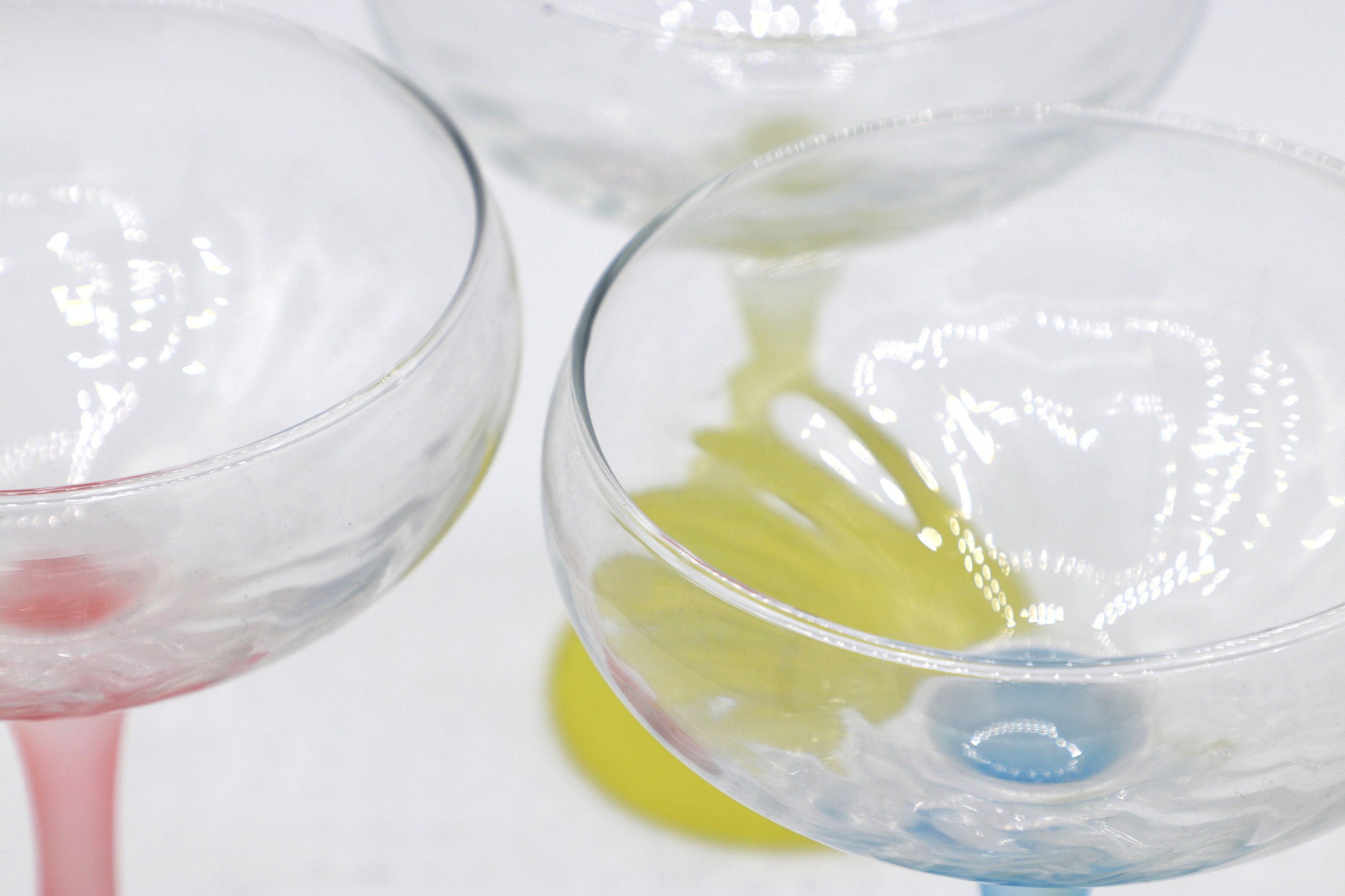 6 vintage champagne glasses champagne bowls Italy 50s pastel red yellow blue glasses cup goblet Mid Century Italy Murano