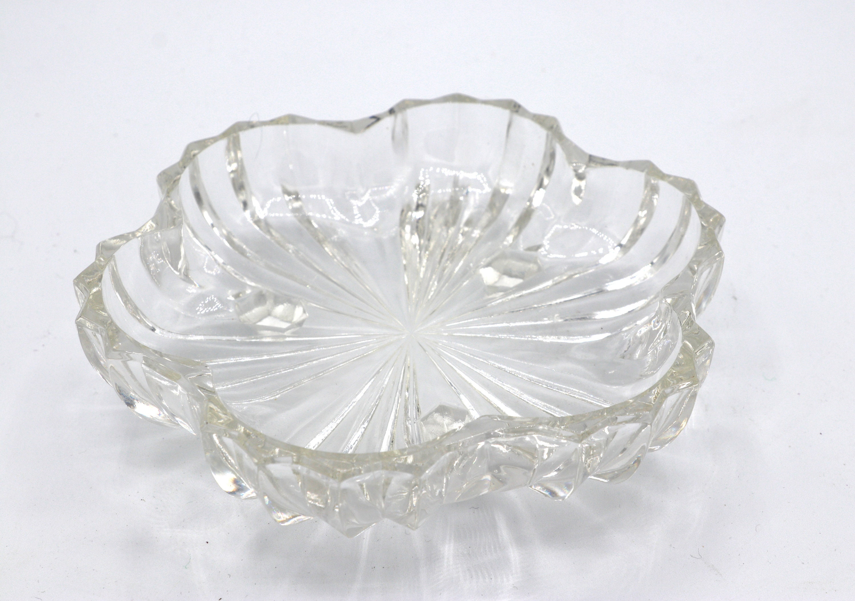 3 Vintage Crystal Glass Bowls France Sakura Cherry Blossom France Art Deco Revival Leaf Floral 1980 80s Plate Bowl Dessert