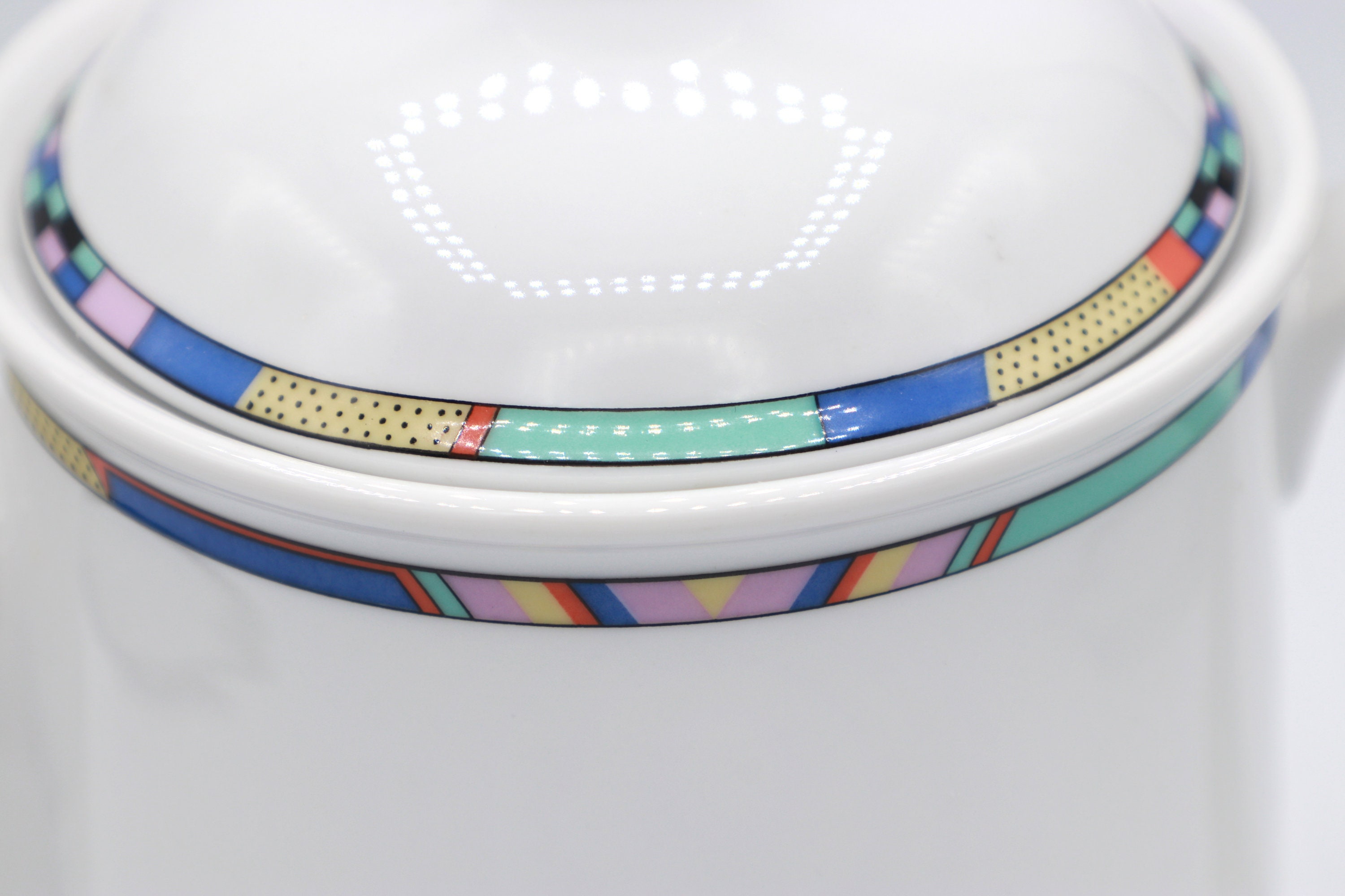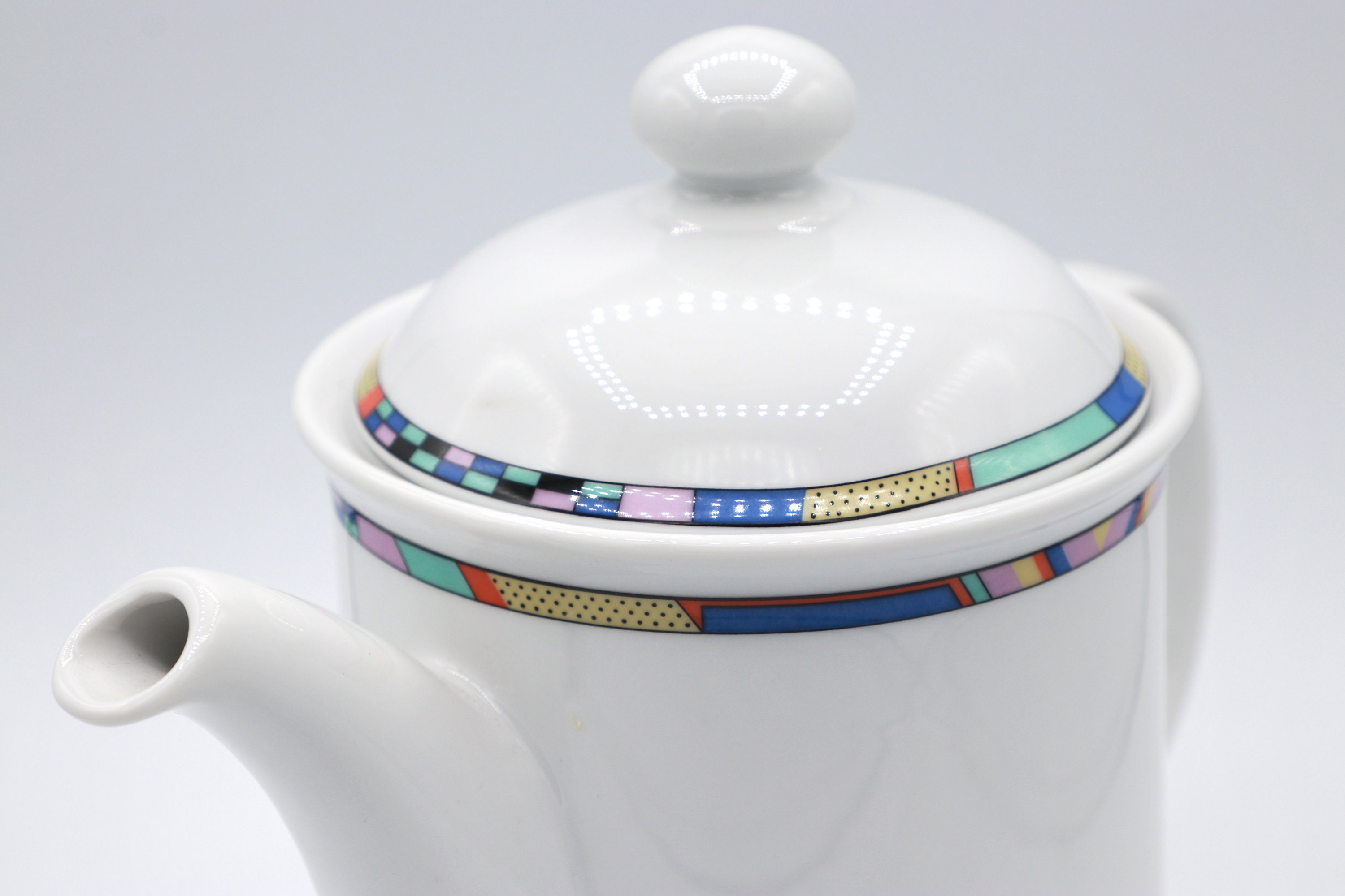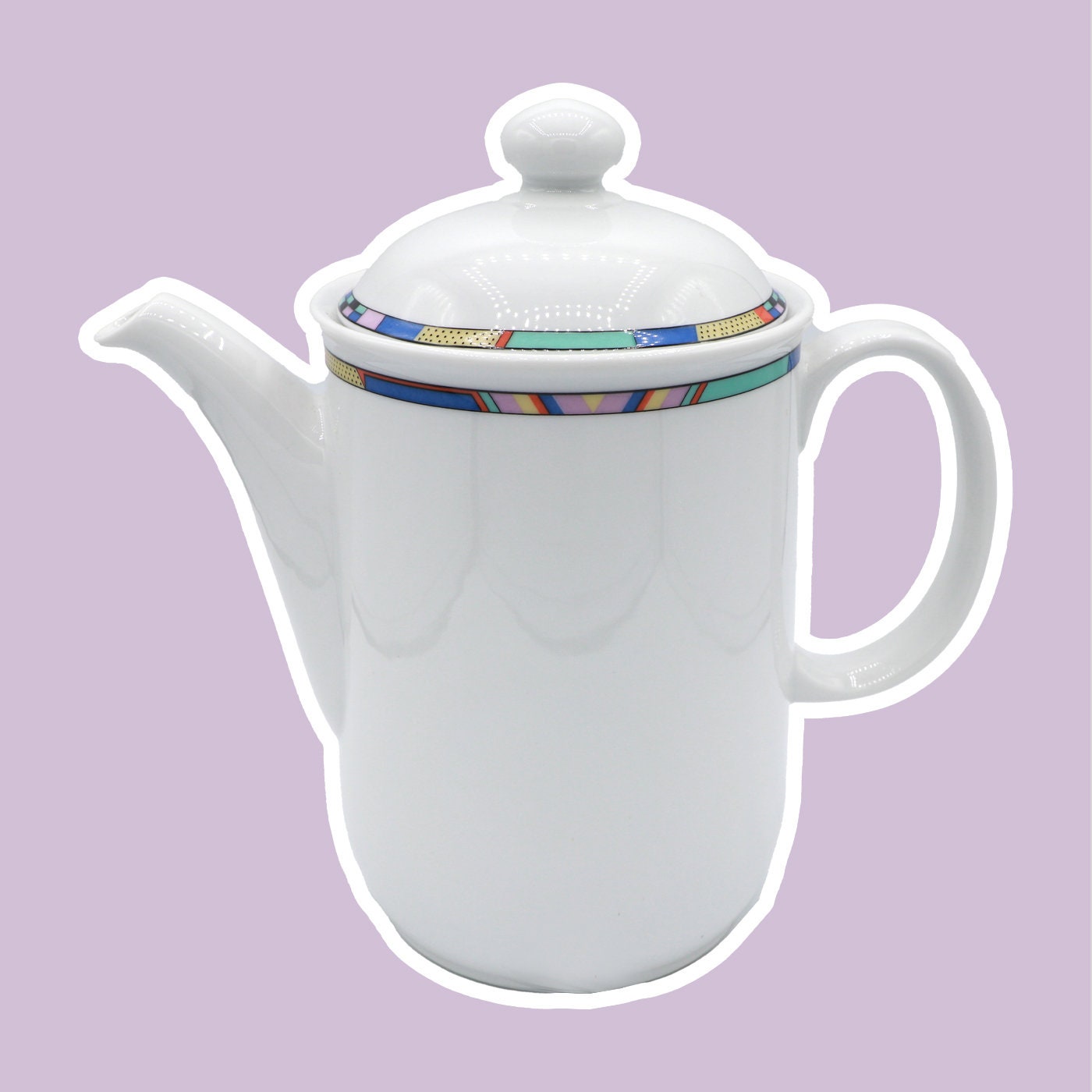 Vintage Postmodern Tea Pot Seltmann Weiden Portofino 80s 90s Memphis Milano White Ceramic Porcelain Geometric Pastel Germany