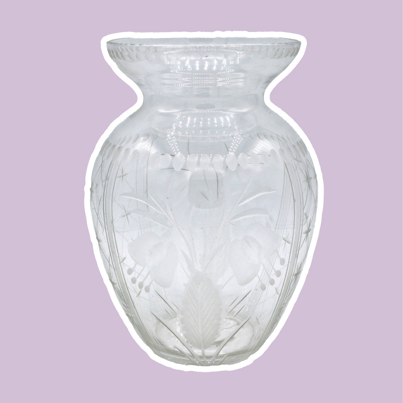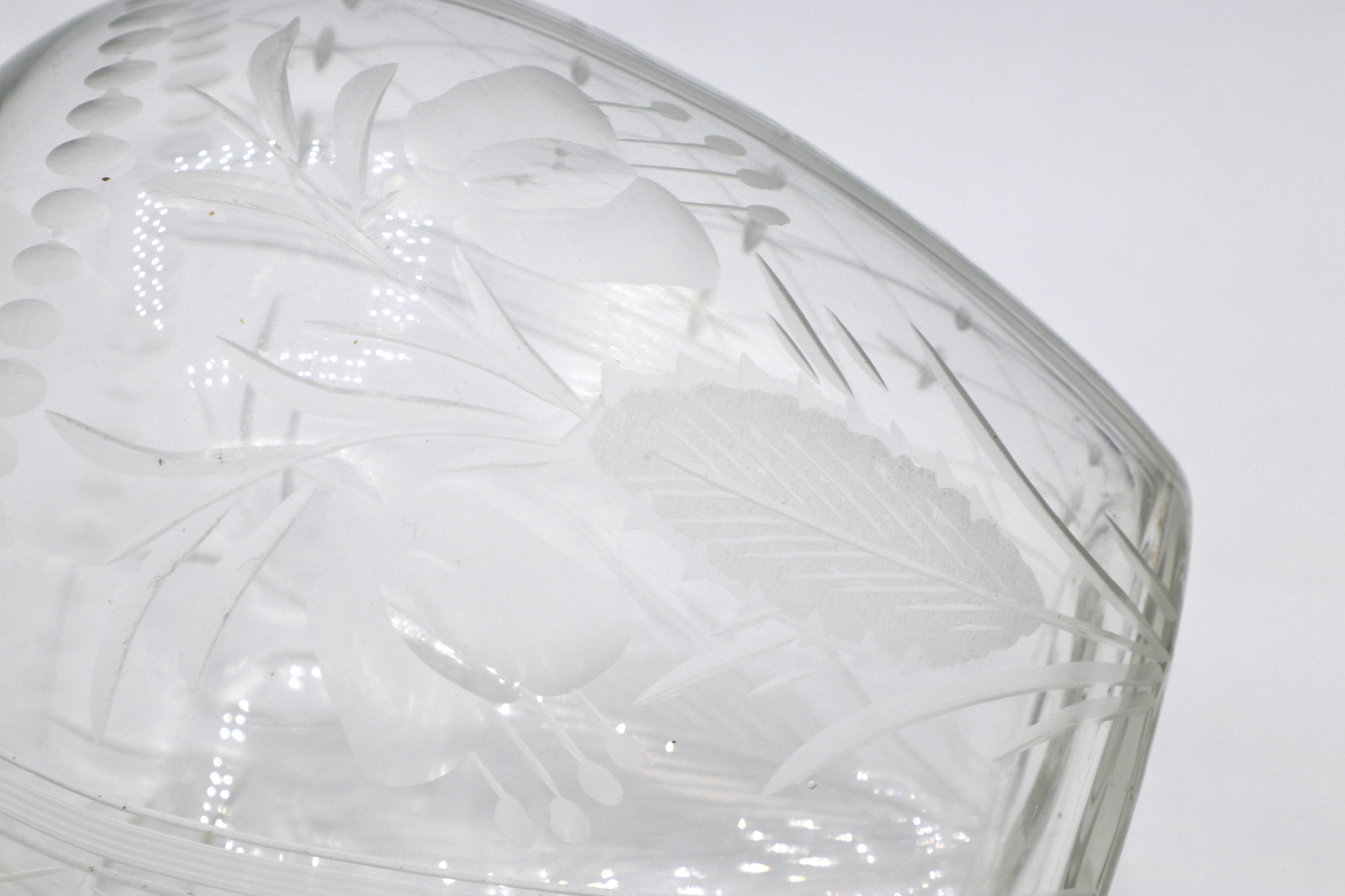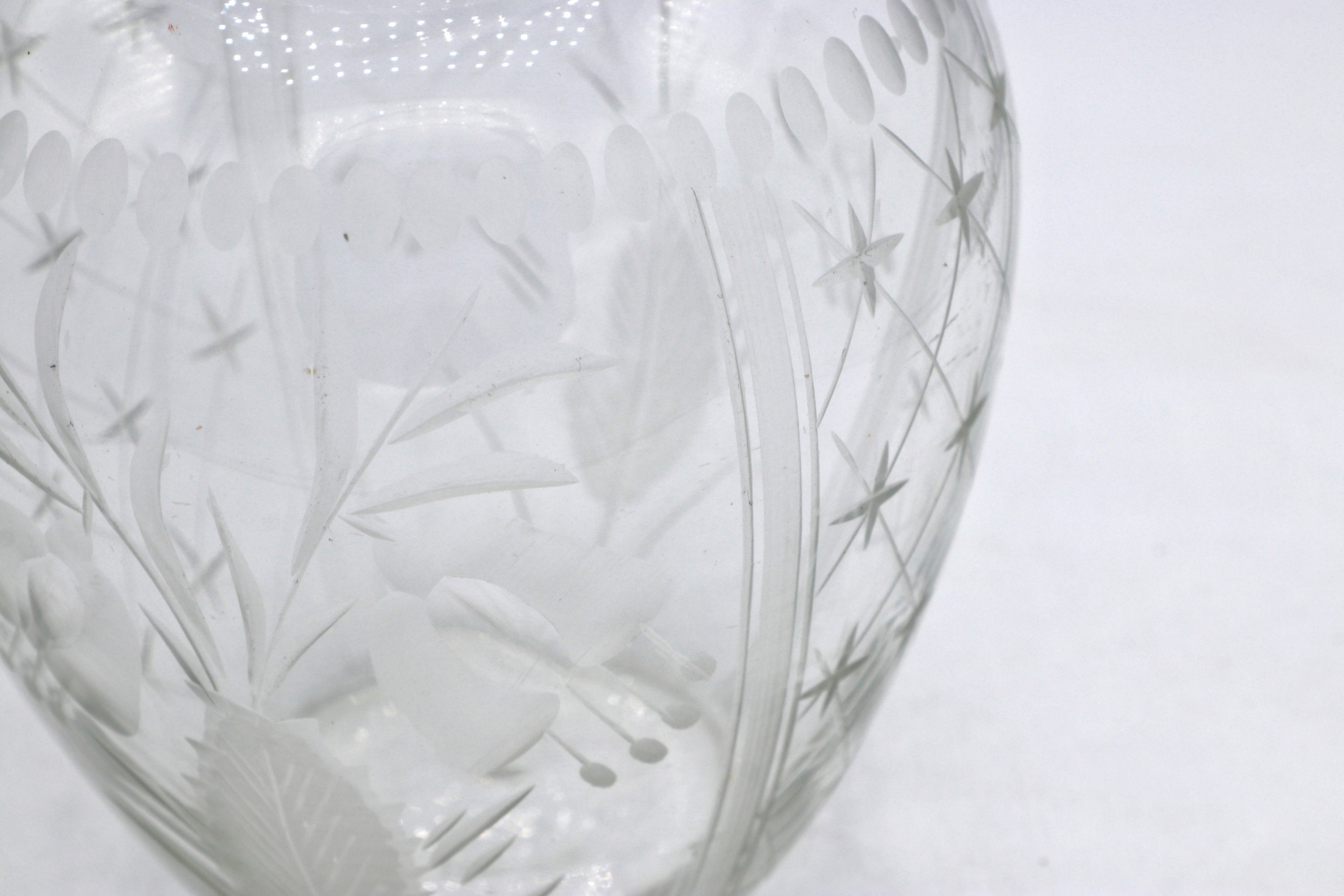 Vintage Art Deco 1920 1930 flower vase goblet crystal cut floral dots glass lines goblet stripes hand-blown cut 30s 20s