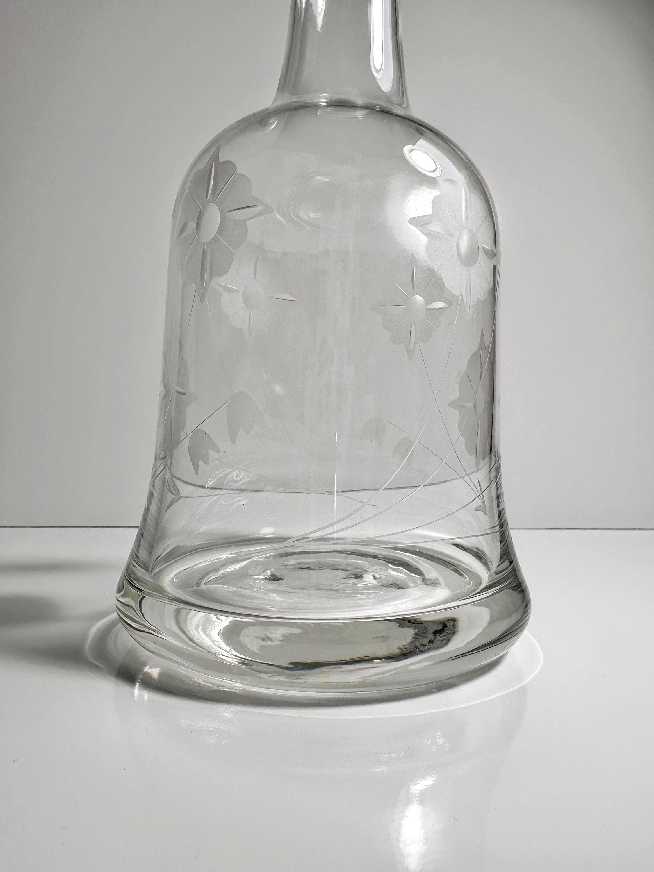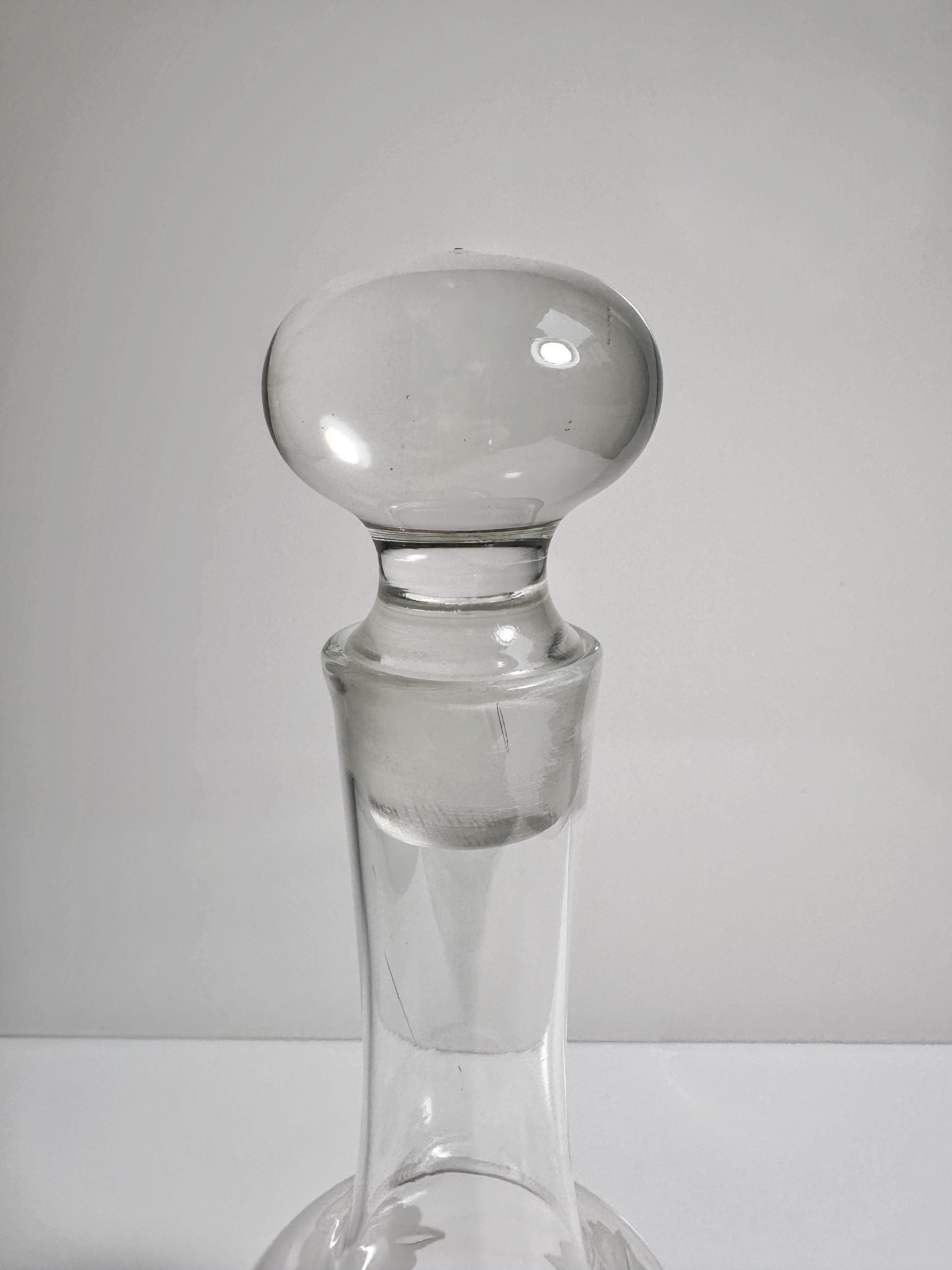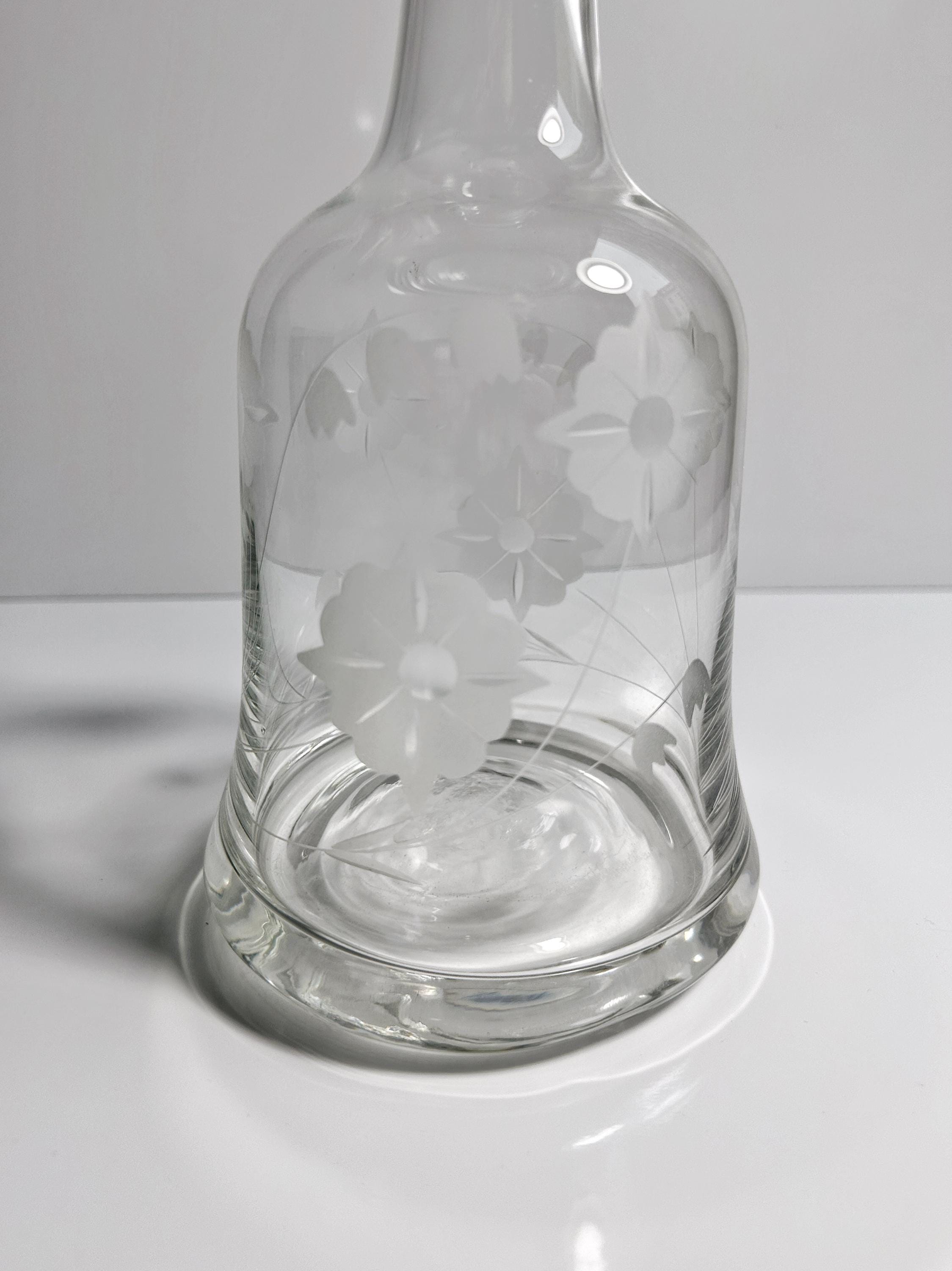 Vintage Art Deco Decanter Carafe Lily of the Valley Flowers 1930 20s 30s Glass Cut Polished