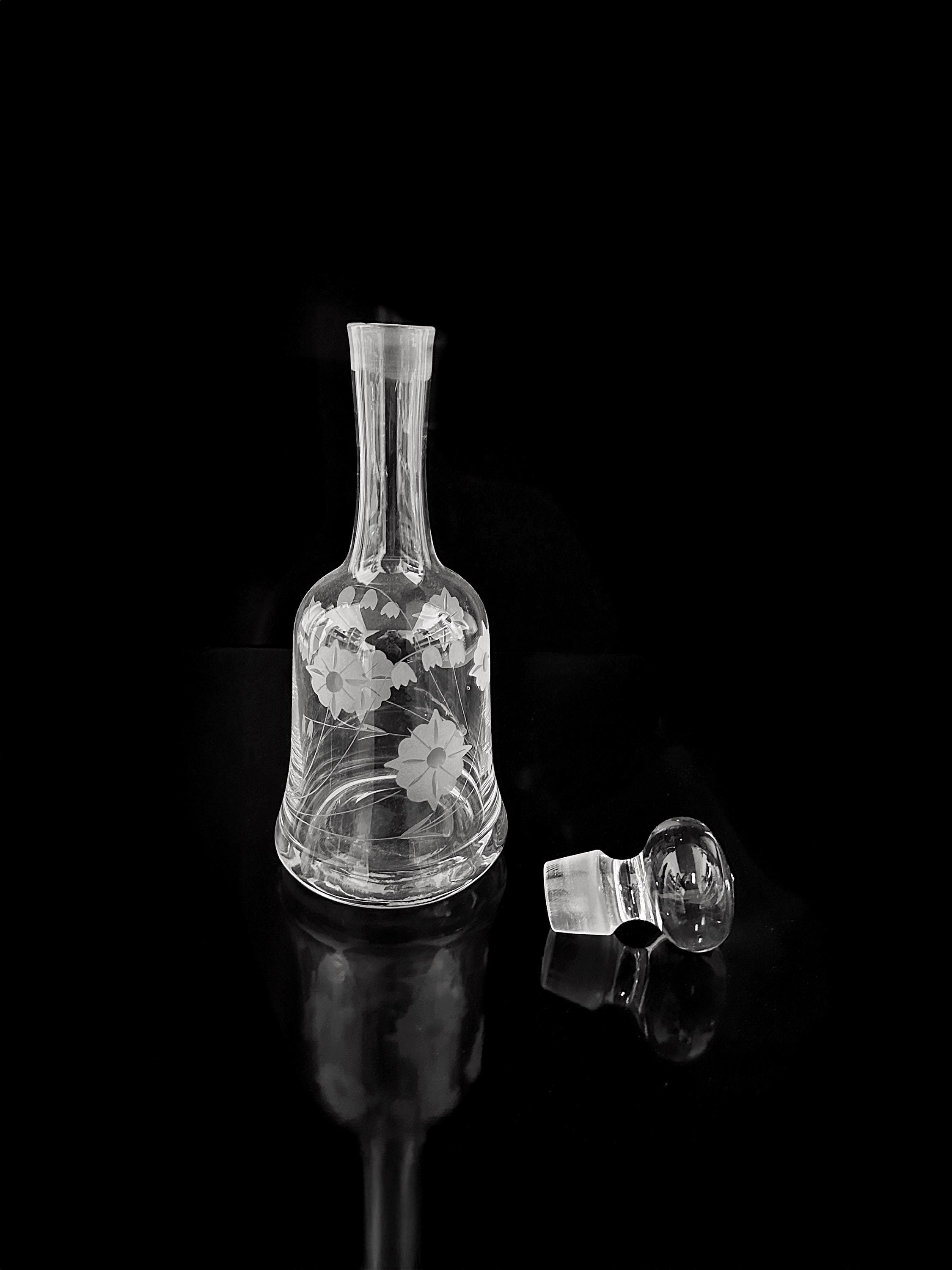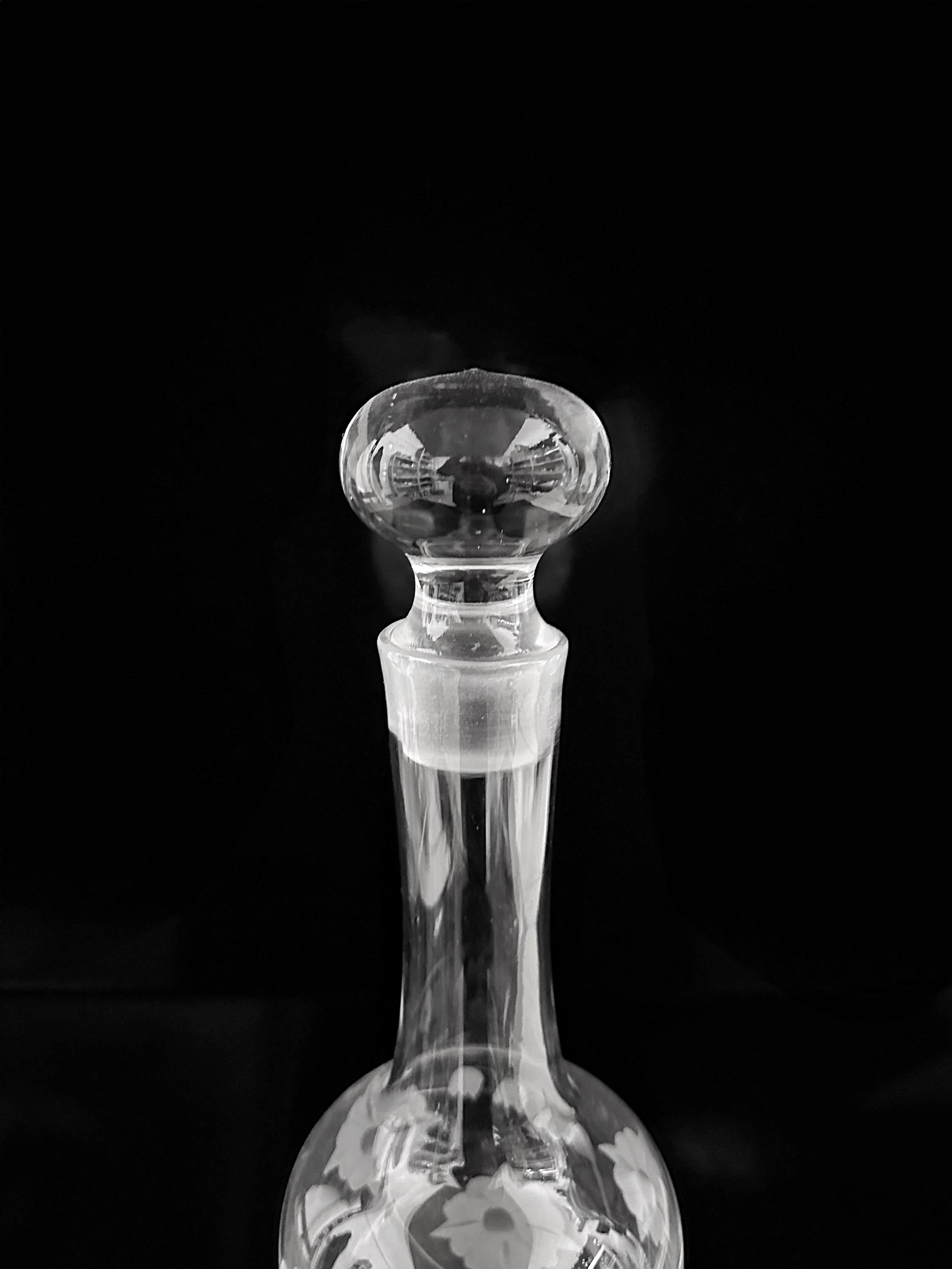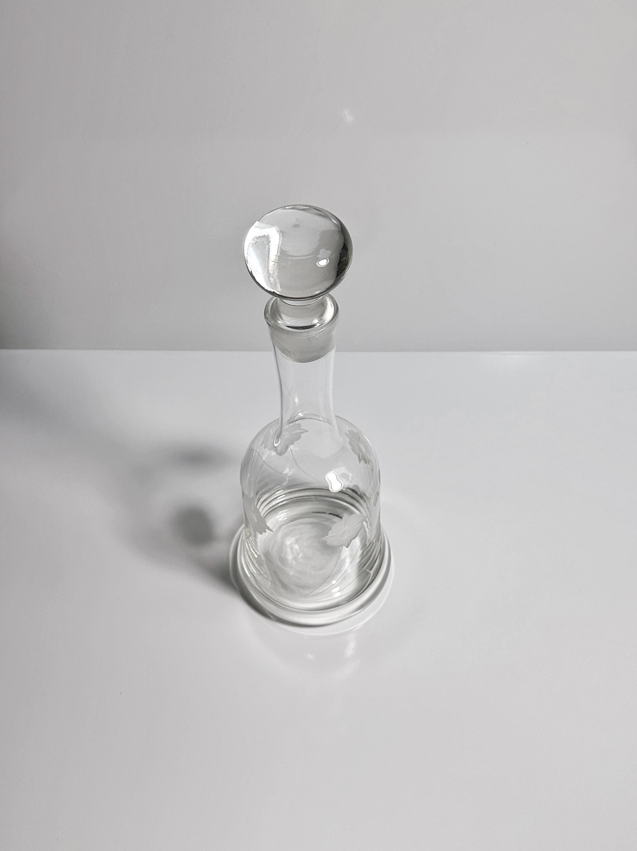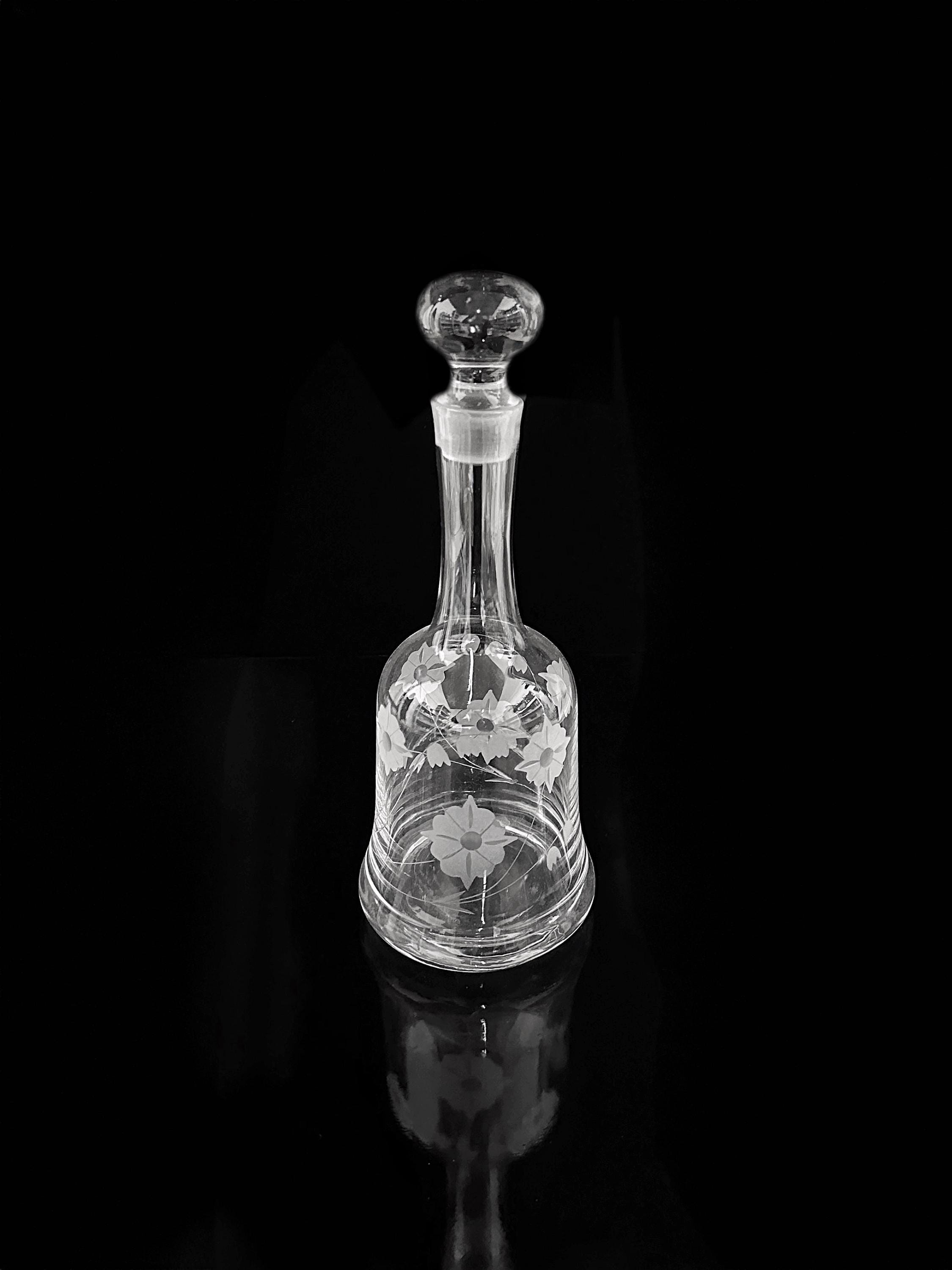 Vintage Art Deco Decanter Carafe Lily of the Valley Flowers 1930 20s 30s Glass Cut Polished