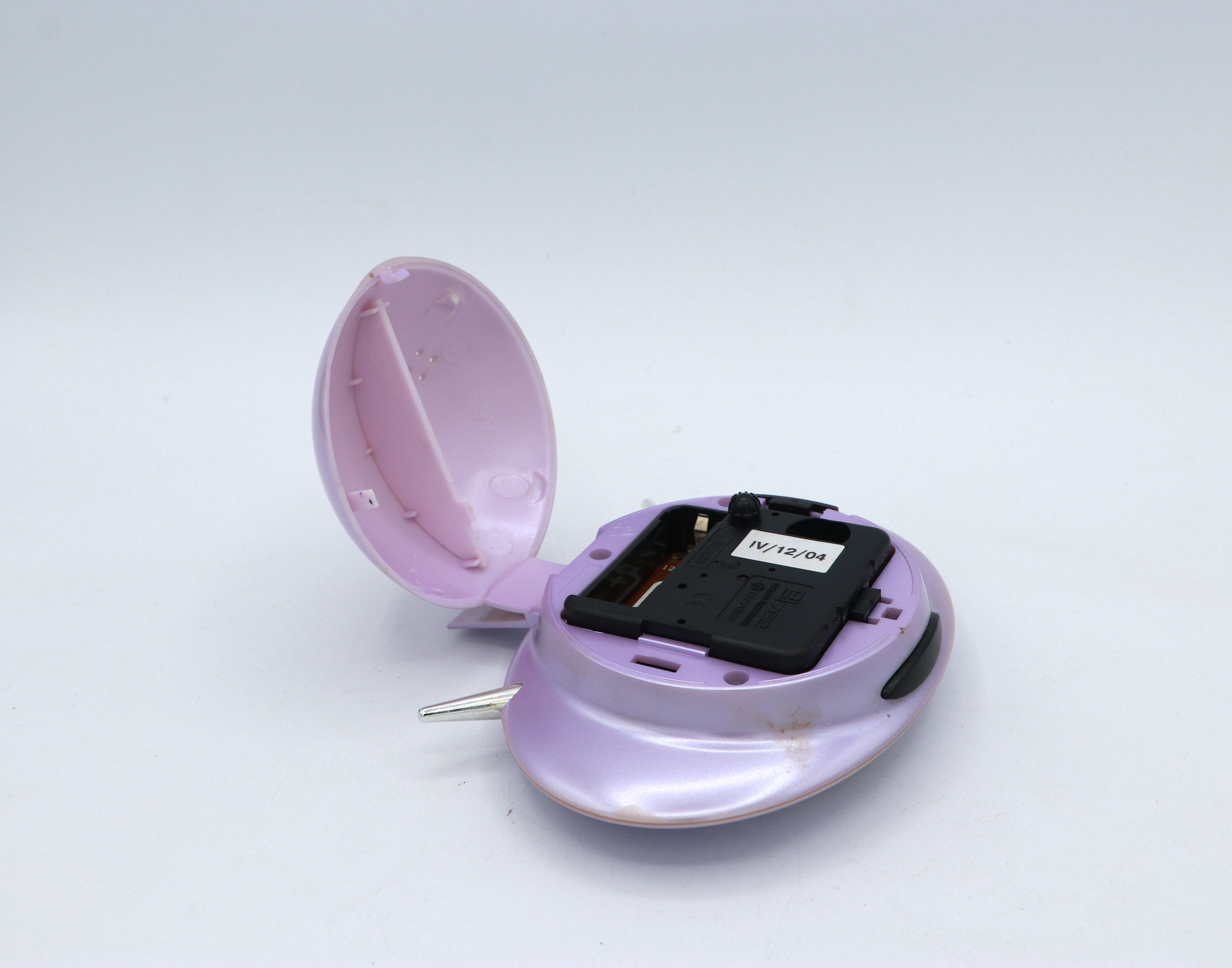 Beautiful table clock from the 1980s in postmodern style. Lilac metallic colors