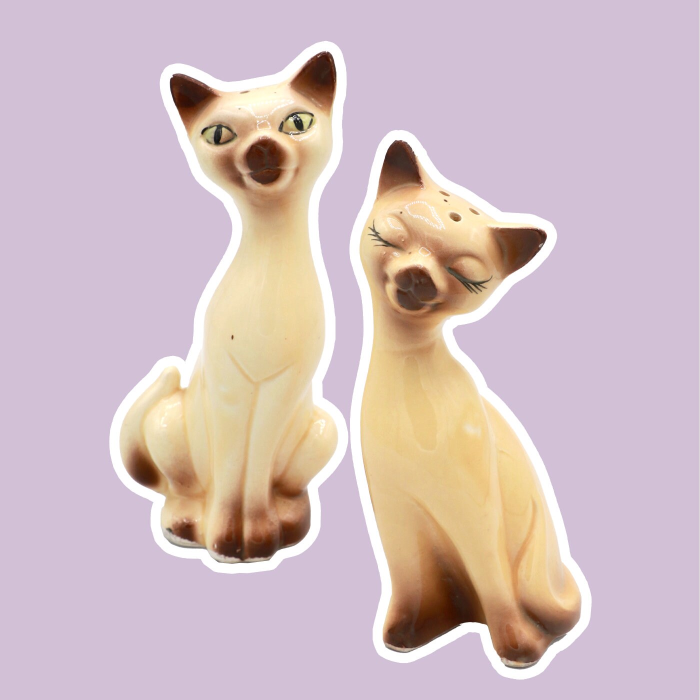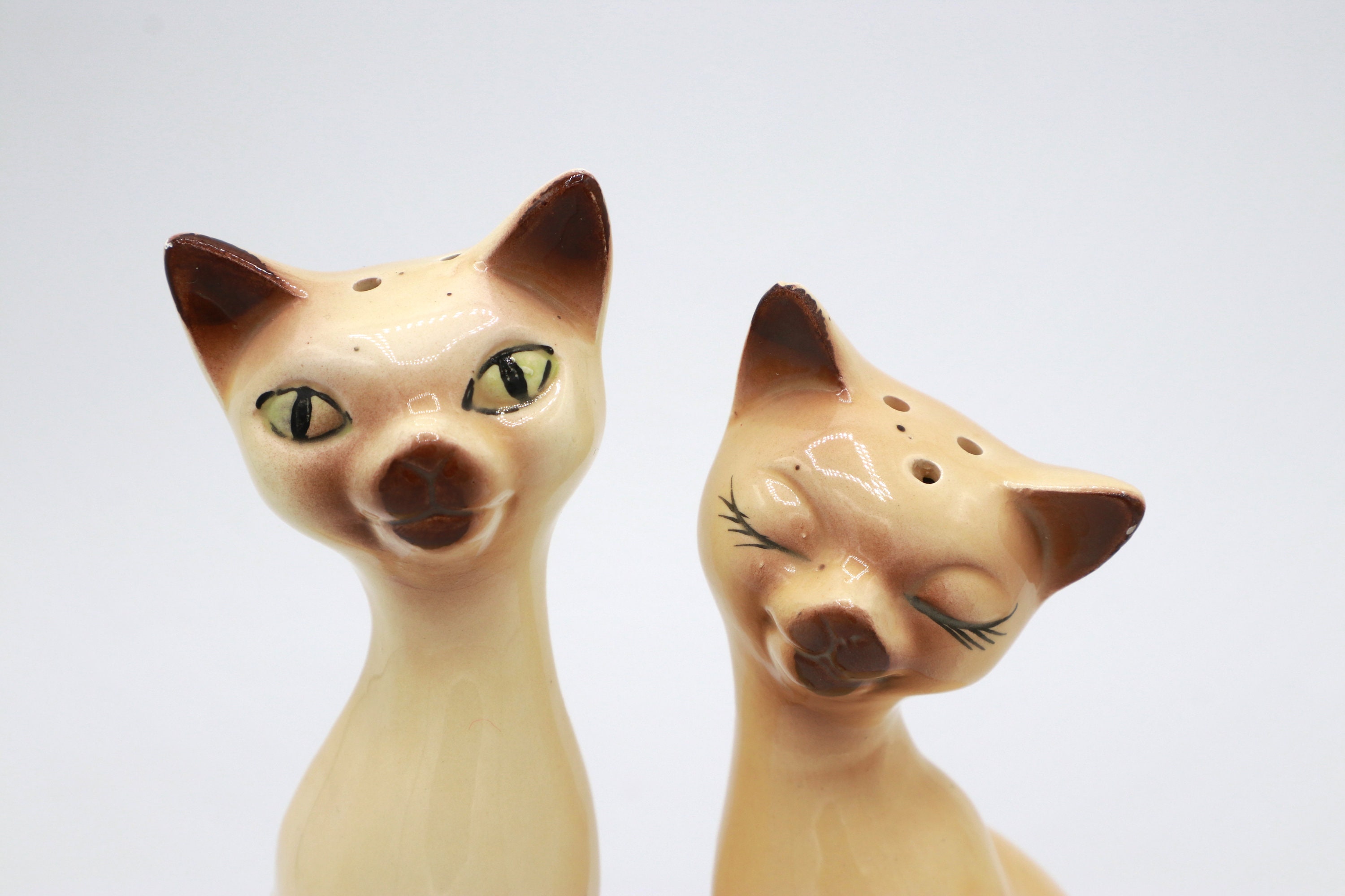Vintage Pair Salt Pepper Shakers Cat 50s 1950s Mid Century Ceramic Holt Howard Siamese Hand Painted