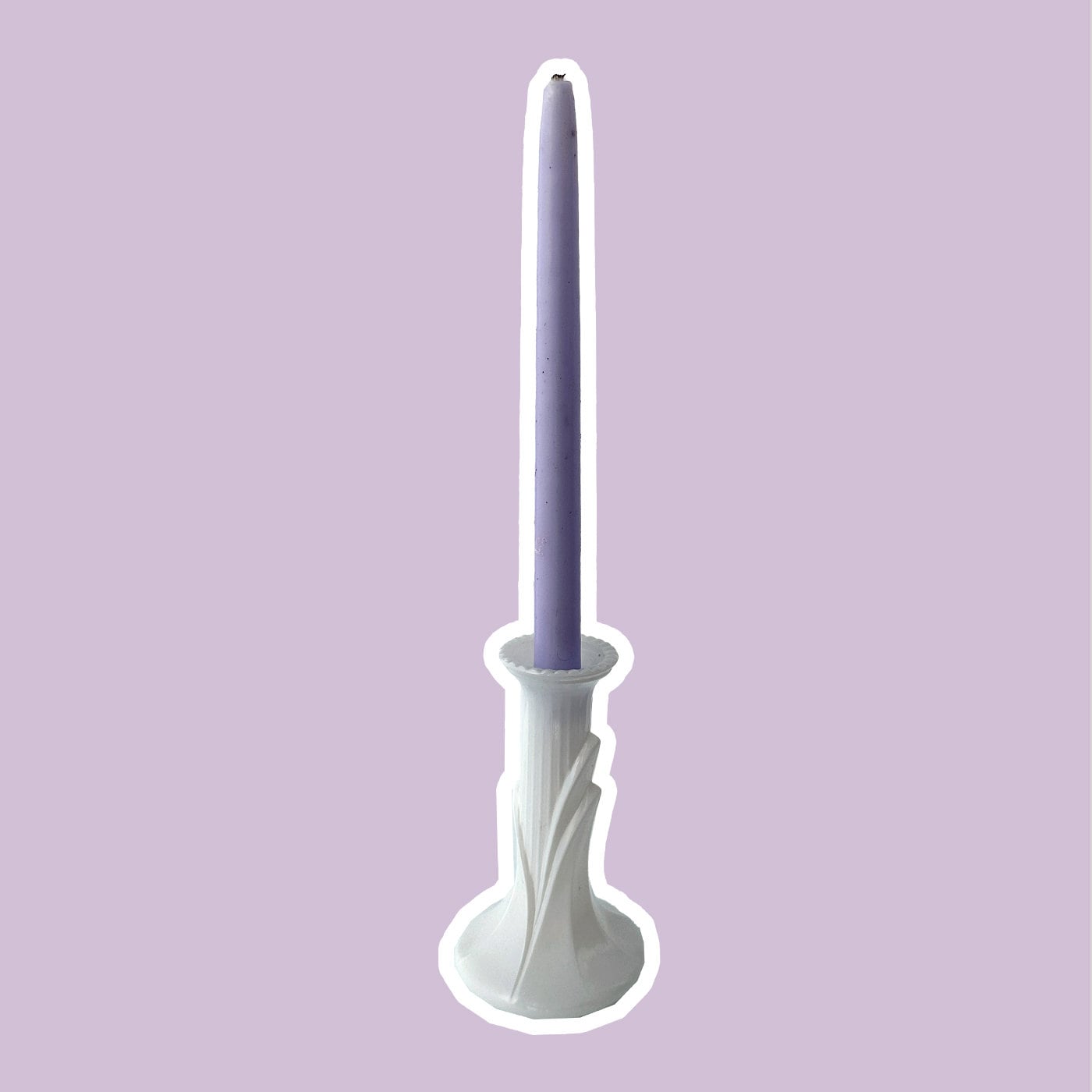 Vintage Art Deco Revival Glass Candlestick Candlestick Candle Holder 80s 1980 80s Floral Matt Satin Frosted White
