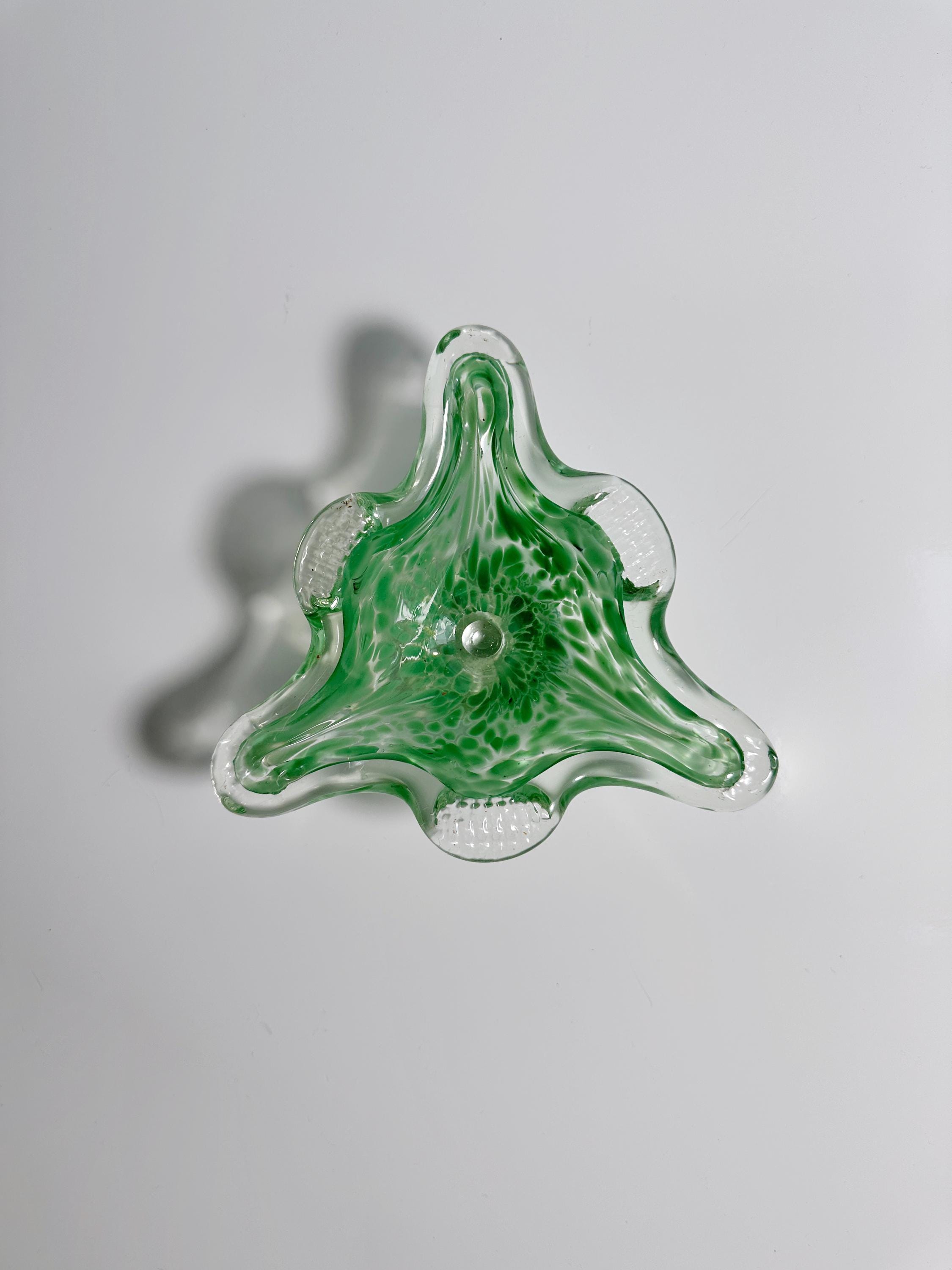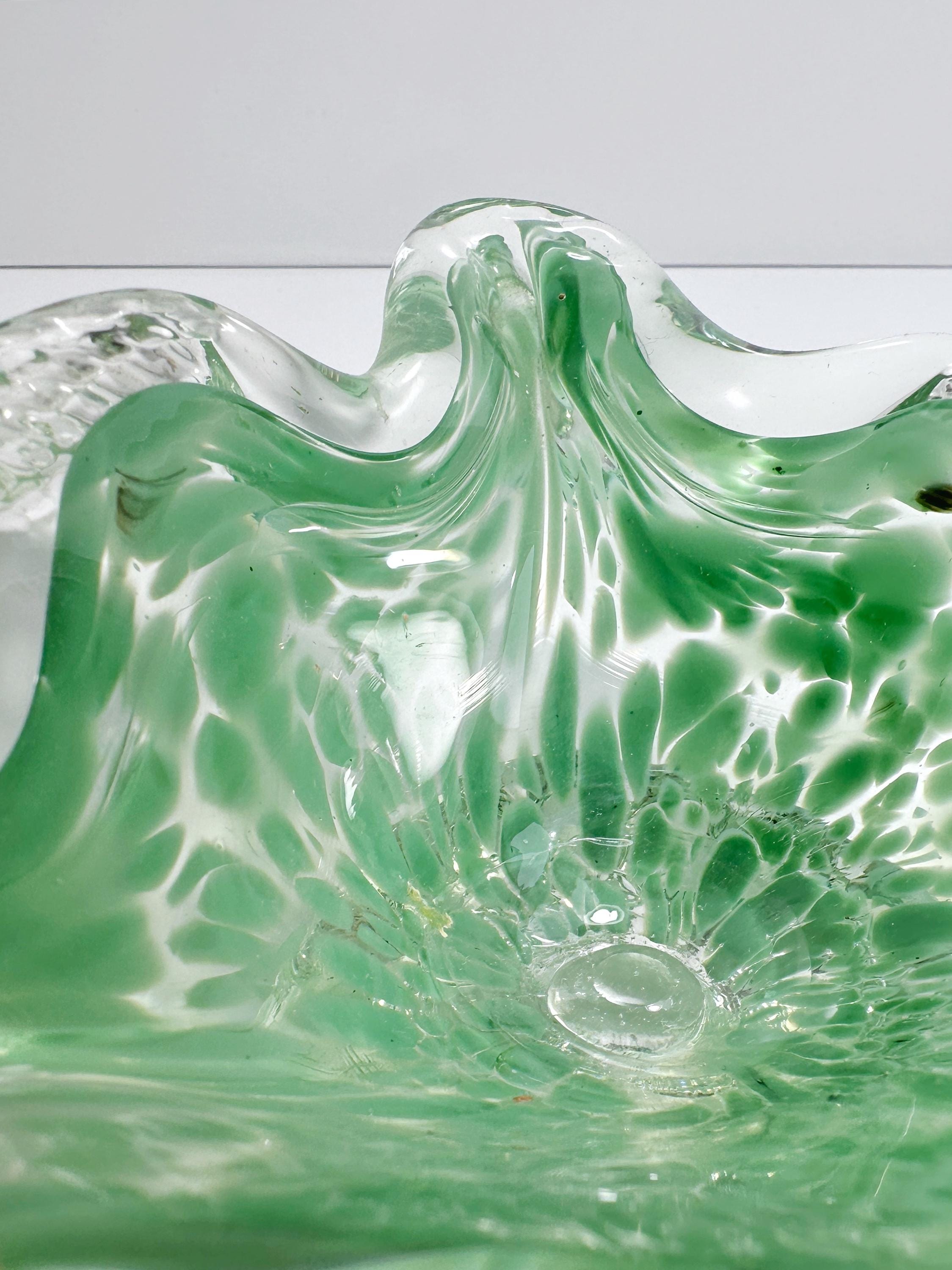 Beautiful Murano bowl/ashtray from the 1970s. Pastel green speckled glass combined with transparent glass to form a beautiful triangular shape. Beautiful model.