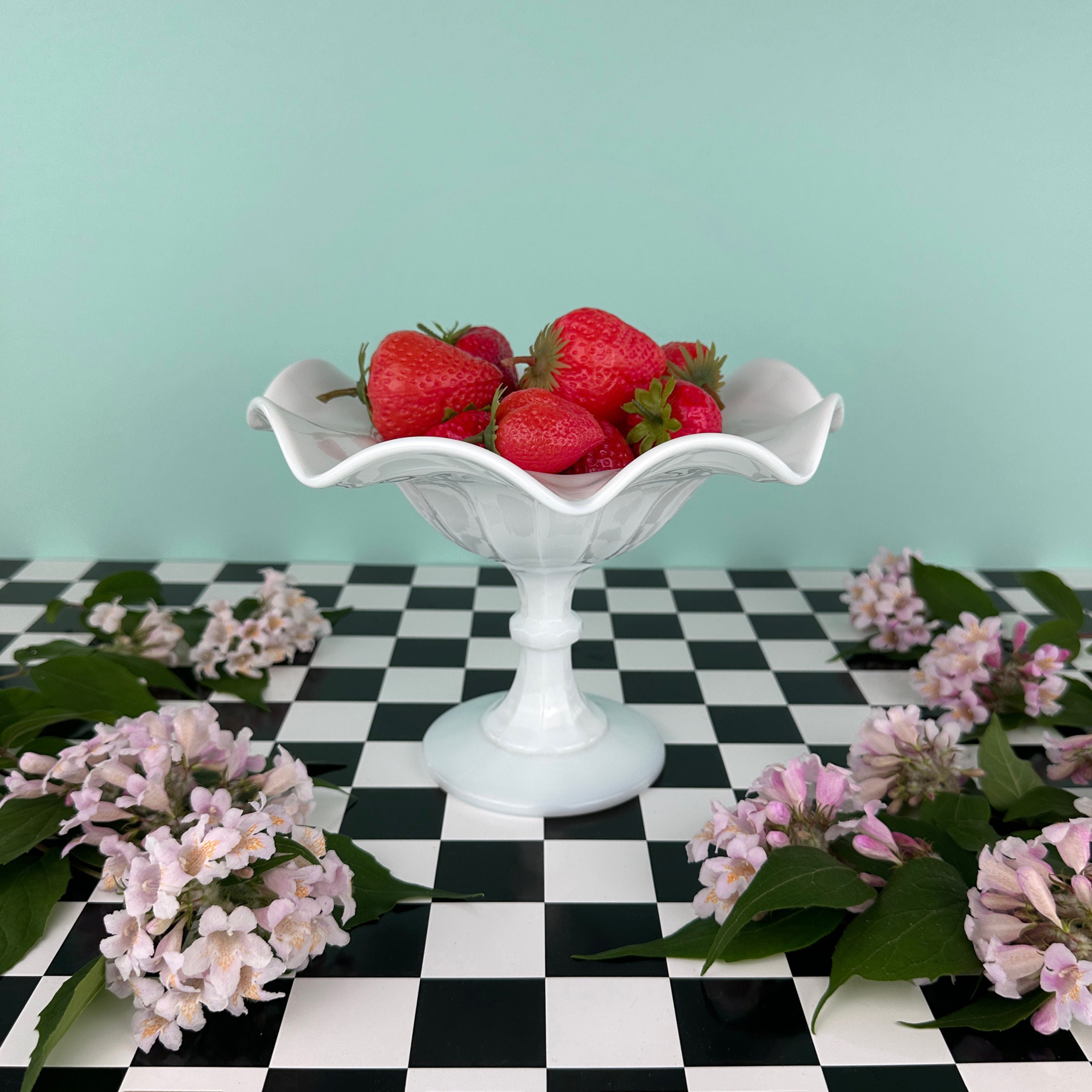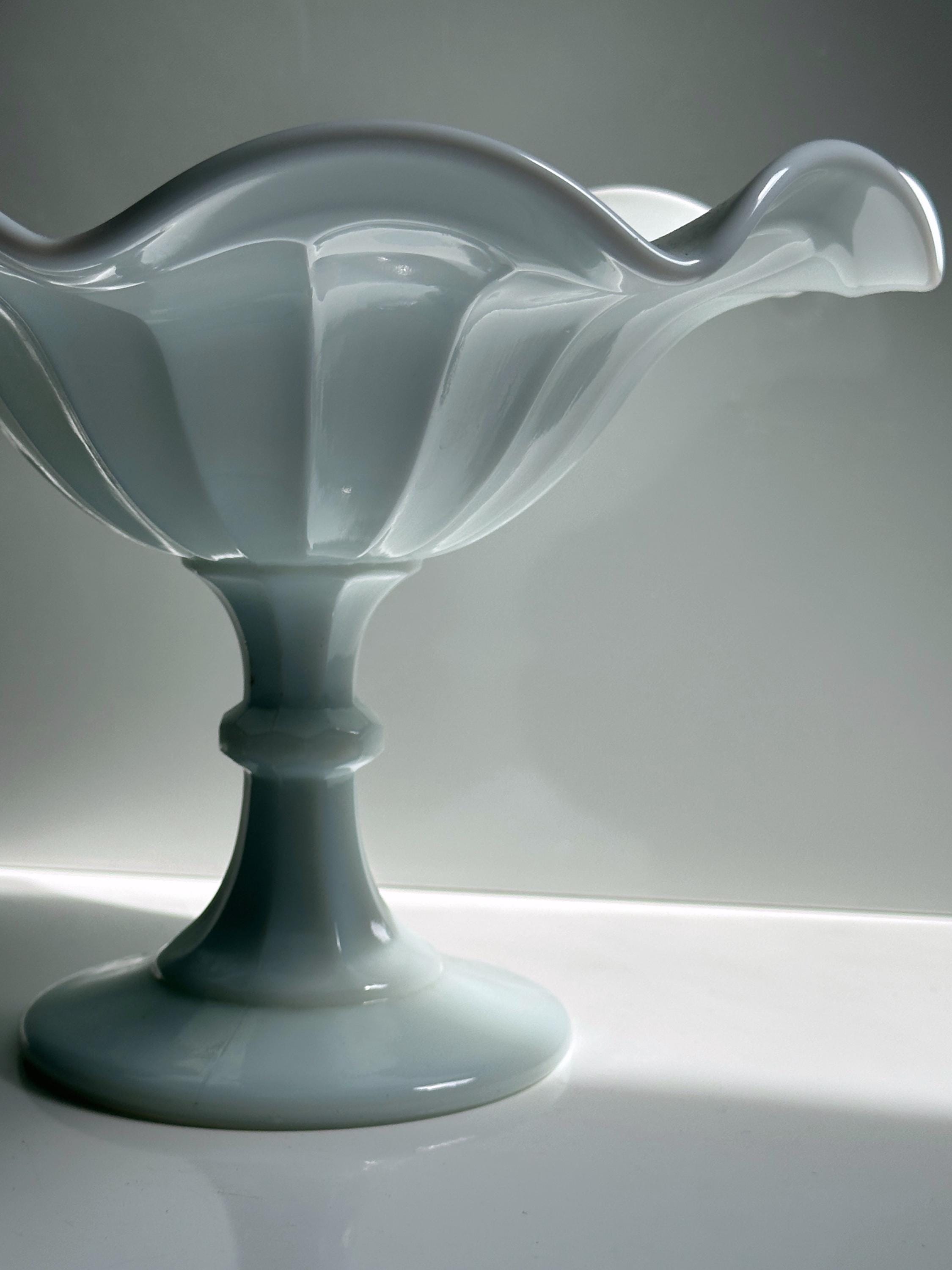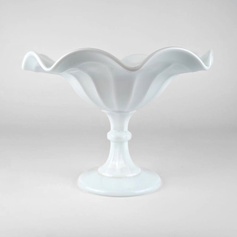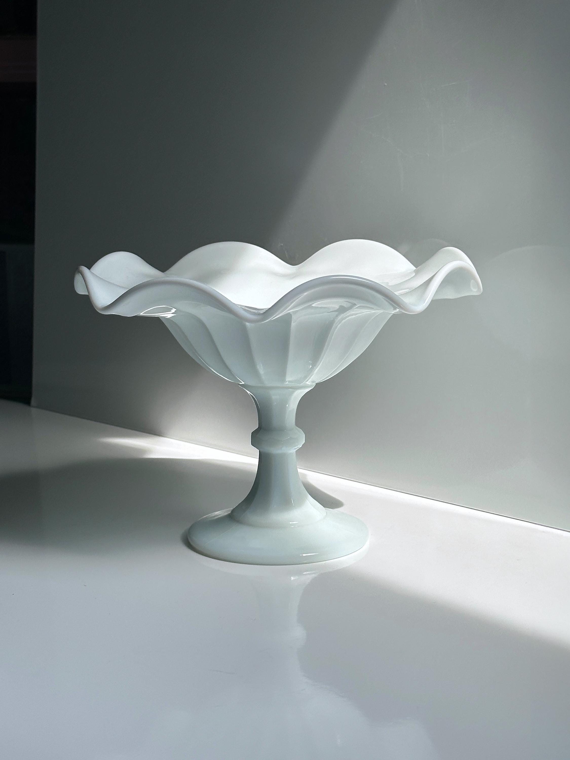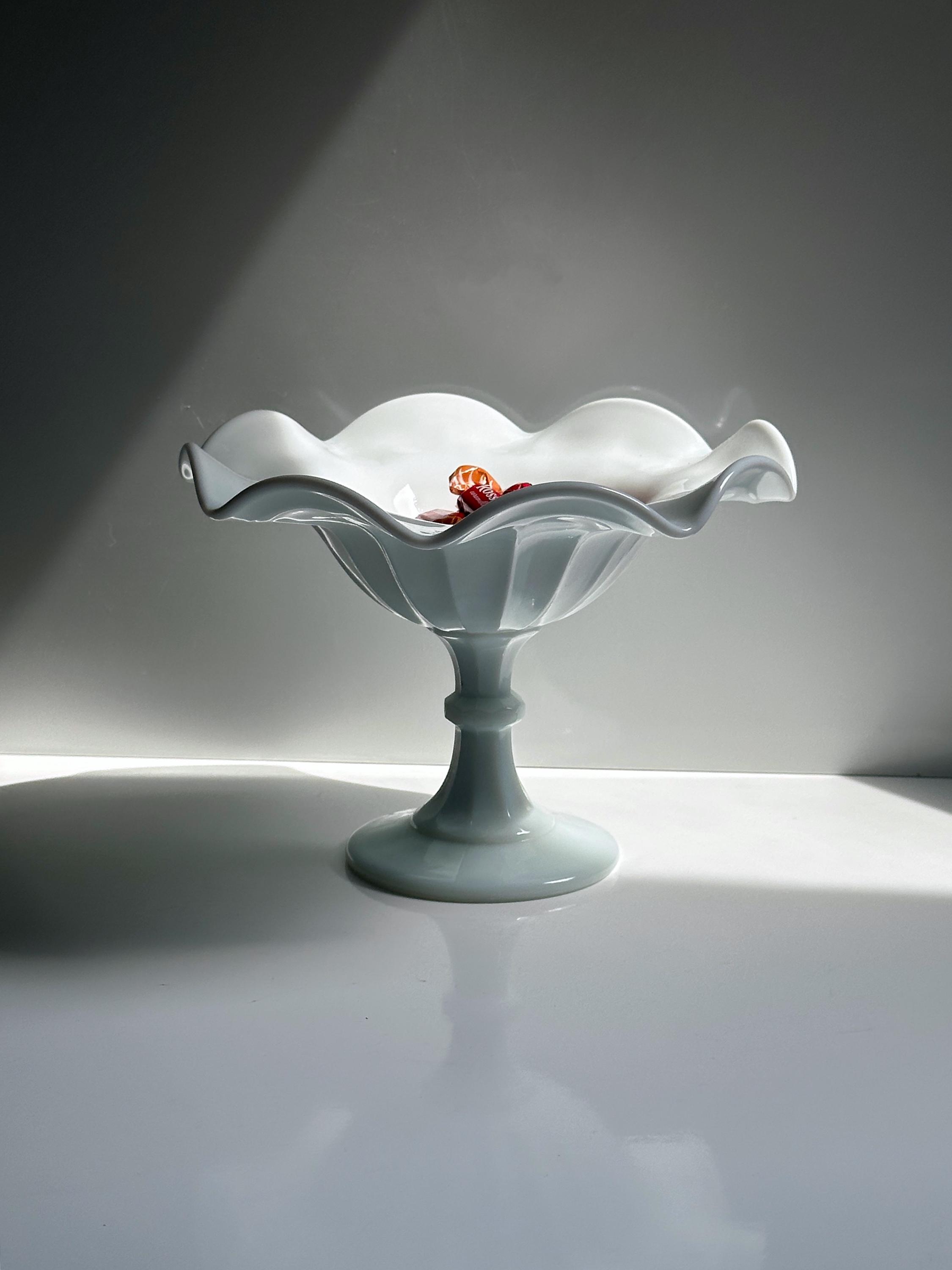 Vintage Opaline Glass Footed Bowl Bonbonniere Opal Glass Wave Edge Fruit Bowl White Italy