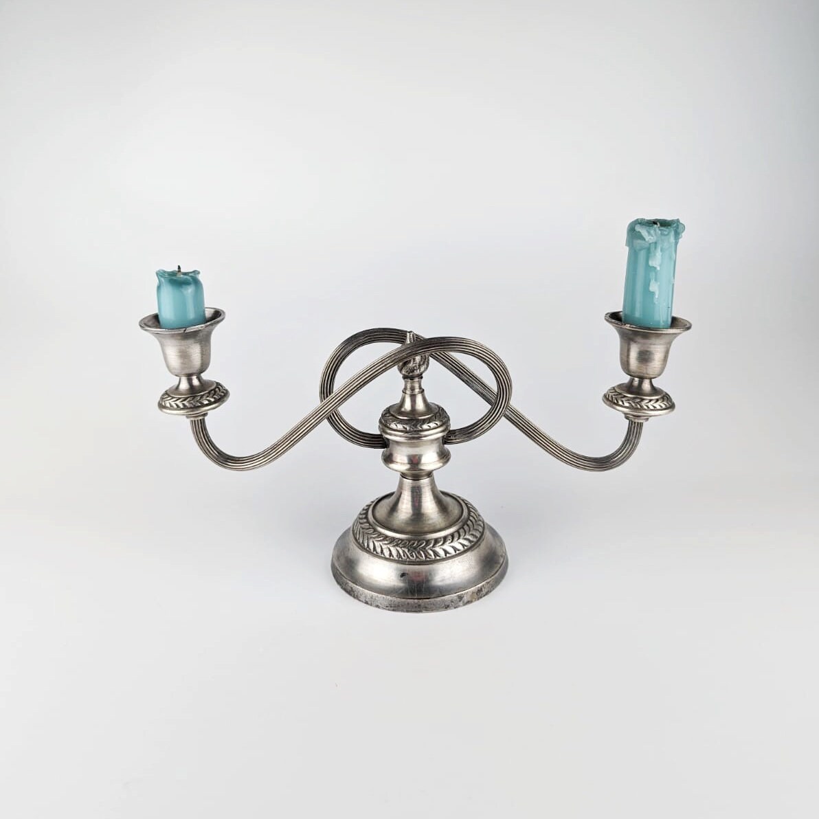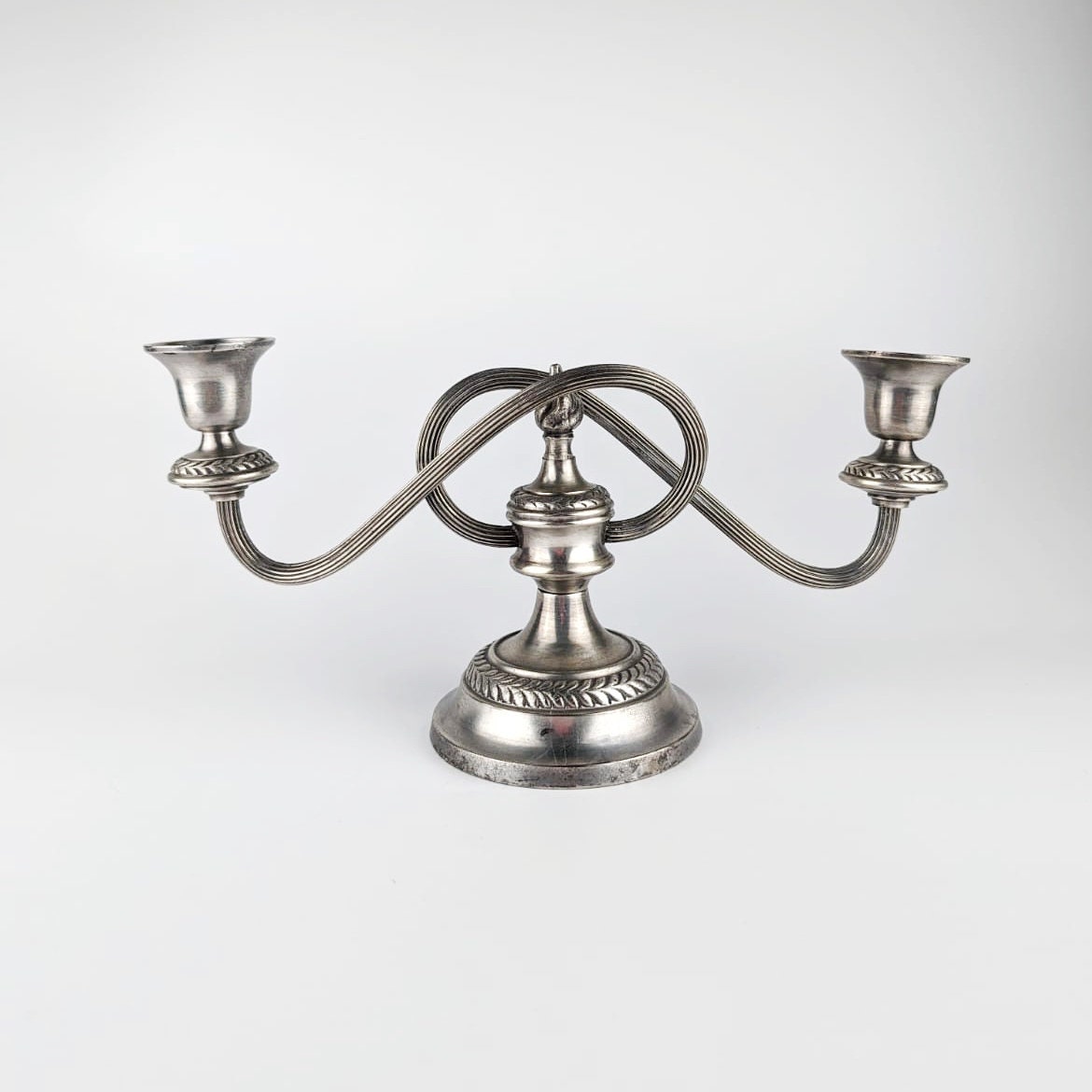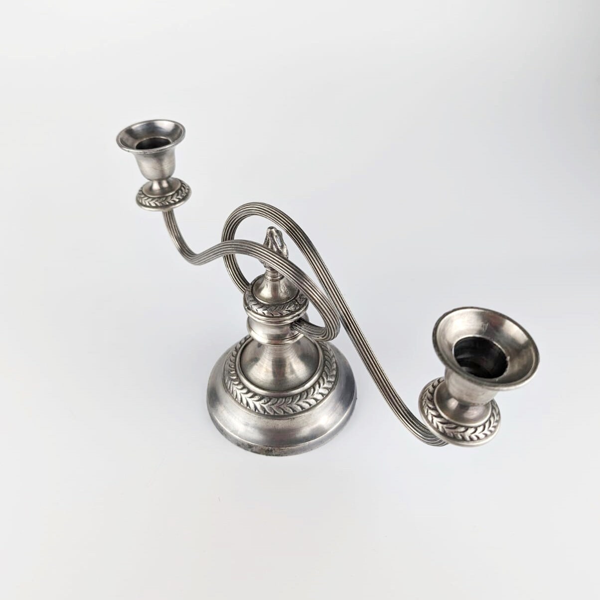 Set of 3 candle holders England vintage candles candlestick curved swirl metal silver plated