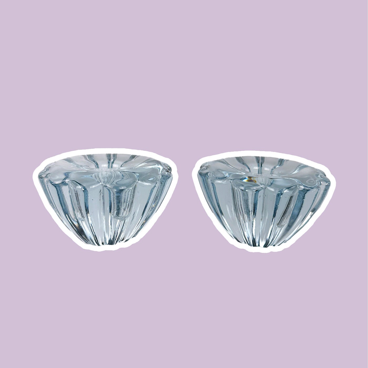 2 Very beautiful crystal glass candle holders from Offefors Sweden, designed by Sven Palmquist.