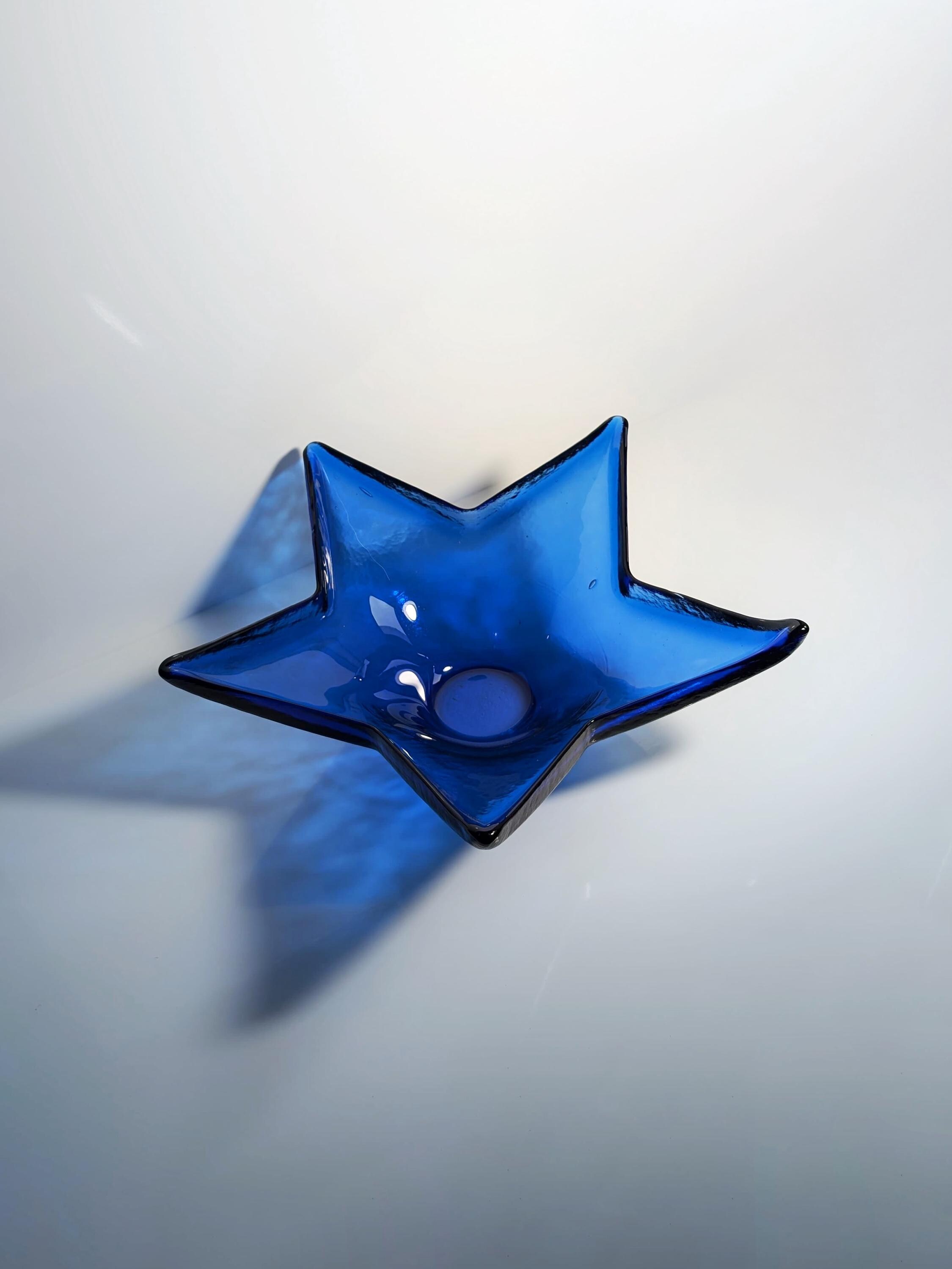 A beautiful star-shaped bowl made of cobalt blue glass. Circa 1980/1990, probably from France.