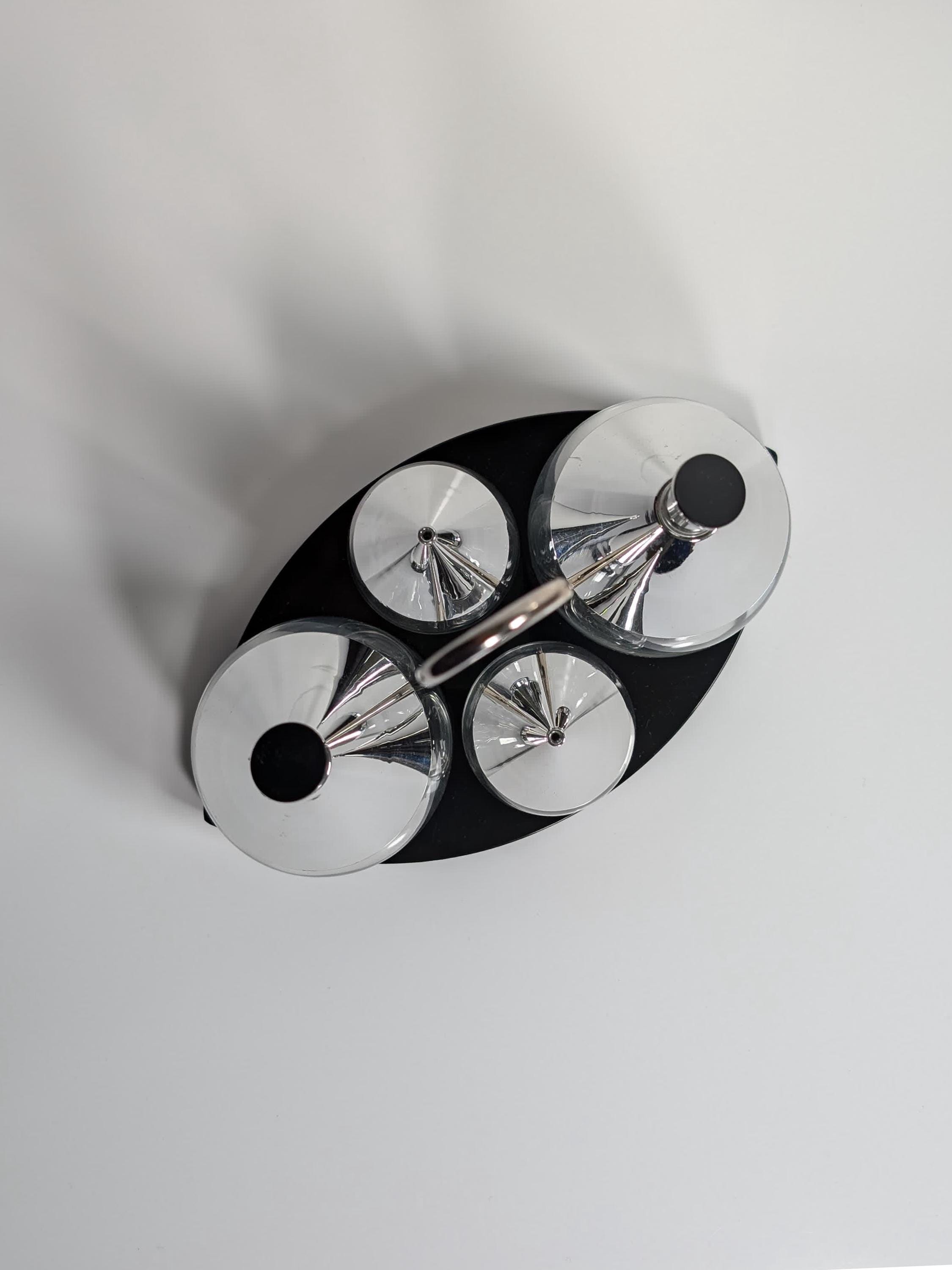 Vintage BMF Cruet 80s Postmodern - Oil, Vinegar, Salt Condiment Set Chrome Metal Glass 80s 1980