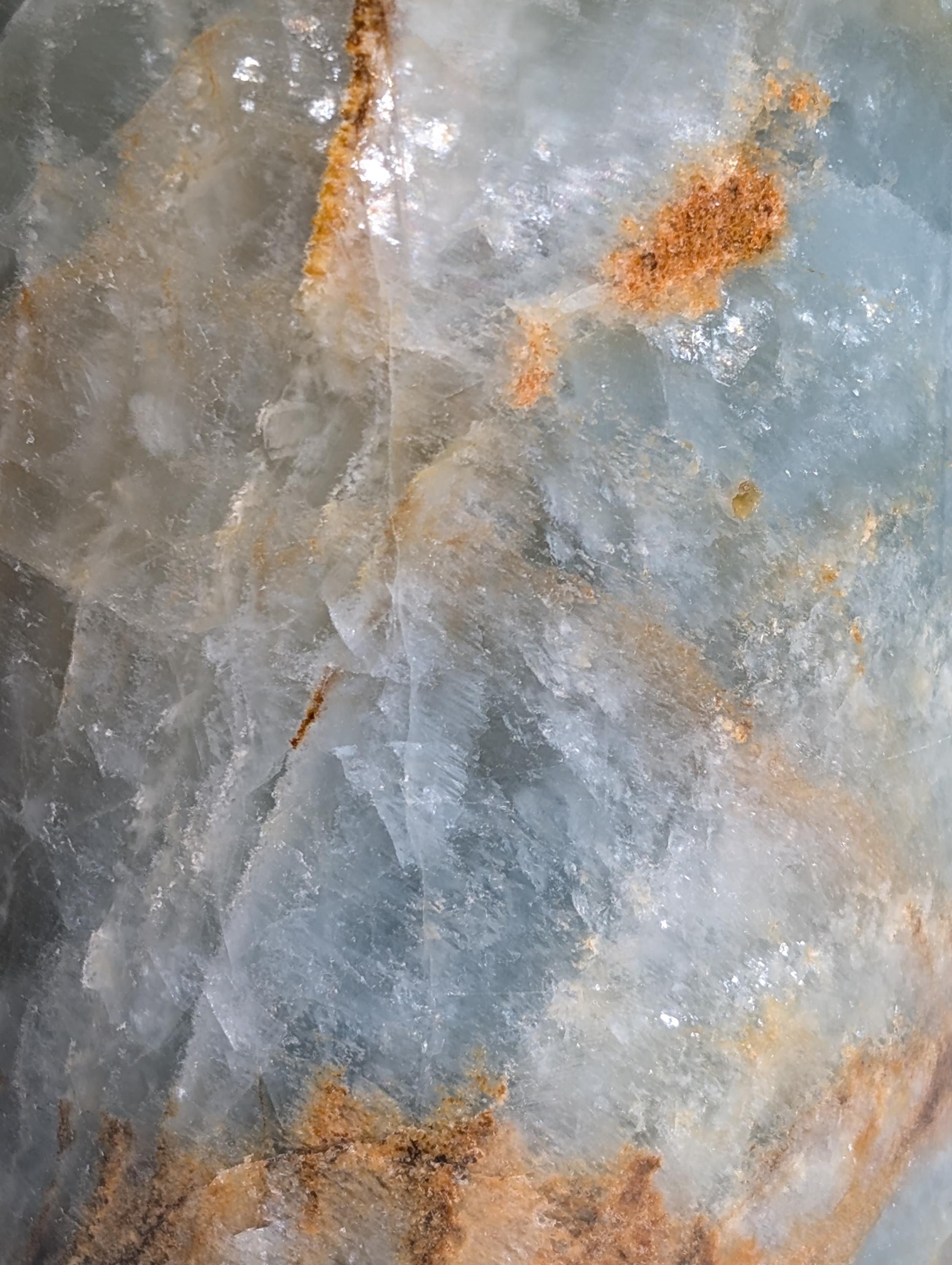 Mint green colored marble/natural stone with beige colored inclusions. Very nice workmanship.