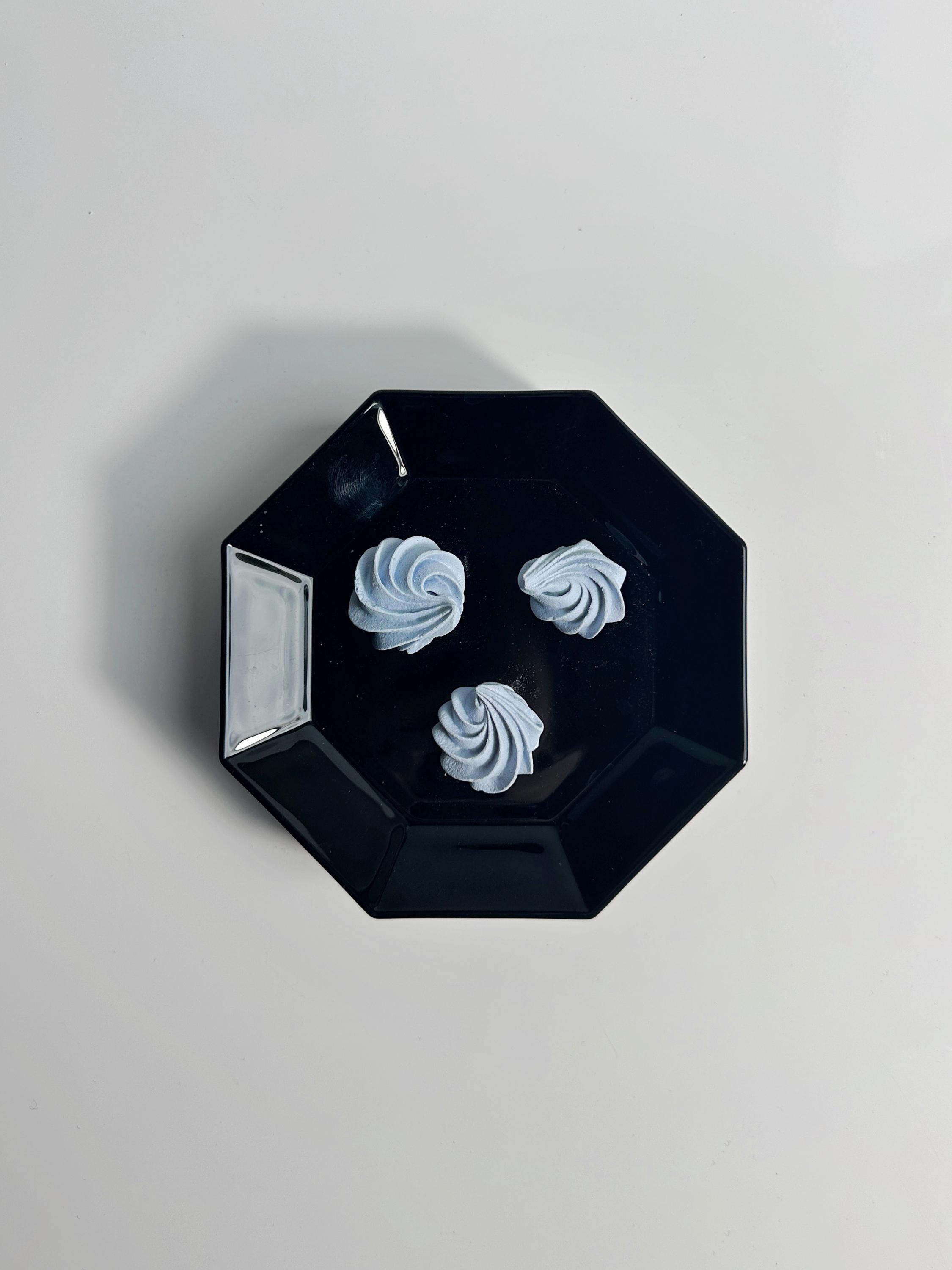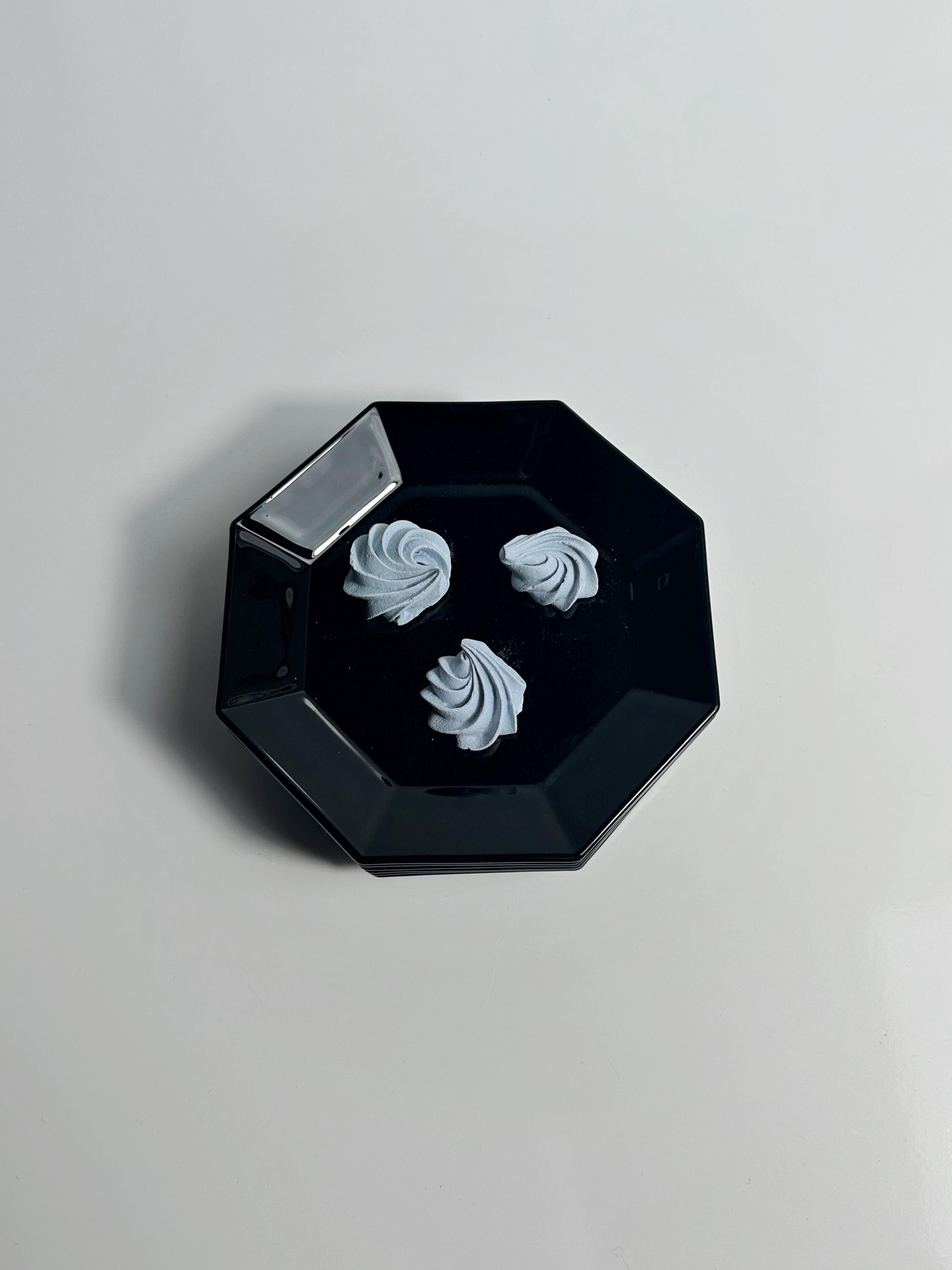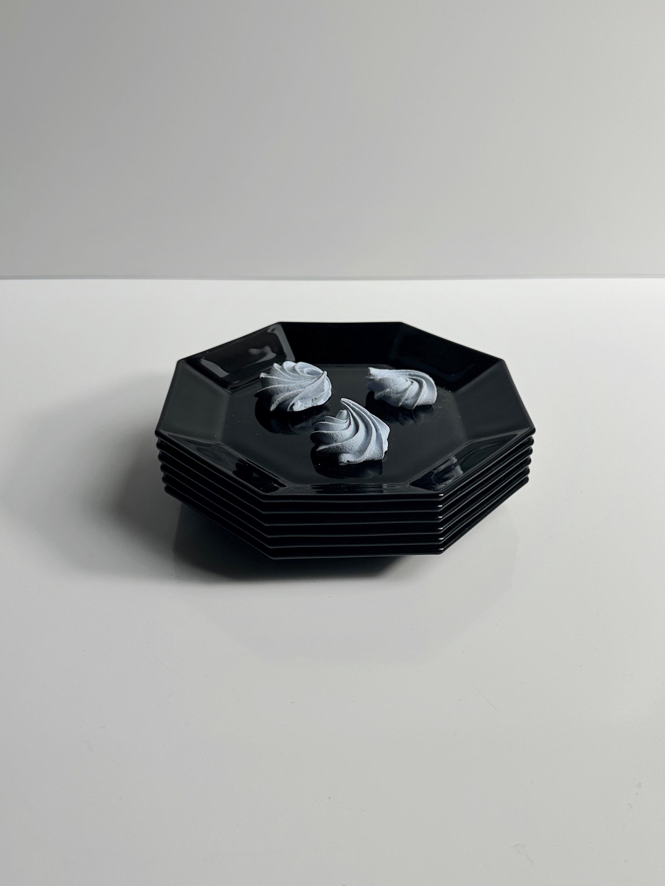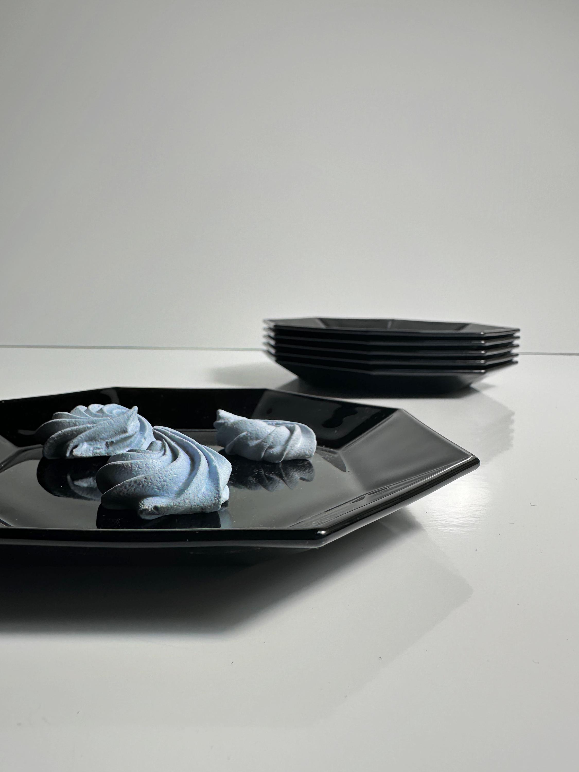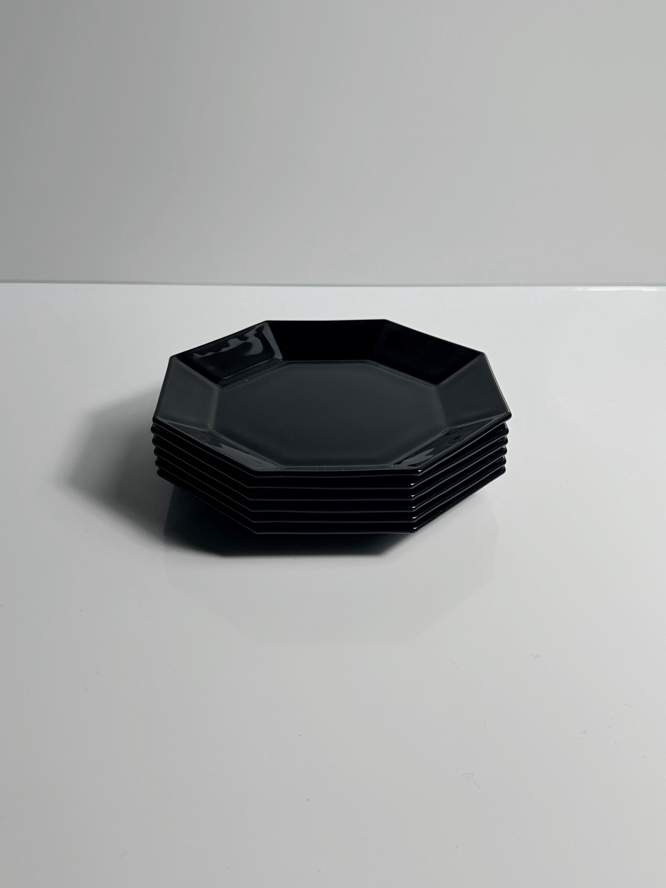 6 beautiful black DESSERT plates from the late 1980s on Arcoroc France from the world-famous Octime series. Octagonal design in Art Deco Revival style.