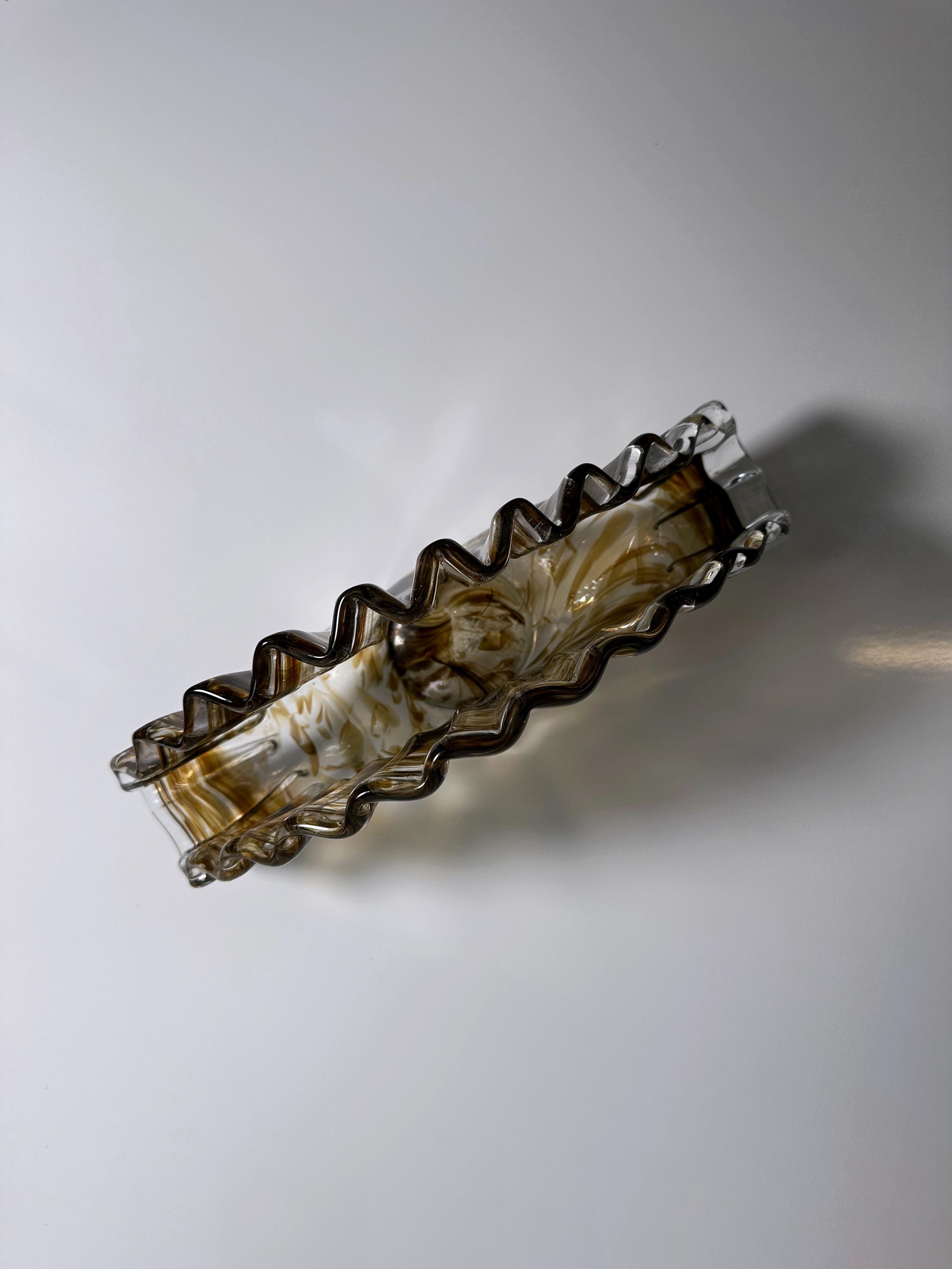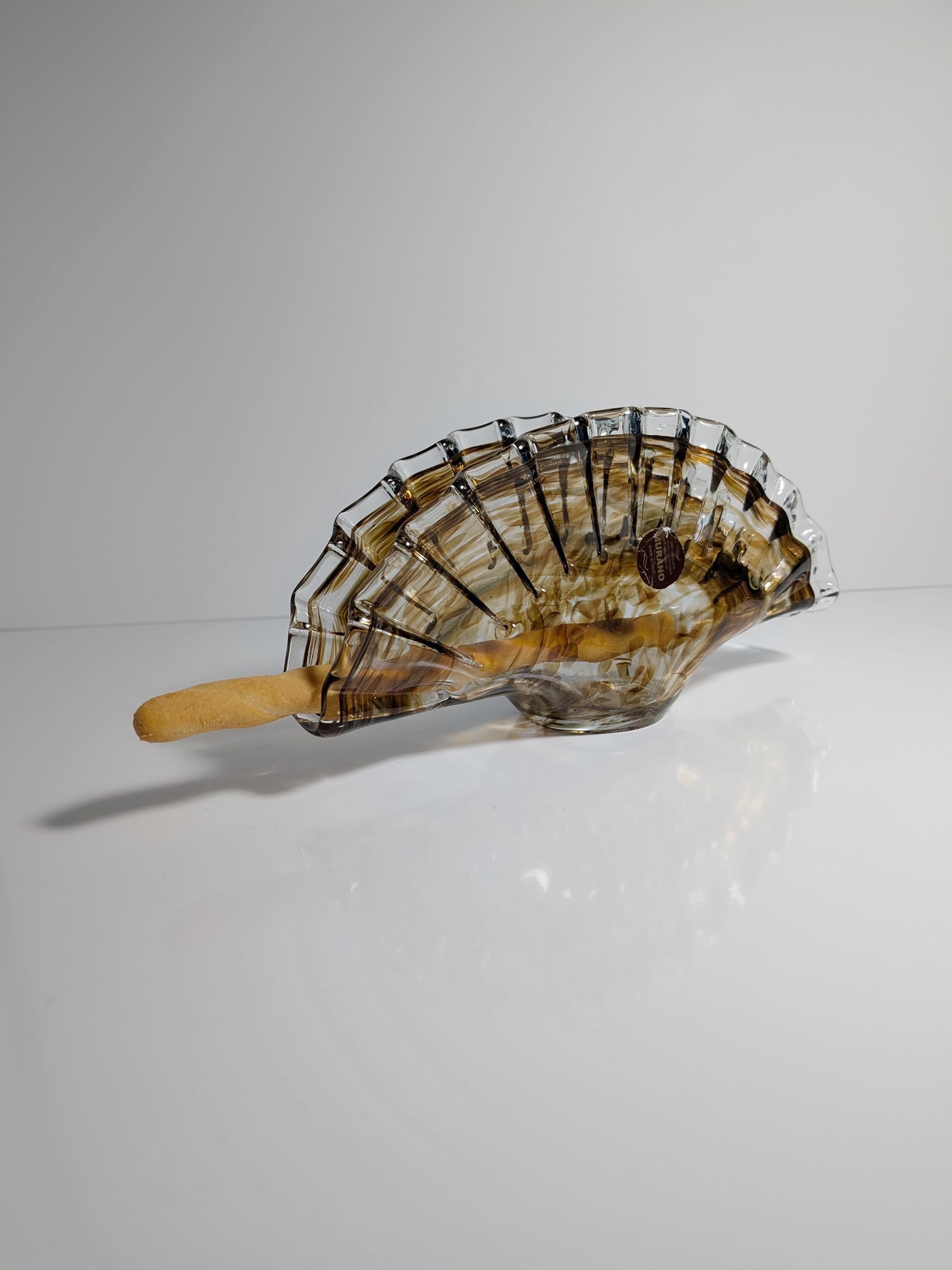 Beautiful Murano bowl in fan shape. Intended as a grissini / breadstick serving bowl.