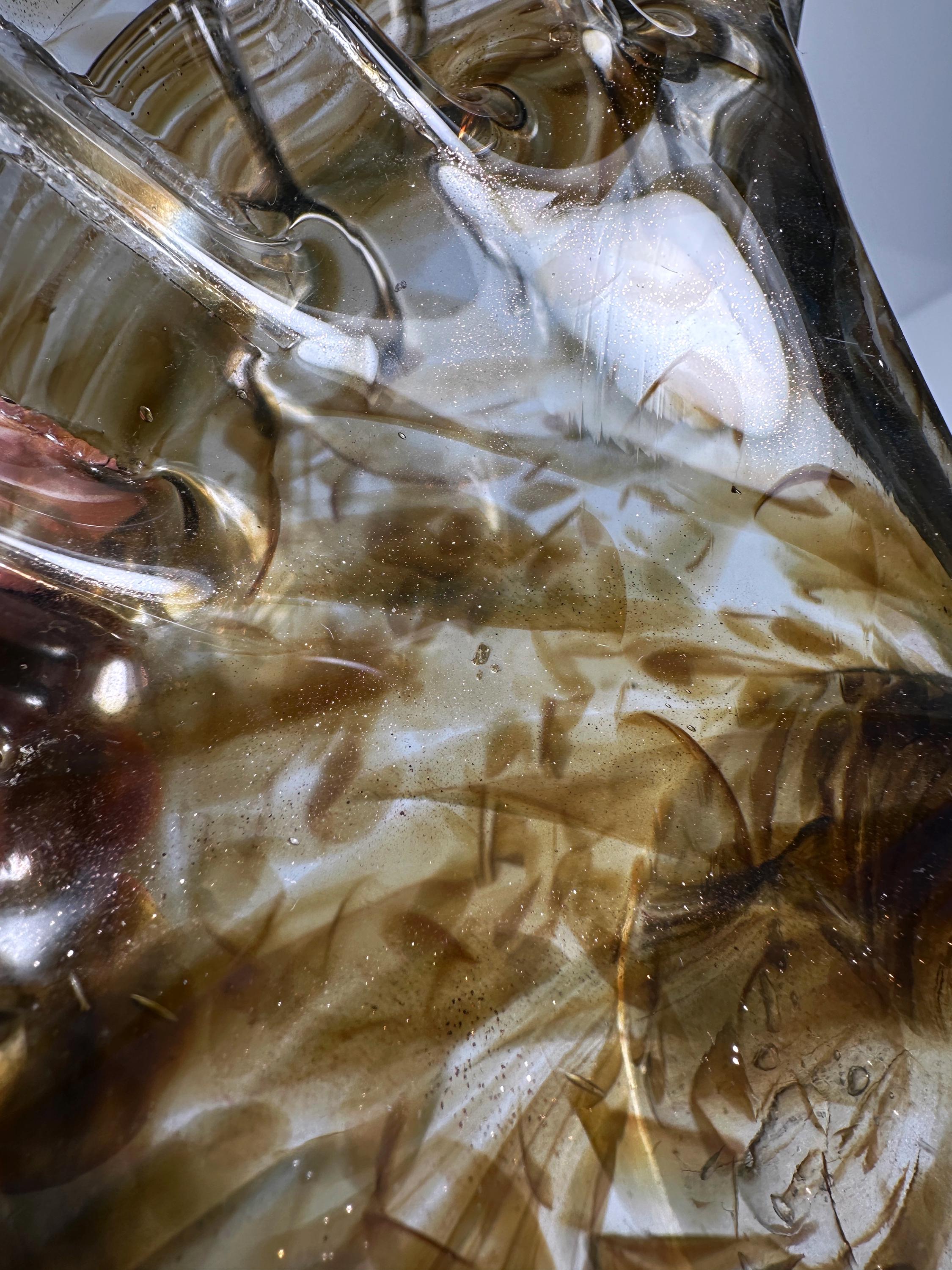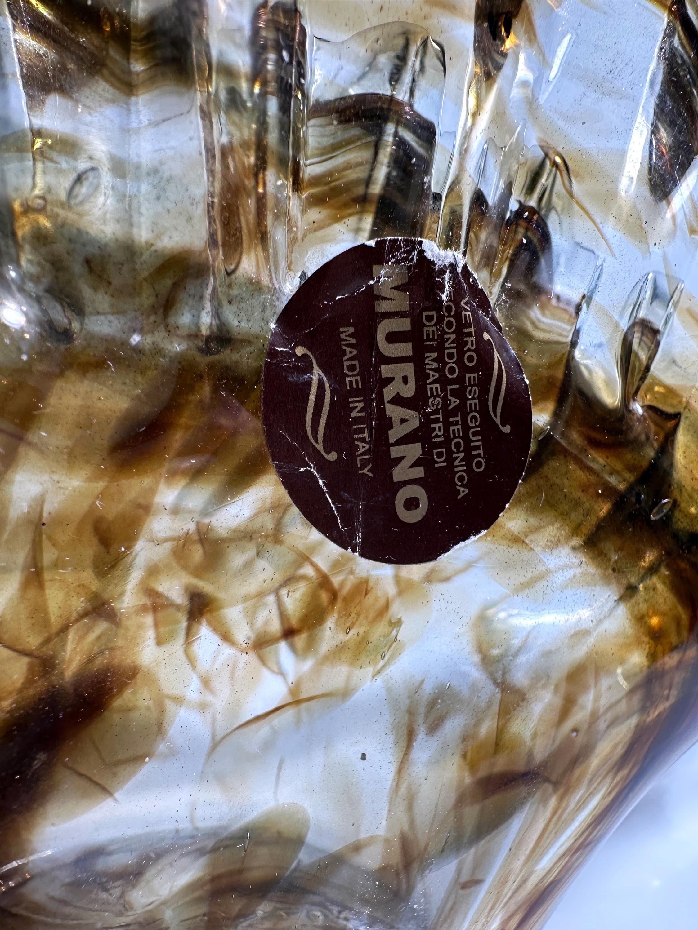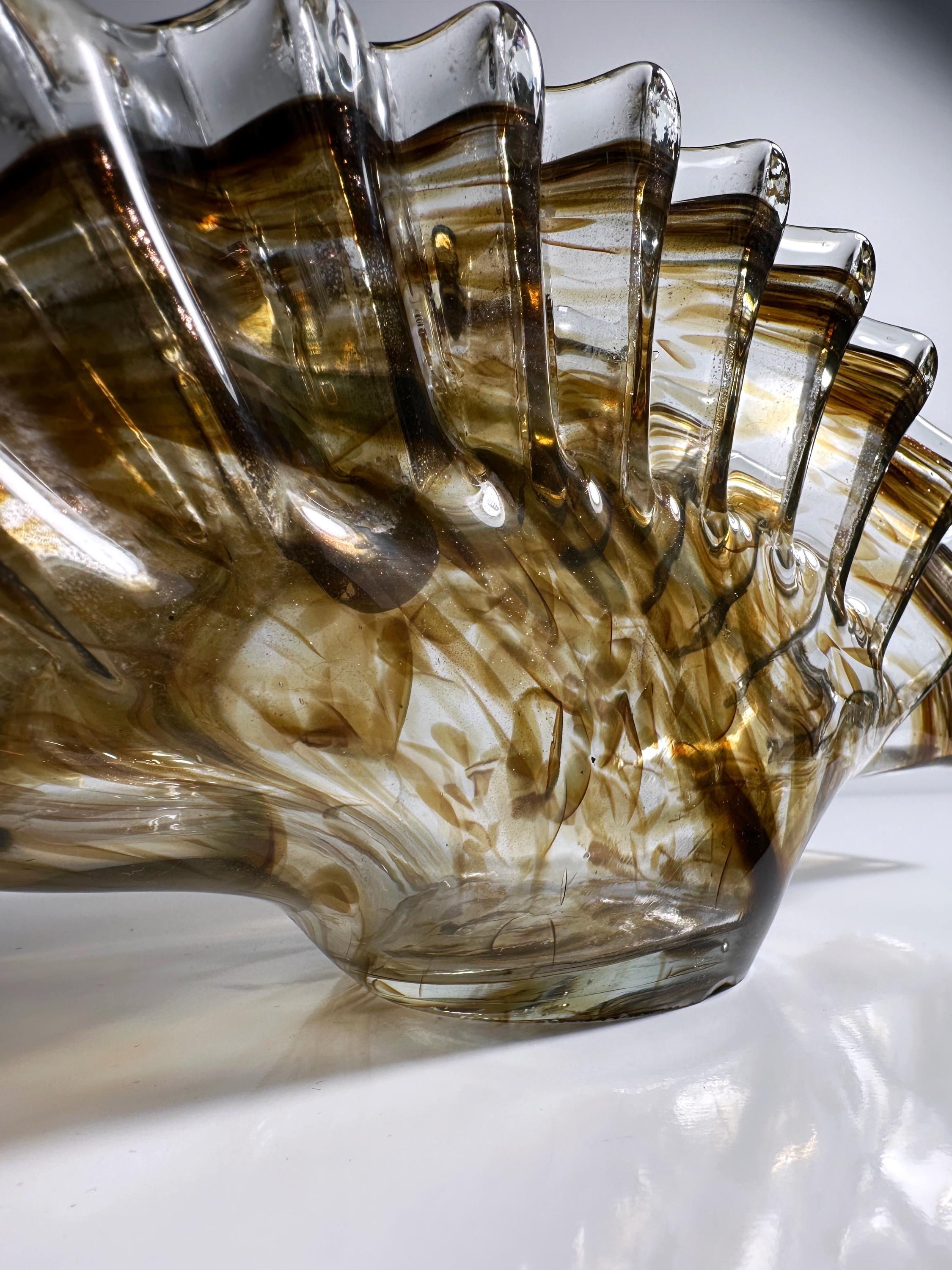 Brown and transparent glass in streak technique. Additionally gold powder in the glass - Cordonato d'oro technique. Outstanding masterpiece from the 1970s.