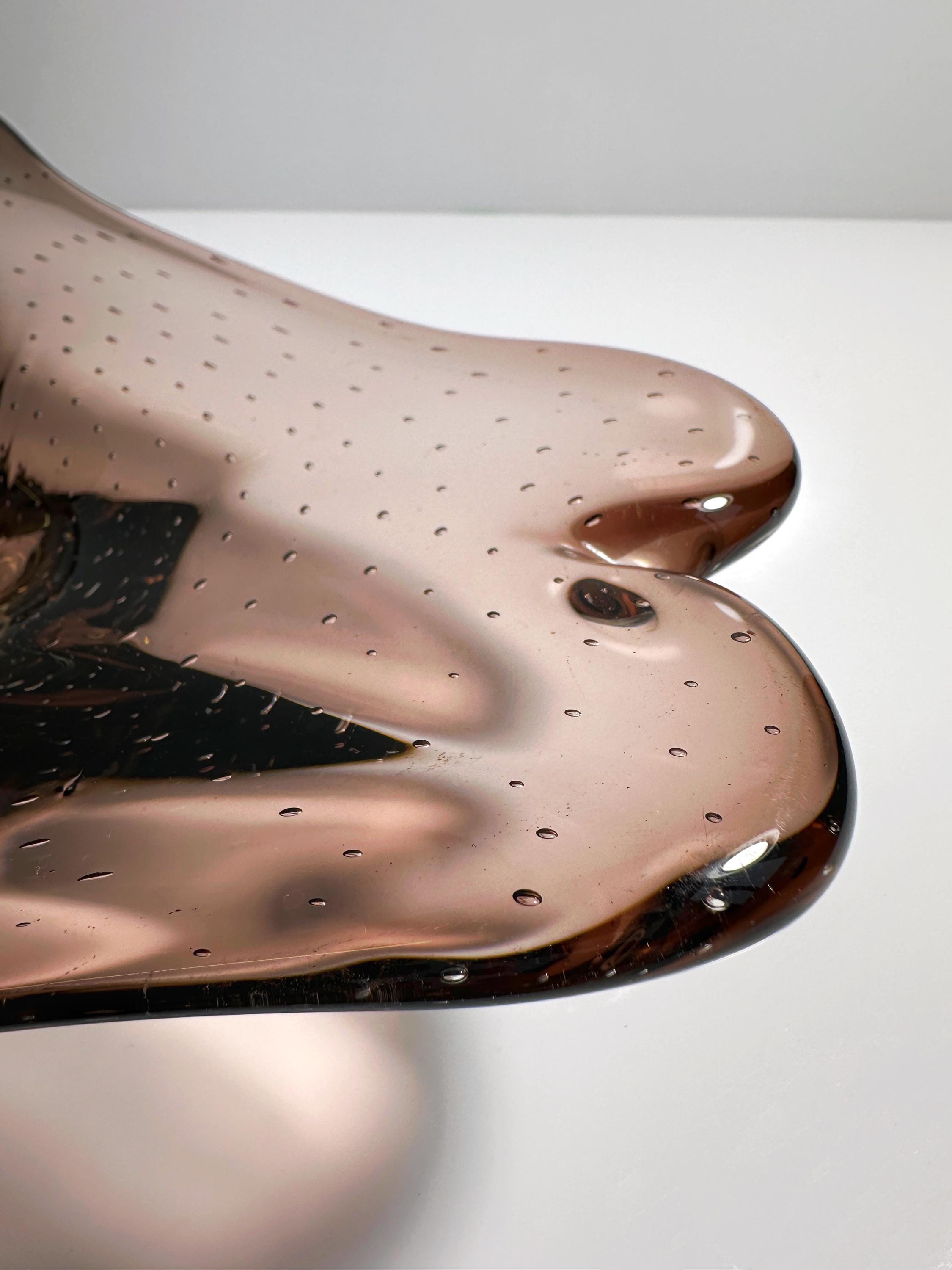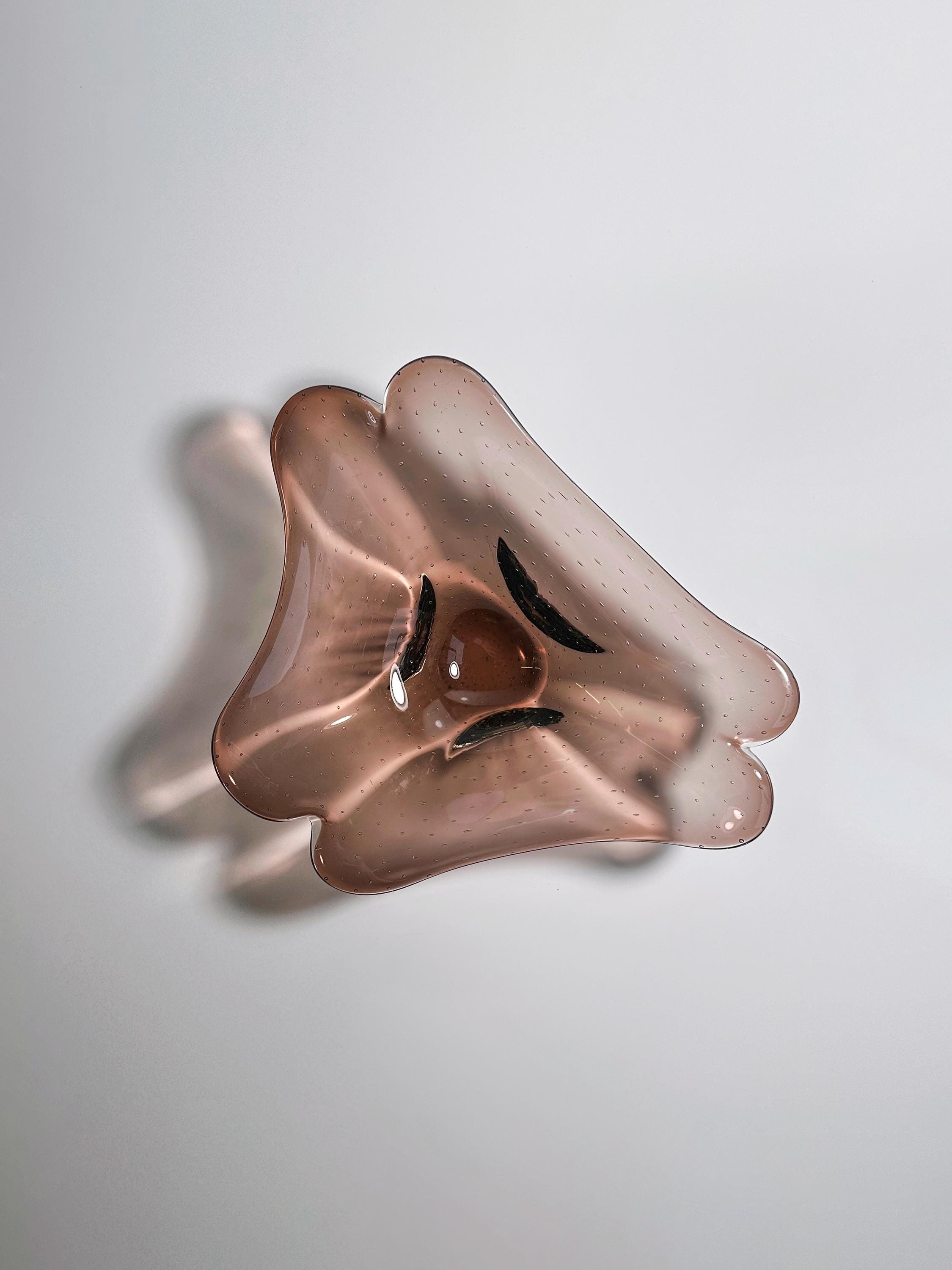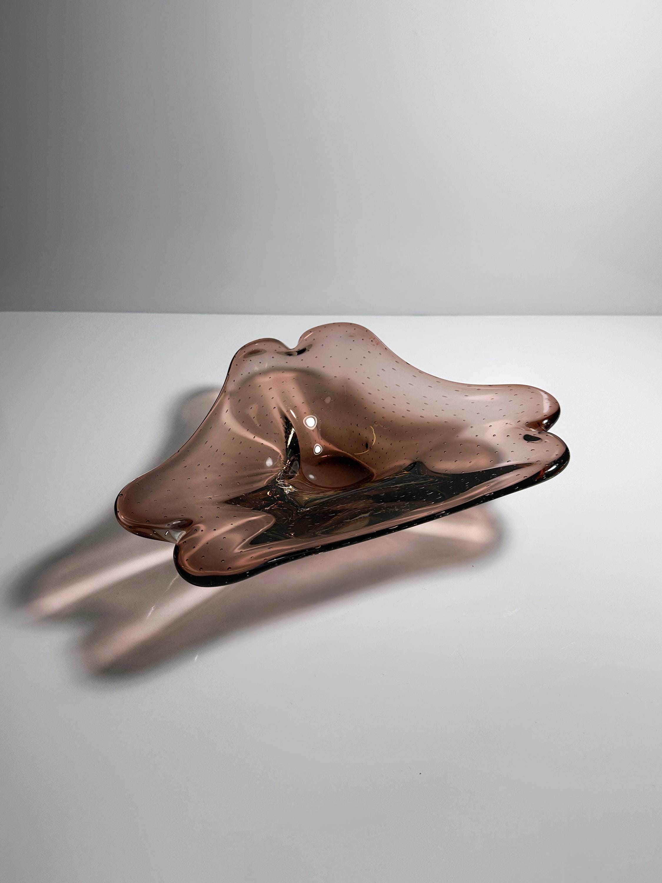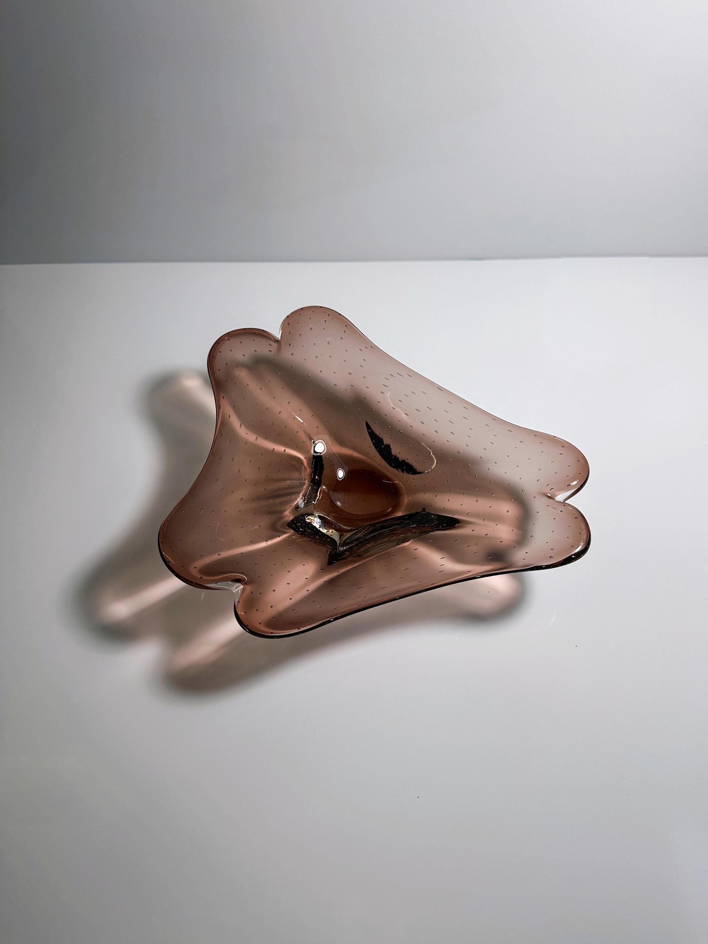 Vintage Murano Bowl Bullicante Offering Bowl Glass Bubbles Amethyst Maroon Fruit Bowl 1970 70s Mid Century