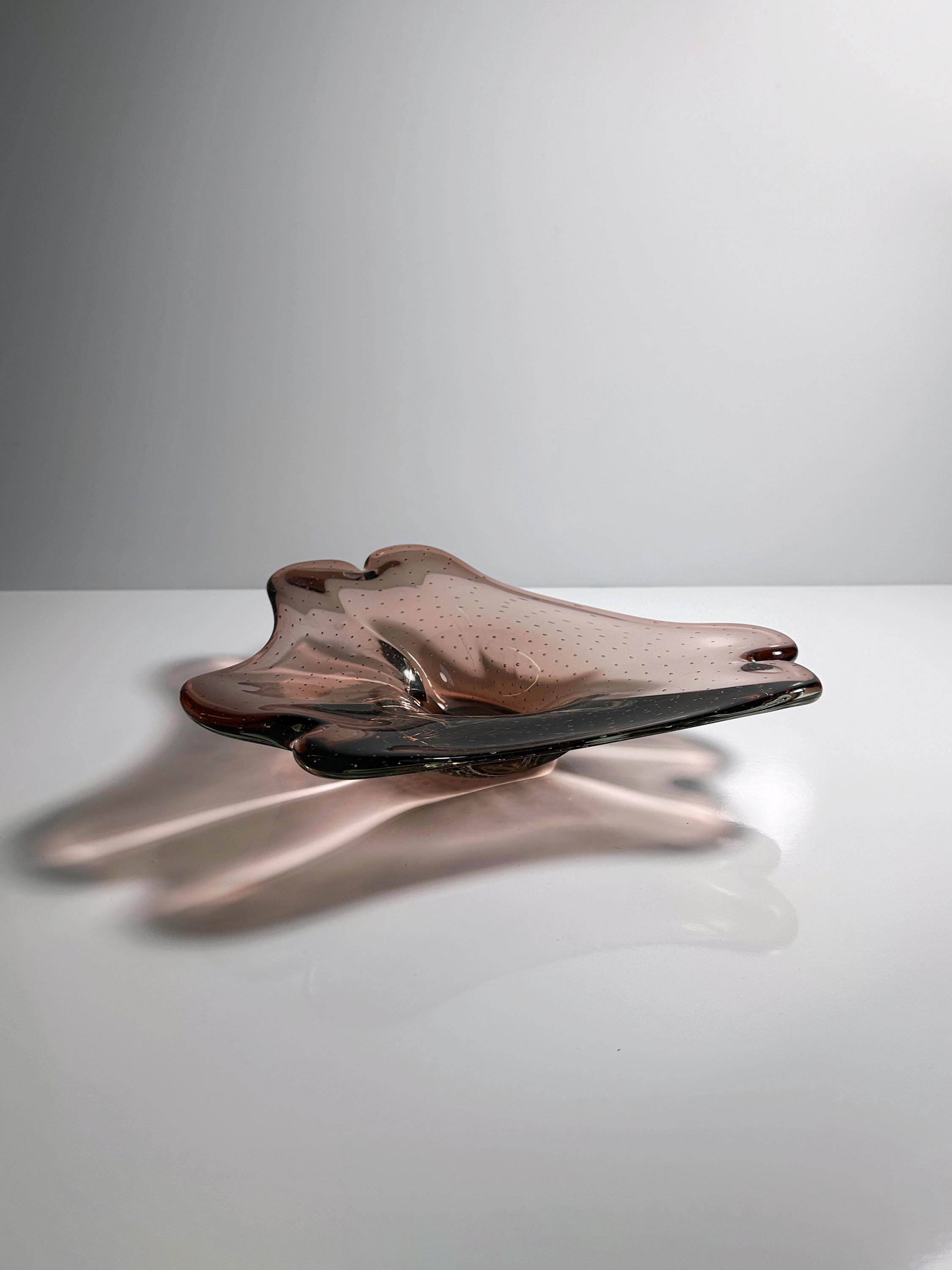 Beautiful Murano bowl made of maroon colored glass in Bullicante technique - bubble inclusions. Excellent workmanship from the 1970s.
