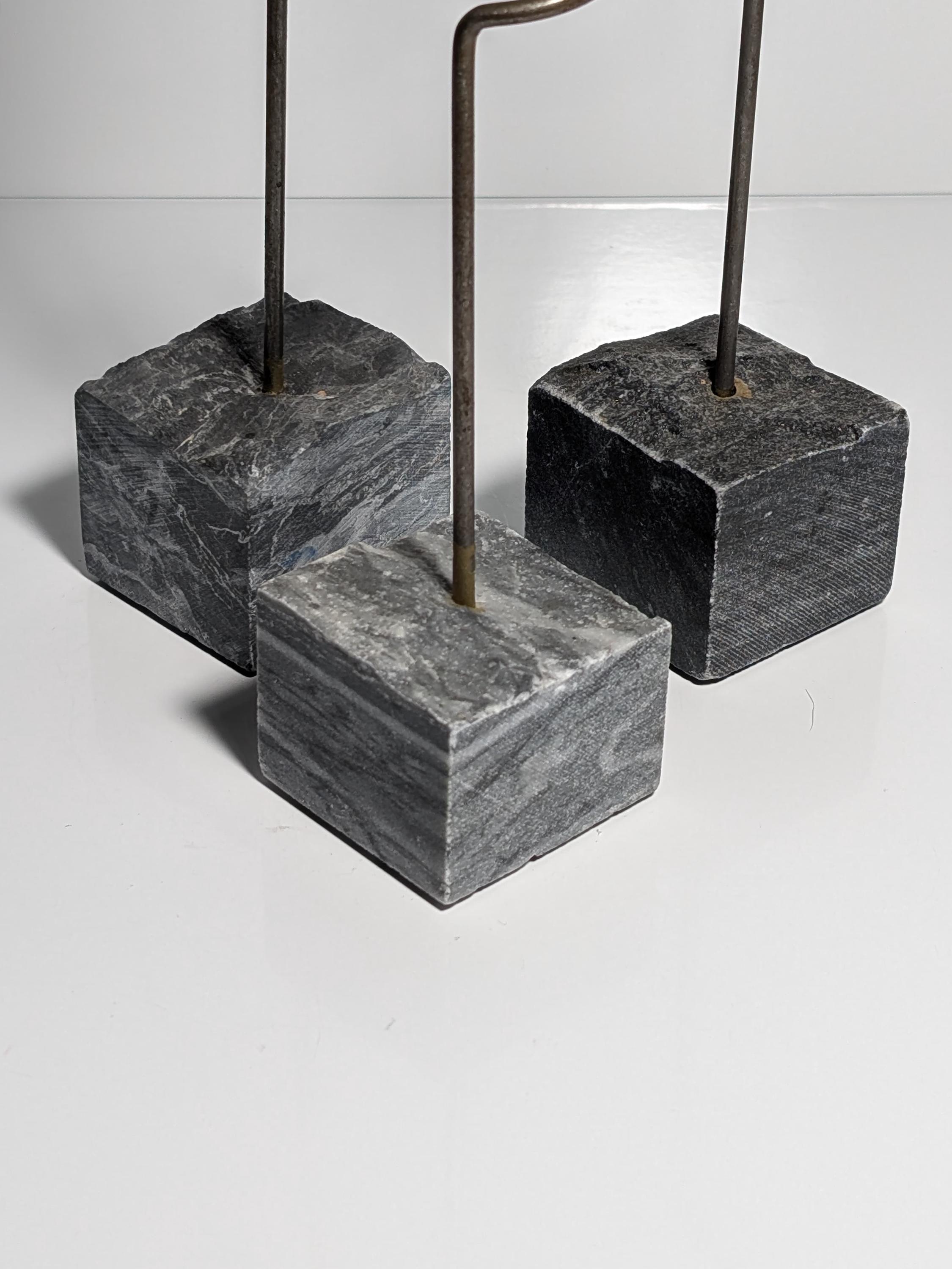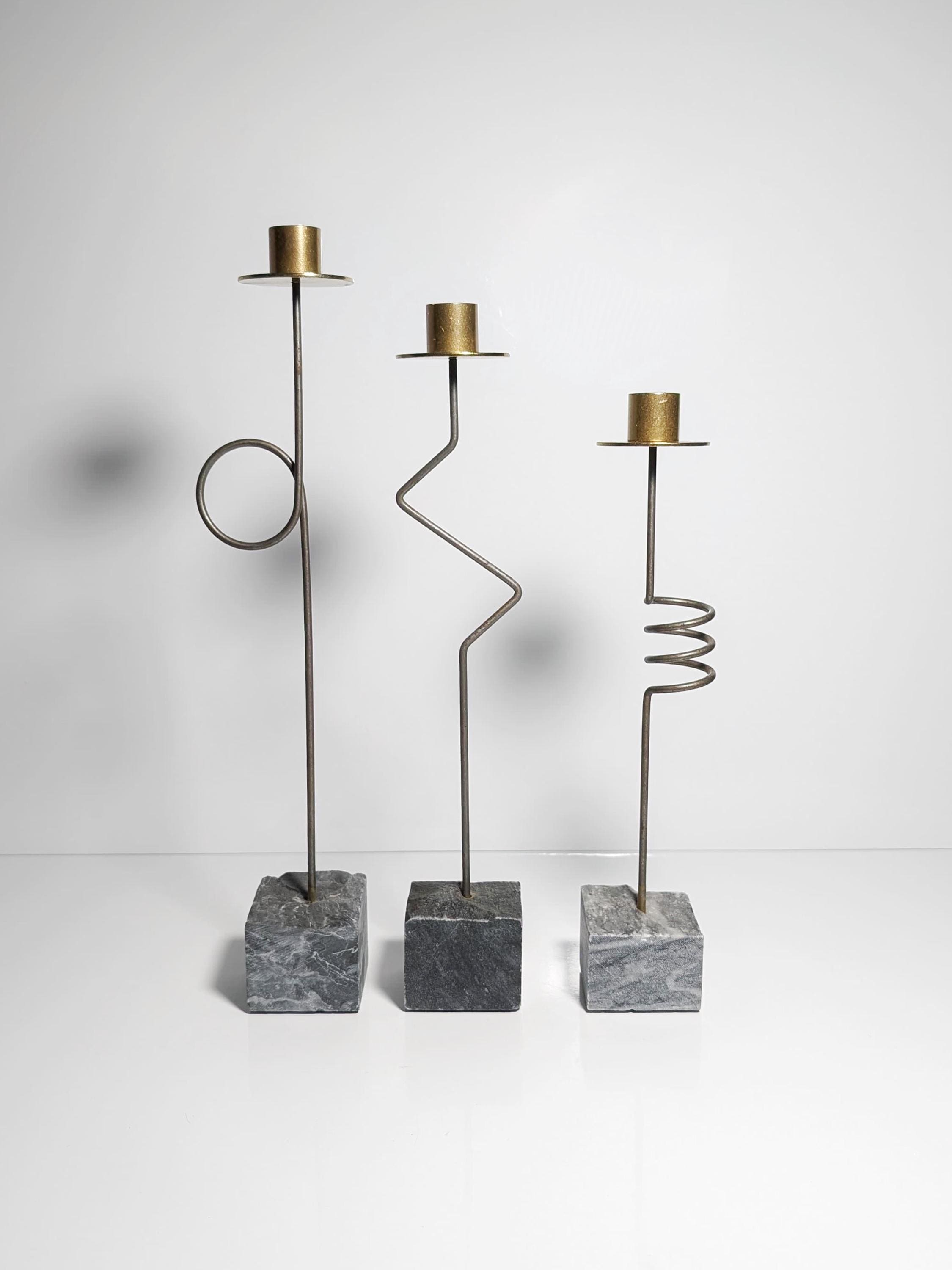 Ikea Krasen candlestick set of 3 postmodern 80s vintage candle holders stone brass Krasen Ehlén Johansson