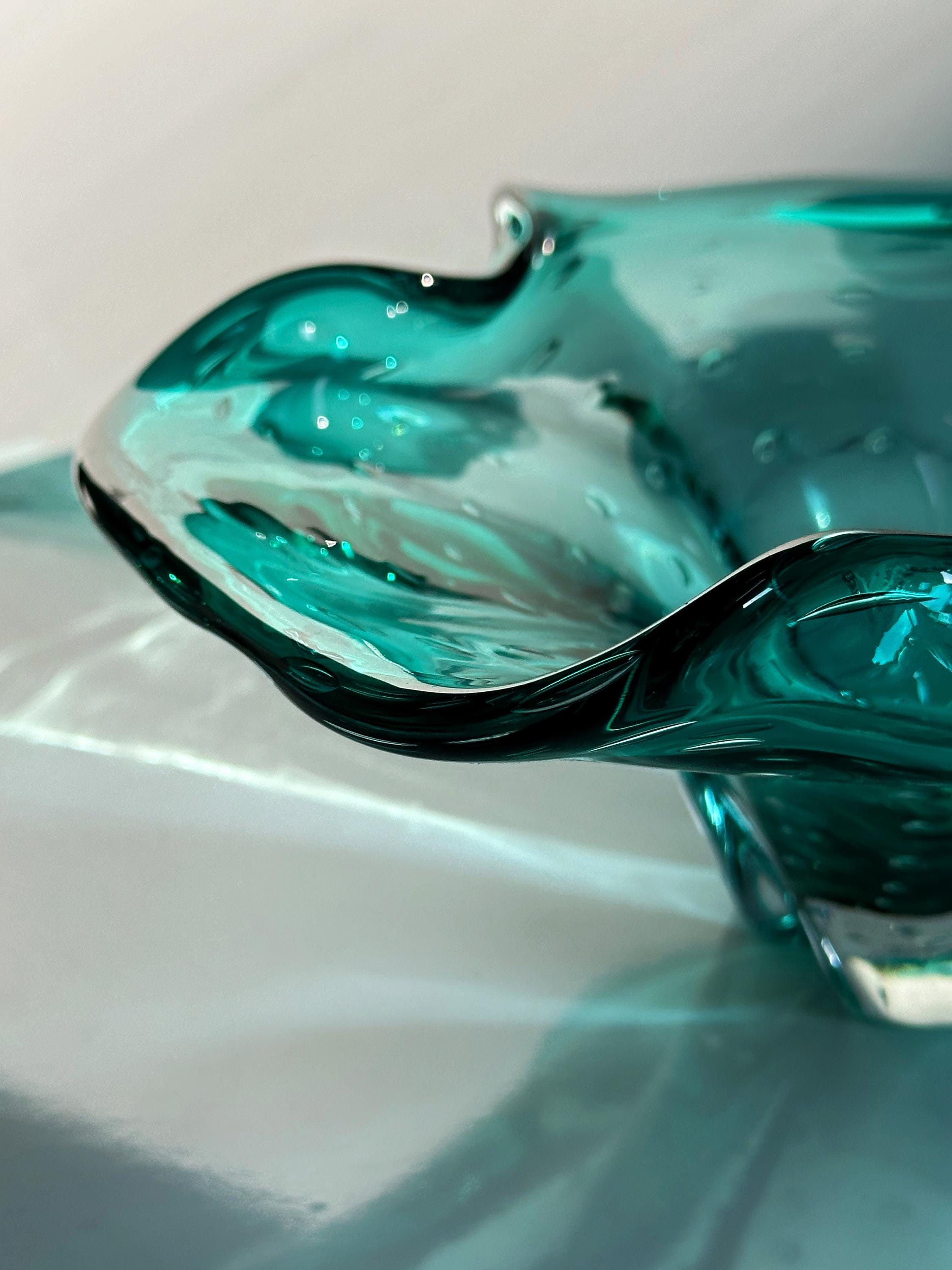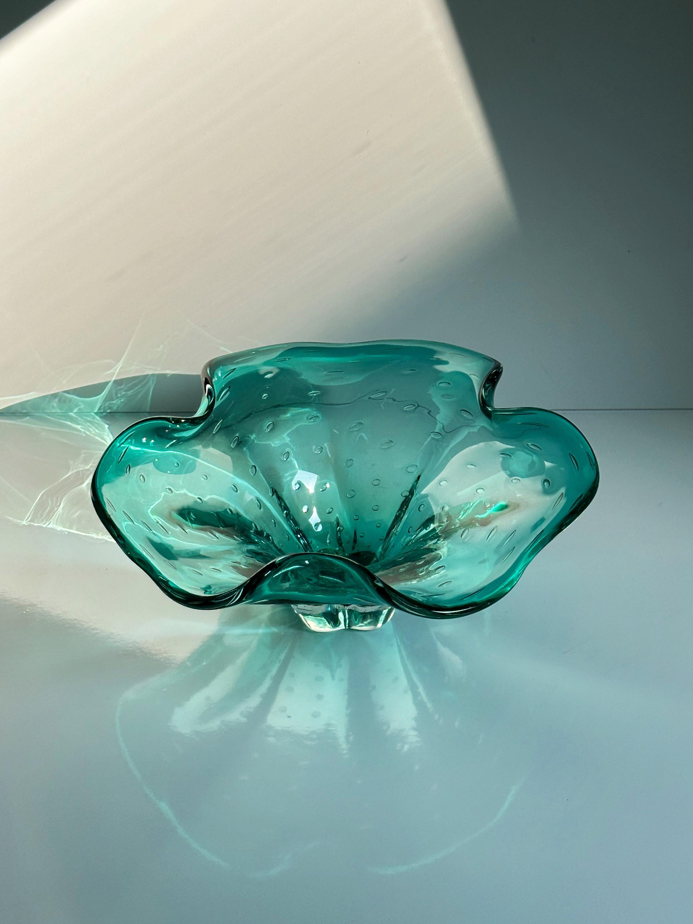 Large Vintage Murano Fruit Bowl Bubbles Turquoise Barovier Toso Bullicante Mint Green Bubbles Italy 70s 1970