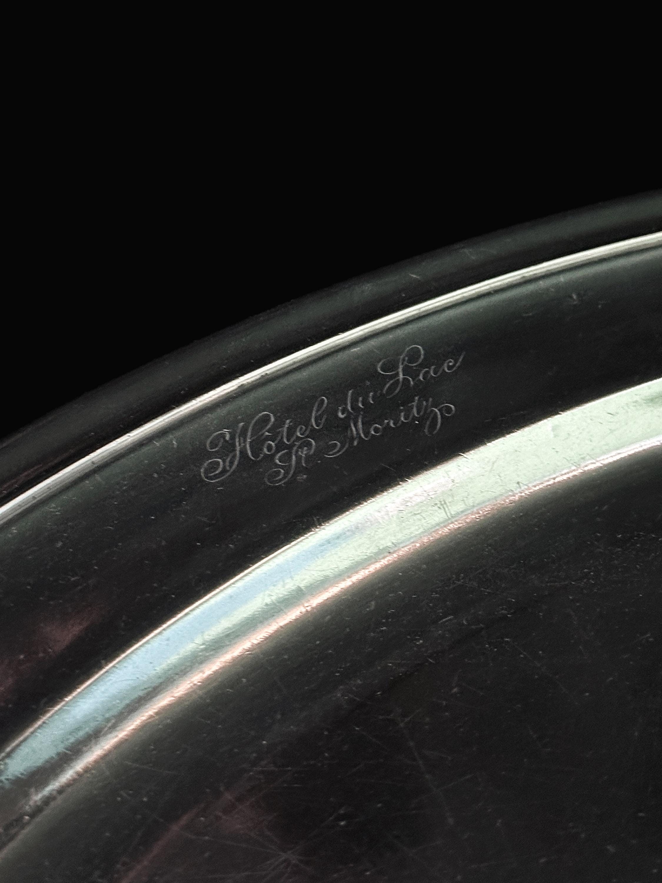 1930s Christofle silver-plated tray Grand Hotel du Lac St. Moritz vintage metal Art Deco bowl plate serving bowl platter silver