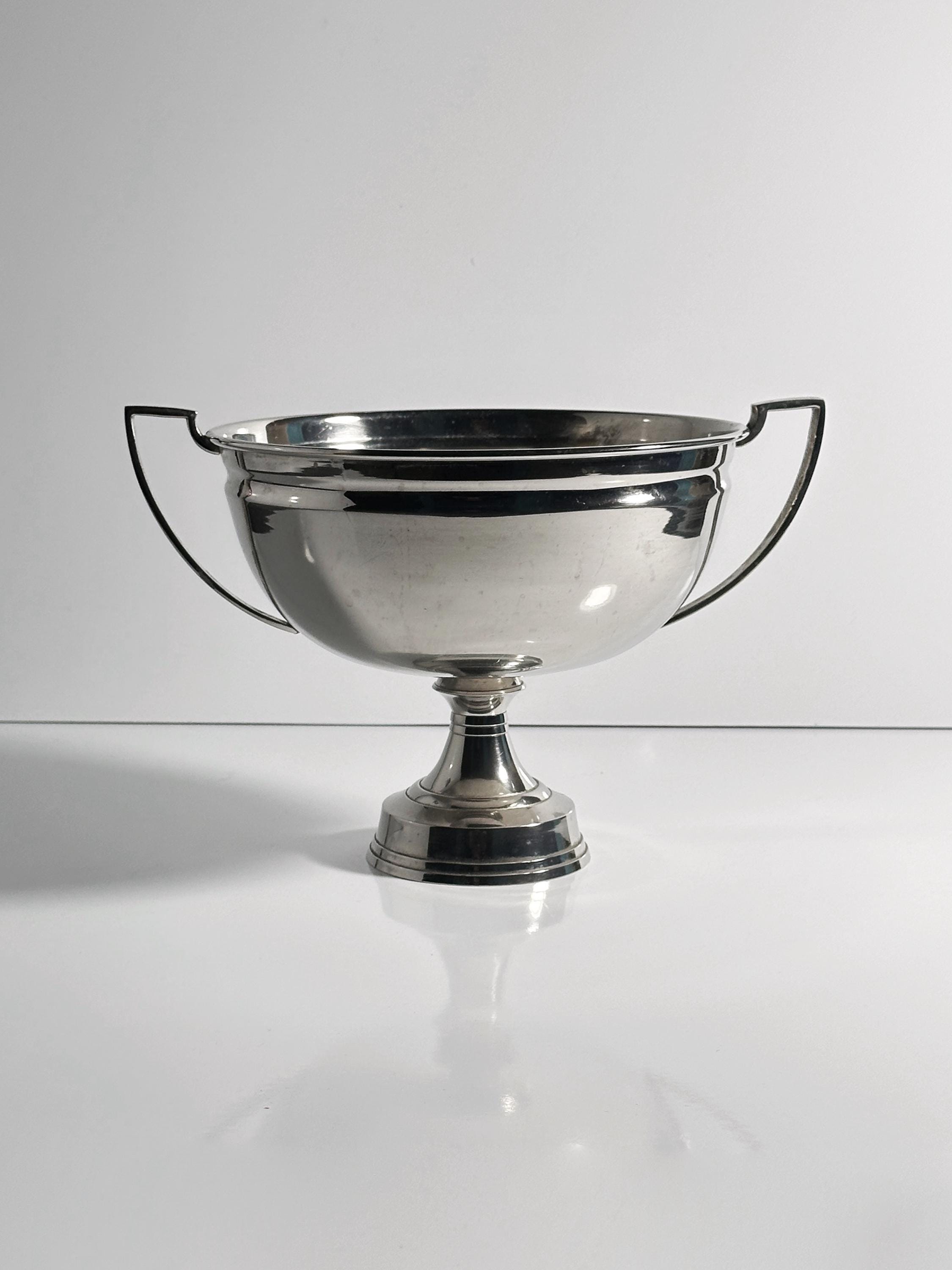 Beautiful vintage footed bowl with a metal handle. Classic style, very elegant.