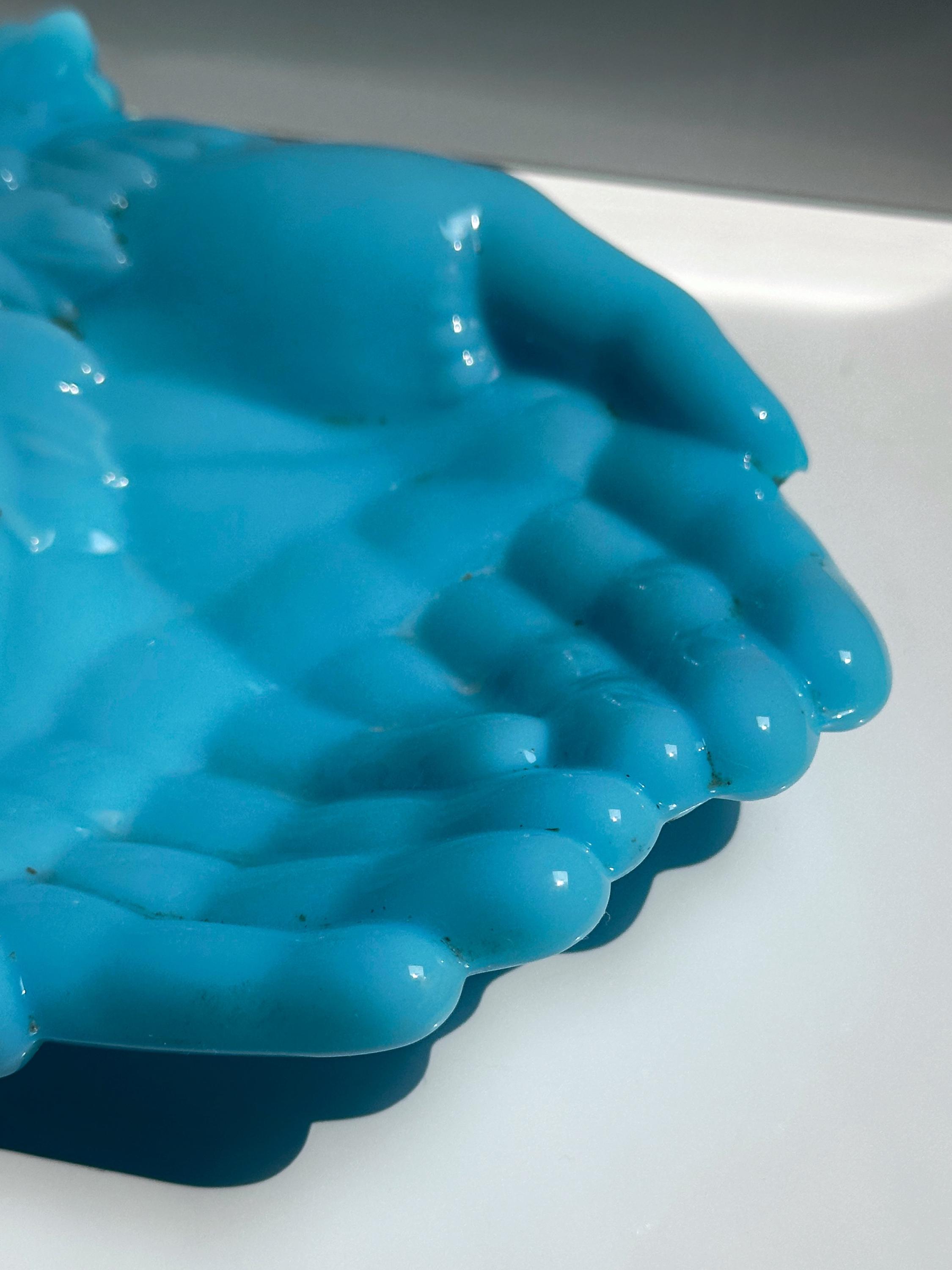 Vallérysthal Opaline Bowl Vide Poche Hands Grapevine Art Nouveau Art Nouveau Glass Opaline Glass Milk Glass Blue Celeste 1900 1910 Portieux