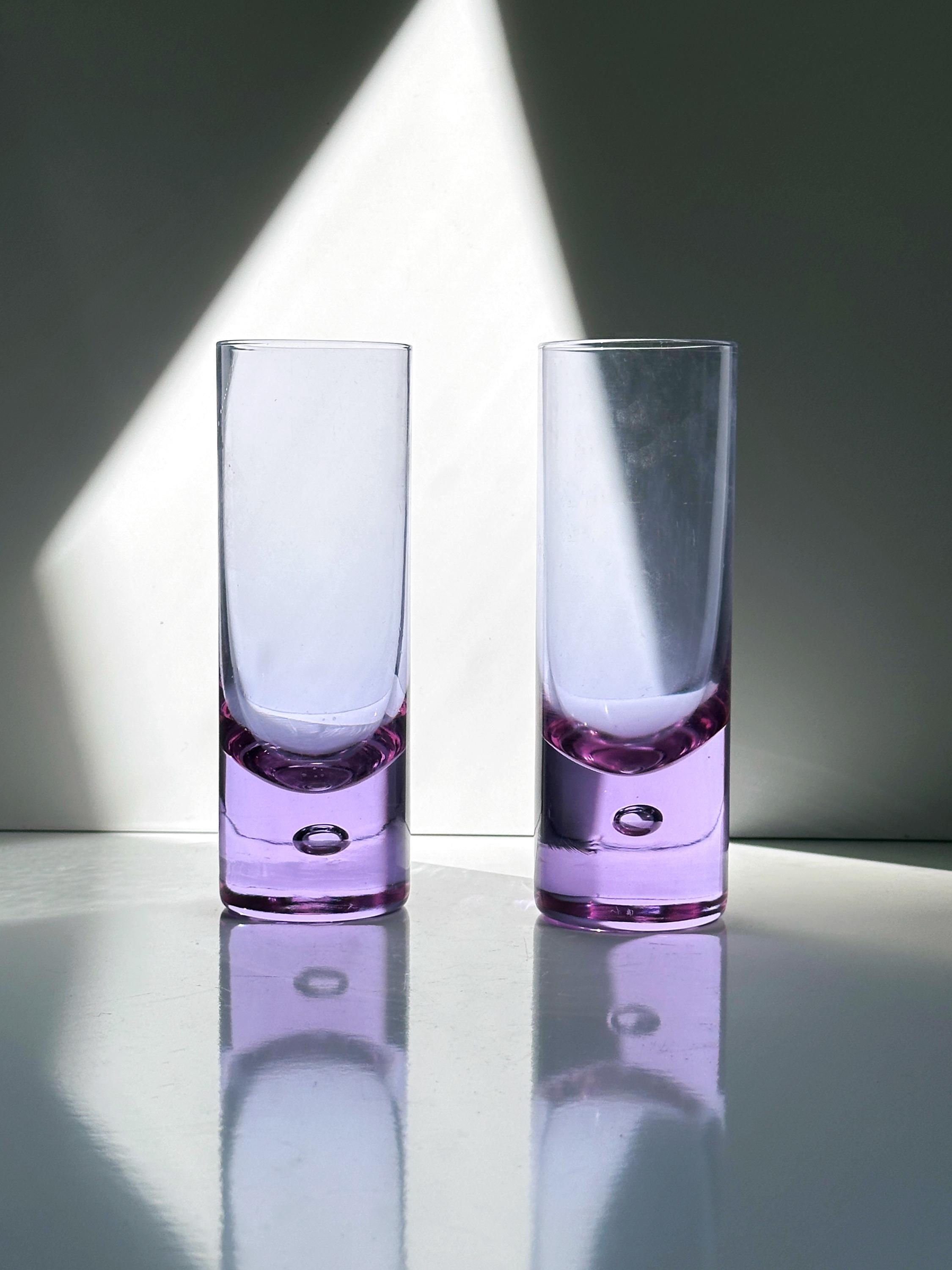 5 Vintage Drinking Glasses Alexandrite Glass Arnolfo di Cambio Sergio Asti Bubble Longdrink Neodymium Italy 70s 60s Crystal Brutalist Pink