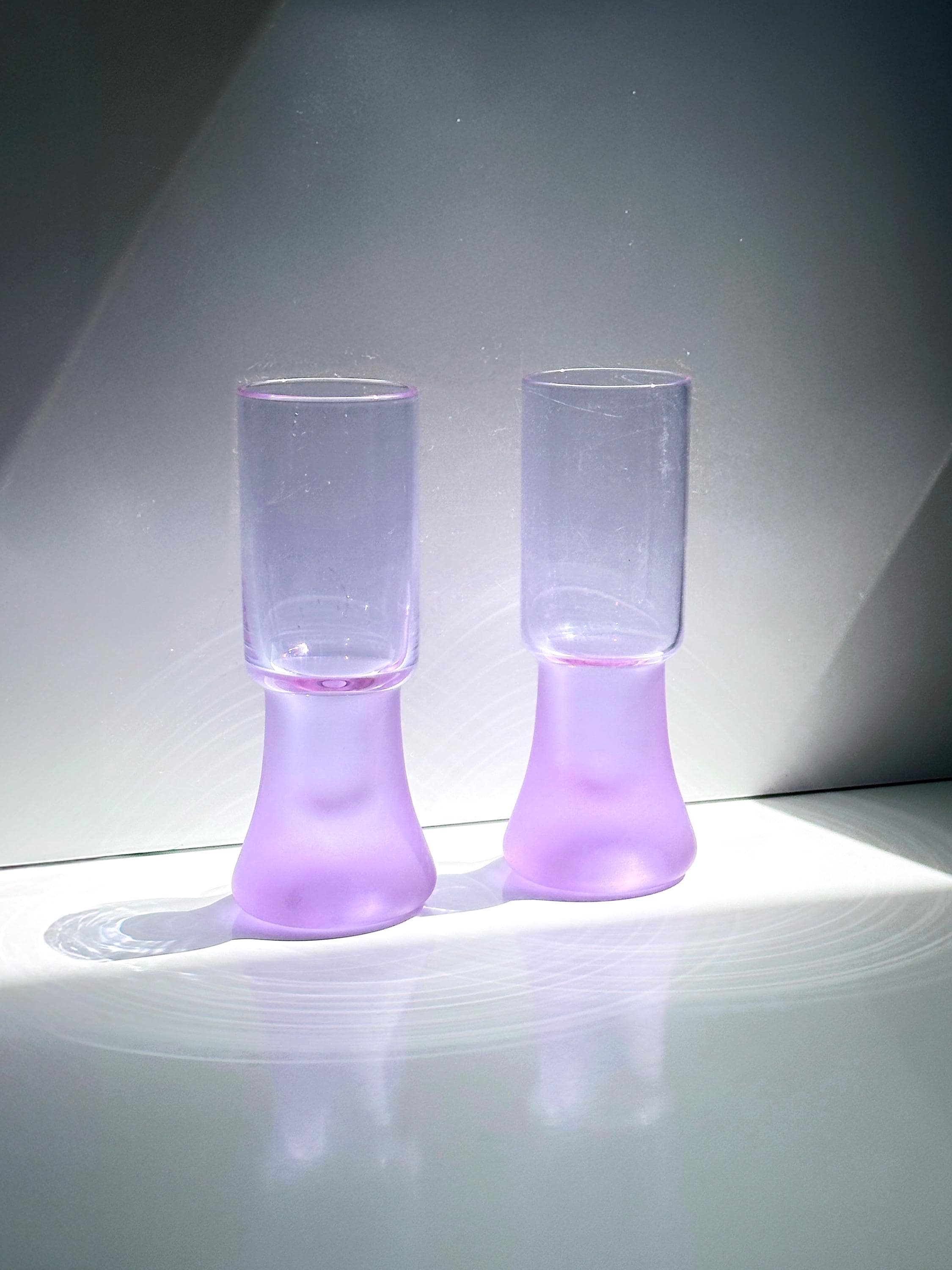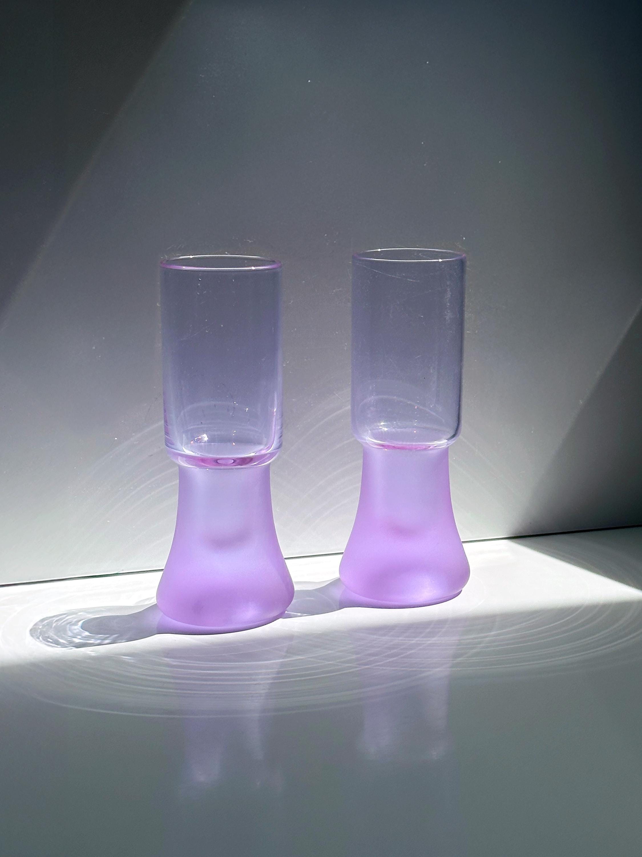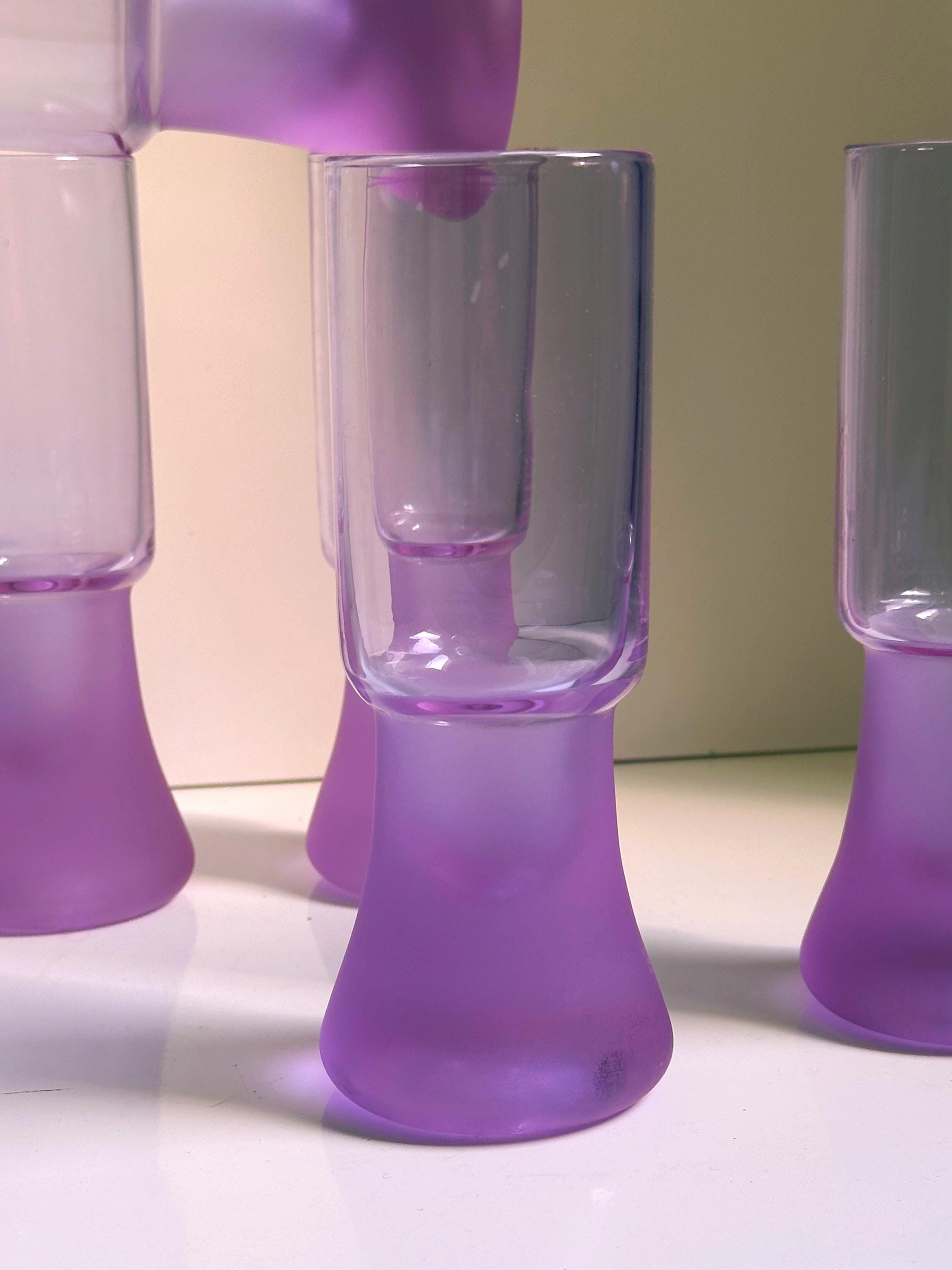 6 Vintage Alexandrite Glass Goblet Long Drink Glasses Arnolfo di Cambio Sergio Asti Space Age Brutalist Long Drink Neodymium Italy 70s 60s