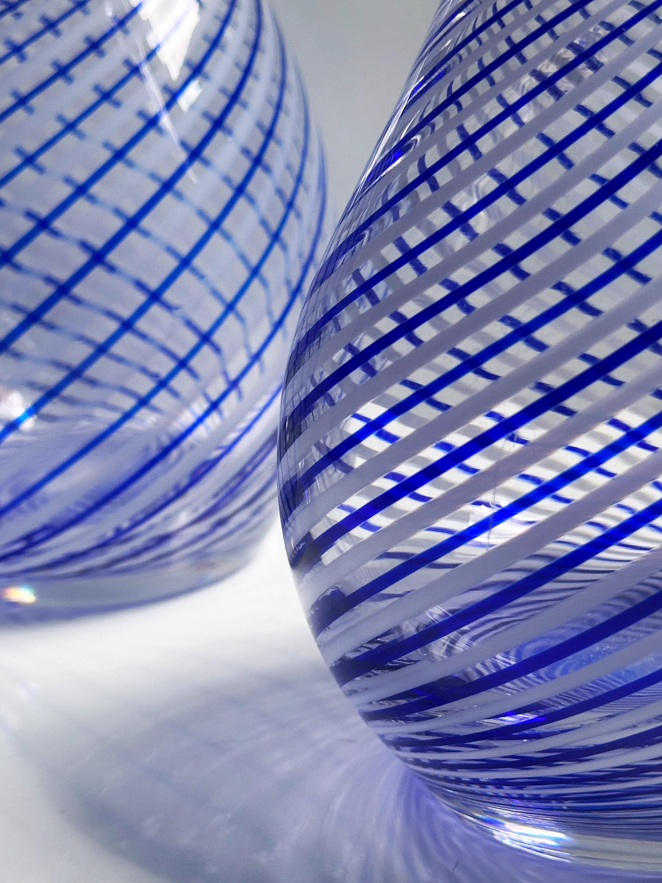 Bottle Set Pasabahce Crystal Glass Decanter Carafe Swirl Thread Glass Vase Cobalt Blue Bulbul Turkish Mid Century White